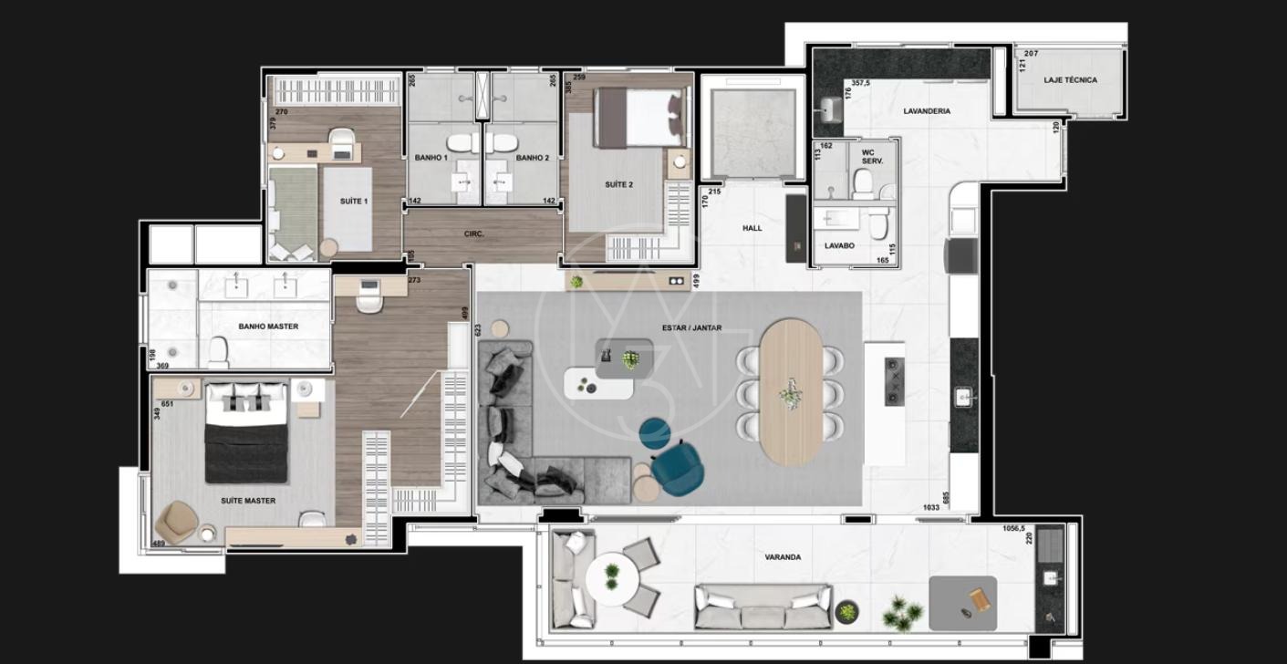 A cozinha apresenta acabamentos de alto padrão, integrada de forma funcional ao projeto, além de área de serviço independente e lavabo elegante. O apartamento conta ainda com até 3 vagas de garagem cobertas e demarcadas.
