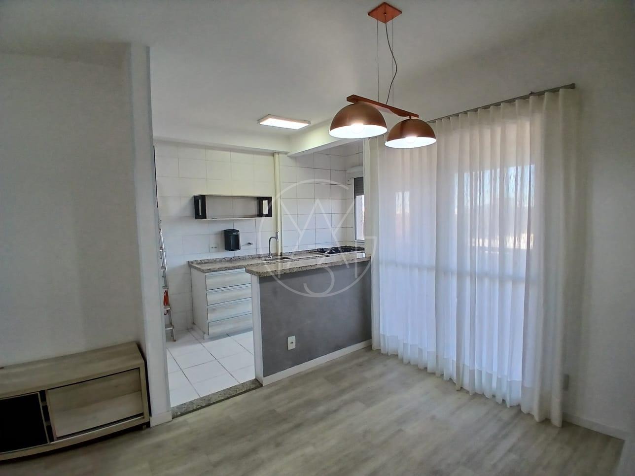 02 dormitórios, sendo 01 suíte, sala, cozinha, área de serviço, sacada envidraçada, piso vinílico, armários planejados, box, espelhos, cortinas, telas mosquiteiras, ventiladores, água quente nas pias dos banheiros e cozinha, cooktop e forno de embutir.
