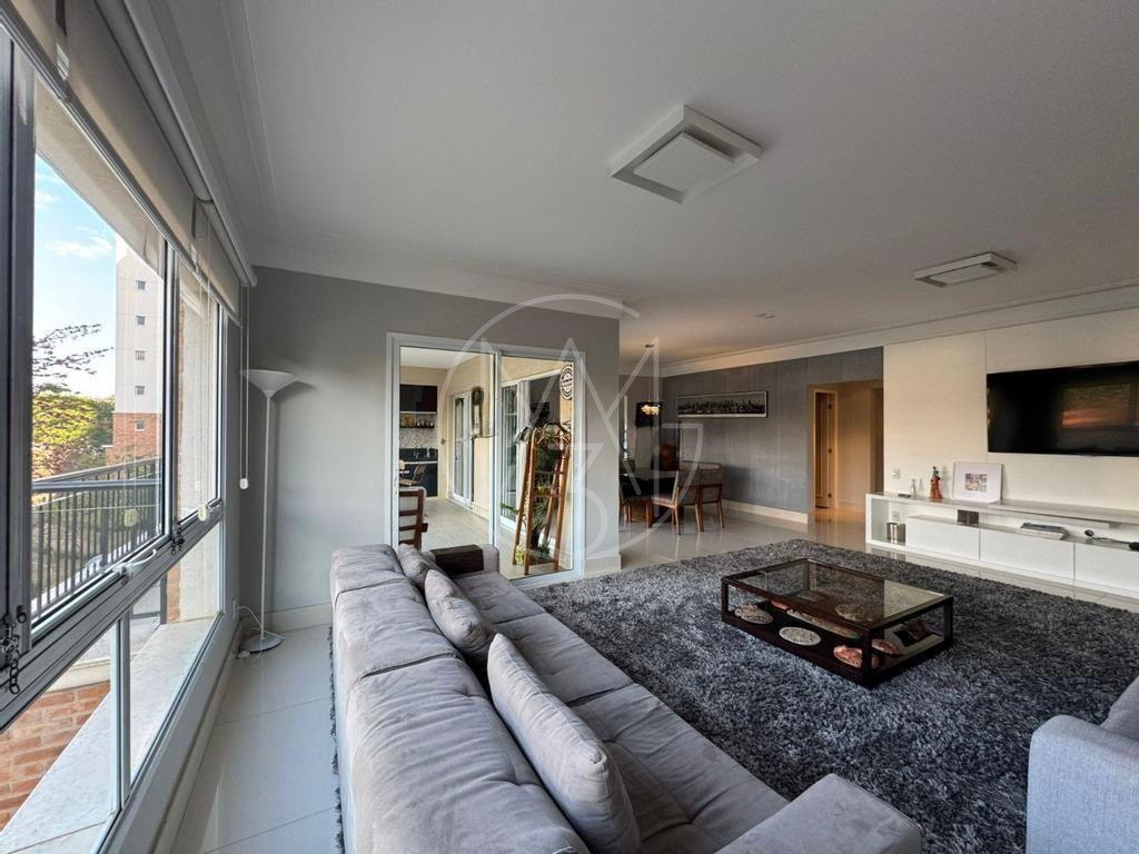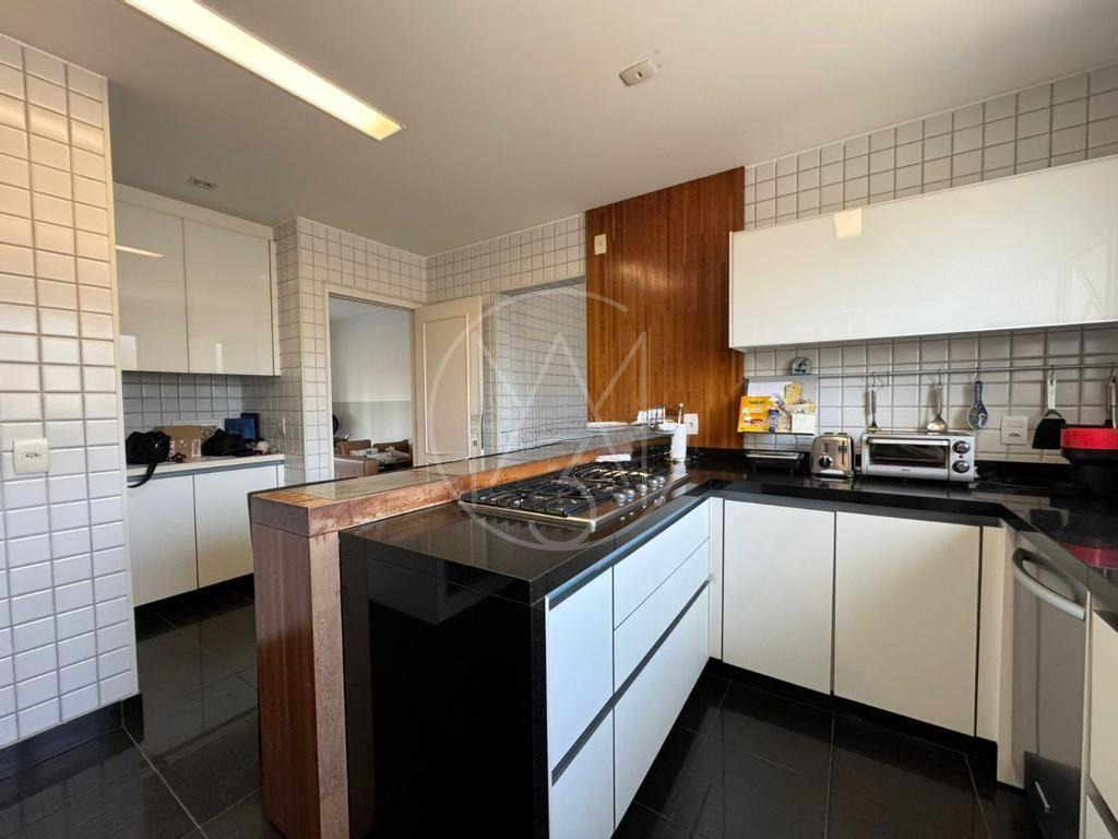 Apartamento alto padrão, com 231m² de ambientes amplos e com muito conforto. São 4 suítes, sendo que a principal conta com hidromassagem e closet. A sala com vários ambientes oferece uma espaçosa varanda gourmet integrada. Lavabo, despensa, lavanderia e banheiro de serviço. Aparelhos de ar-condicionado em vários ambientes. Riquíssimo em móveis planejados.