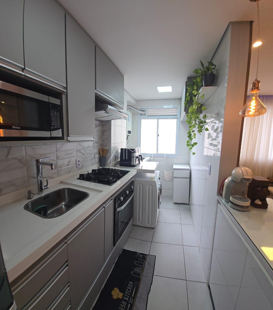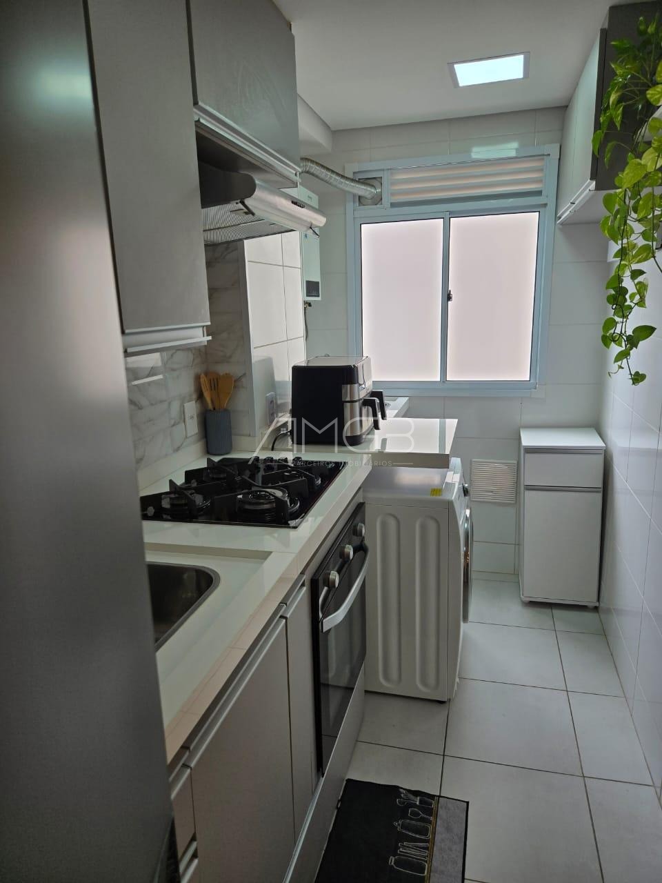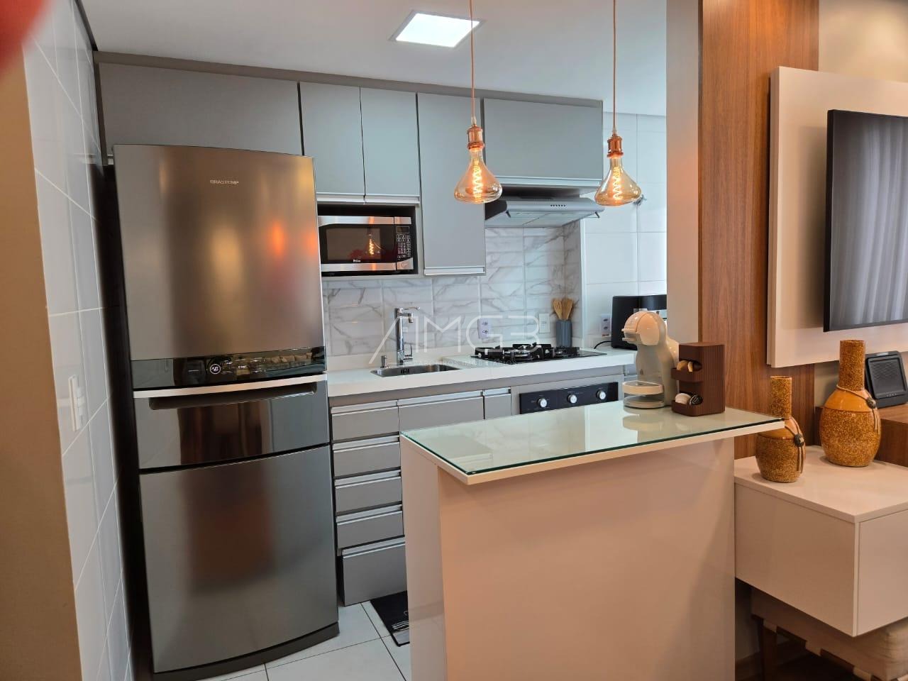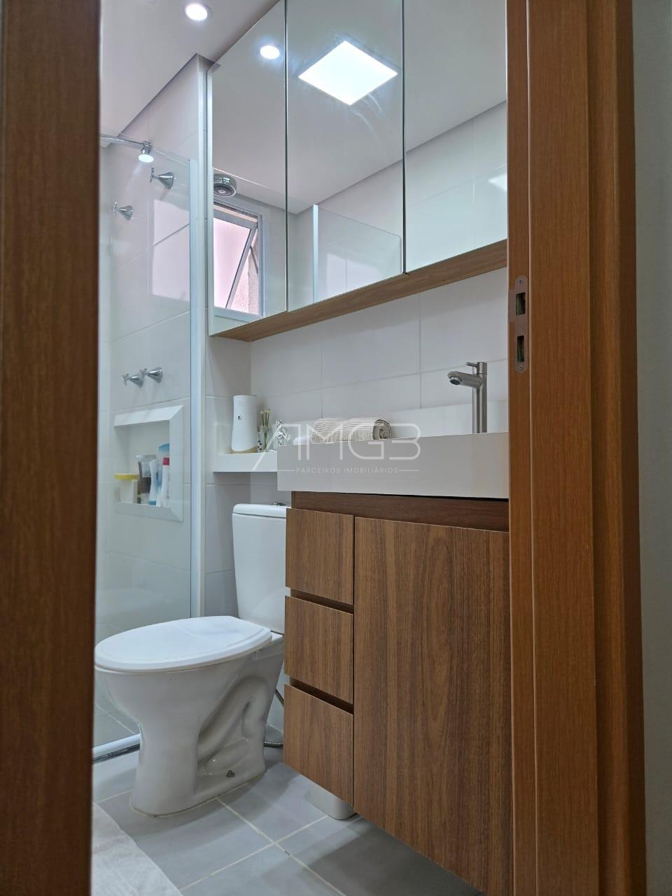 Apartamento com 47m² muito bem distribuídos, contando com 2 dormitórios, 1 banheiro, sala de estar, cozinha e área de serviço. O imóvel possui armários planejados na cozinha, no quarto de casal, no banheiro, na sala e na área de serviço, além de ar-condicionado no quarto principal. O banheiro conta com pia em porcelanato, assim como a cozinha e a área de serviço. Chuveiro a gás já instalado e ponto preparado para forno a gás e elétrico.