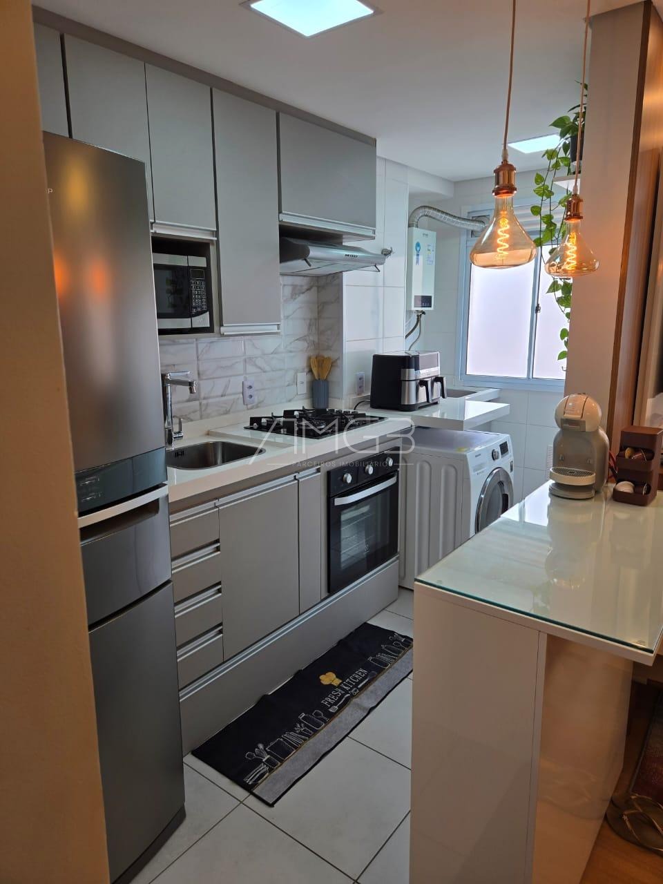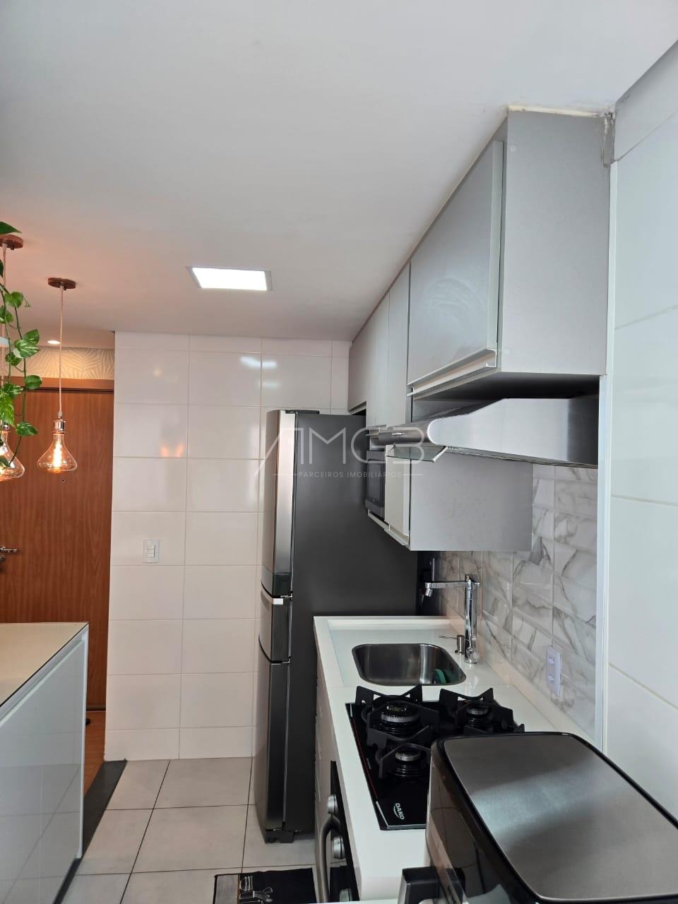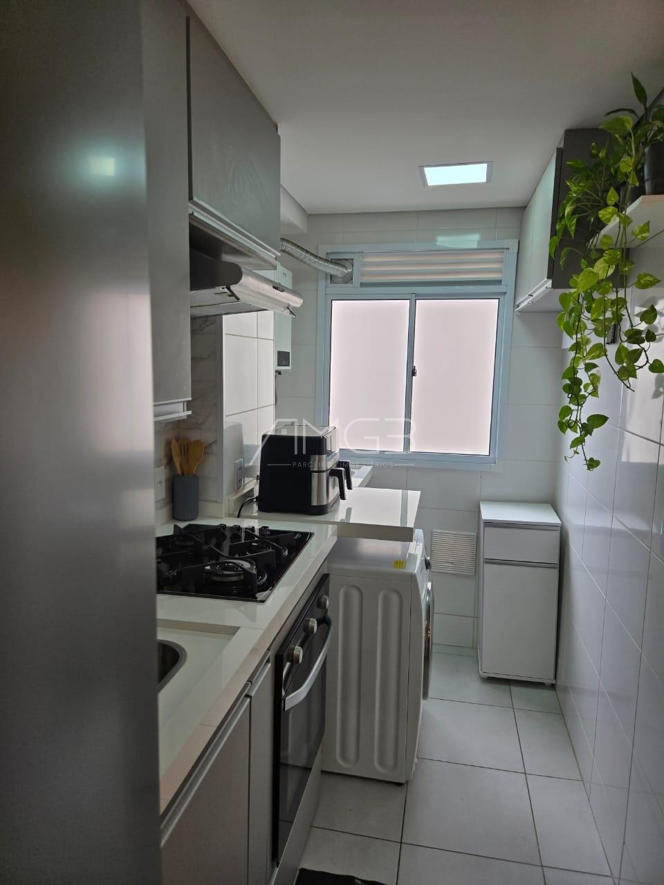 Apartamento com 47m² muito bem distribuídos, contando com 2 dormitórios, 1 banheiro, sala de estar, cozinha e área de serviço. O imóvel possui armários planejados na cozinha, no quarto de casal, no banheiro, na sala e na área de serviço, além de ar-condicionado no quarto principal. O banheiro conta com pia em porcelanato, assim como a cozinha e a área de serviço. Chuveiro a gás já instalado e ponto preparado para forno a gás e elétrico.