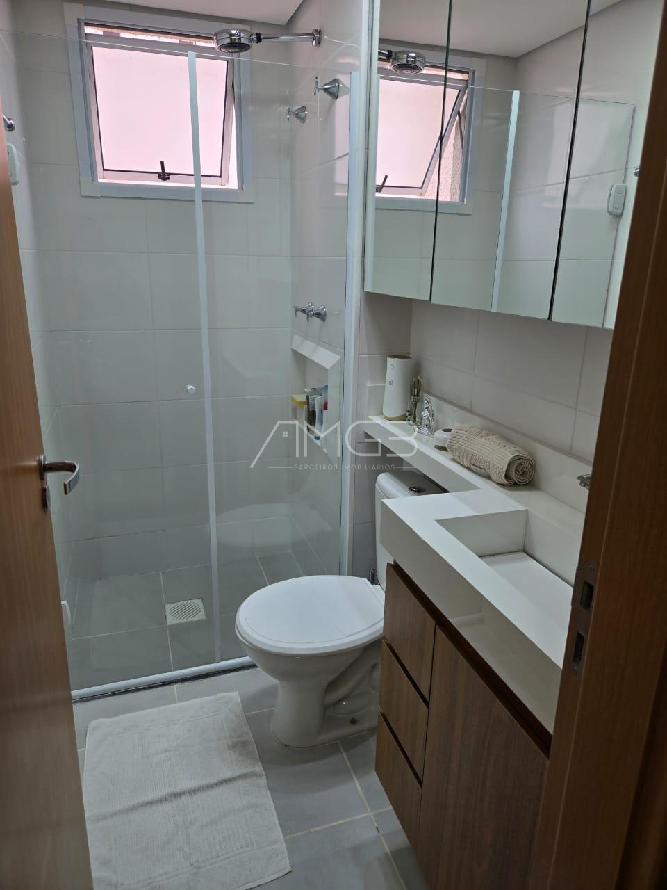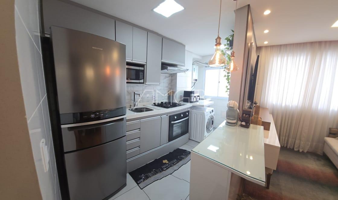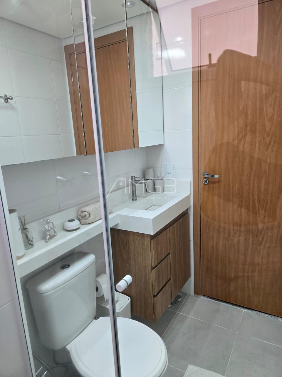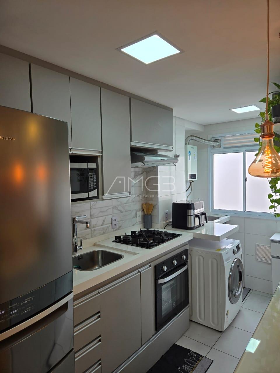 Apartamento com 47m² muito bem distribuídos, contando com 2 dormitórios, 1 banheiro, sala de estar, cozinha e área de serviço. O imóvel possui armários planejados na cozinha, no quarto de casal, no banheiro, na sala e na área de serviço, além de ar-condicionado no quarto principal. O banheiro conta com pia em porcelanato, assim como a cozinha e a área de serviço. Chuveiro a gás já instalado e ponto preparado para forno a gás e elétrico.