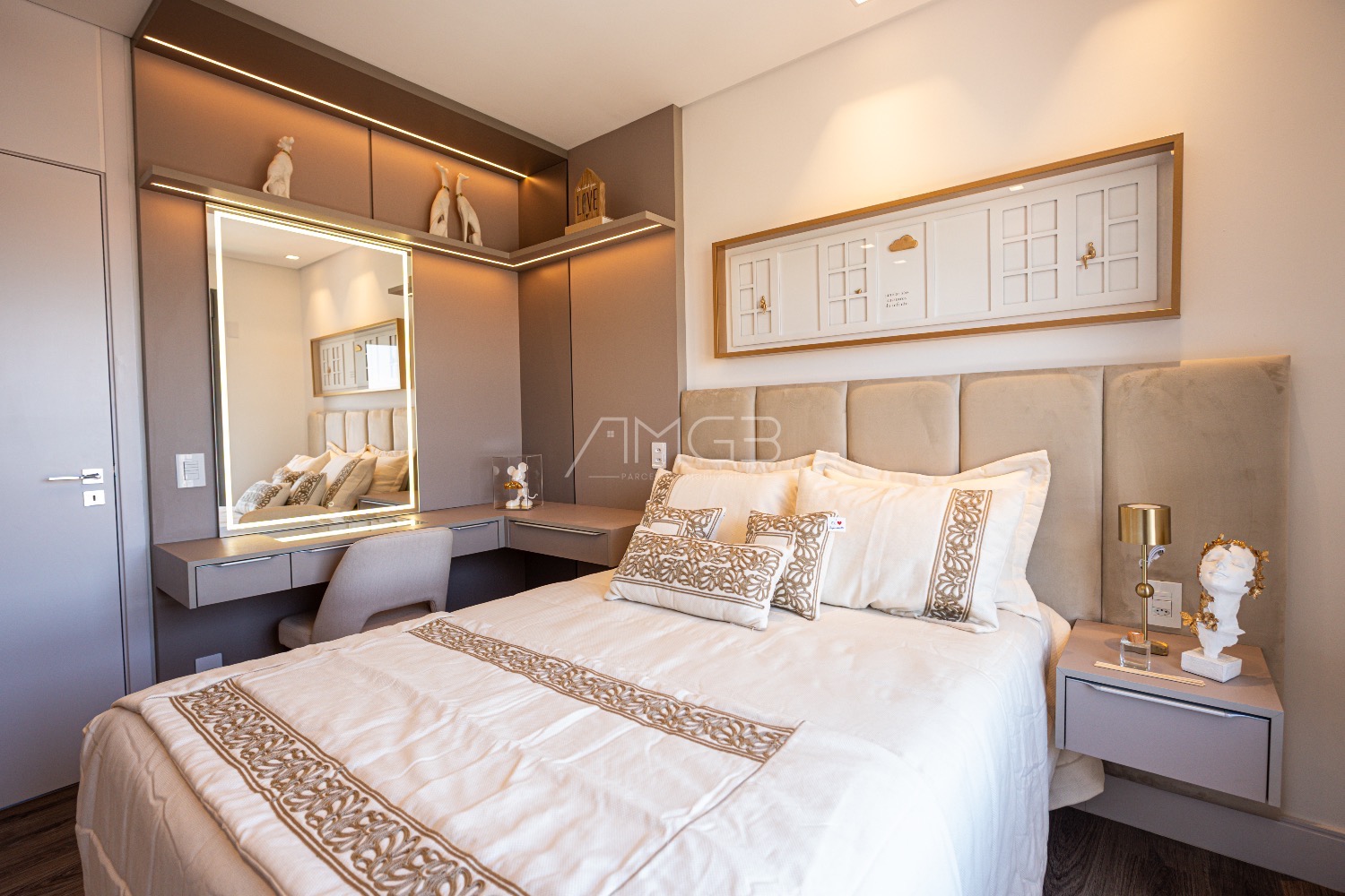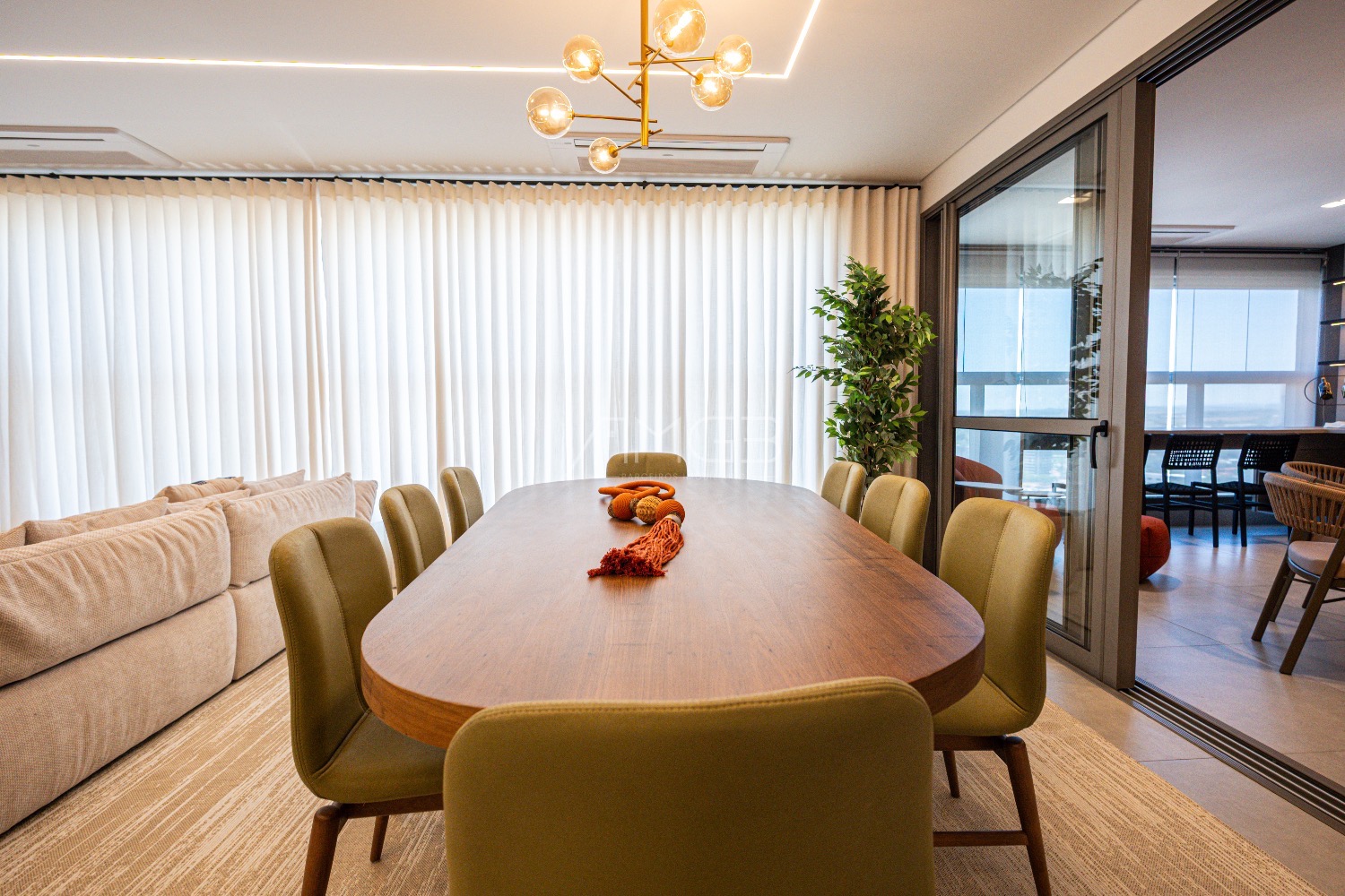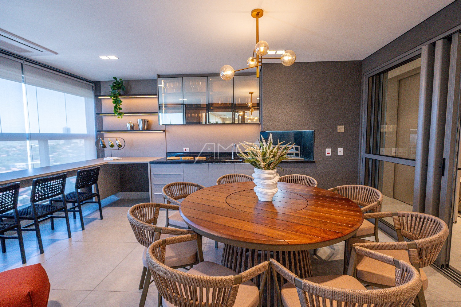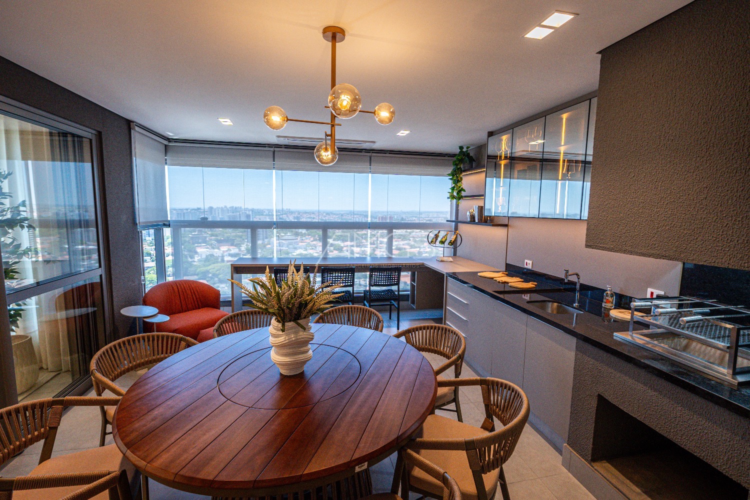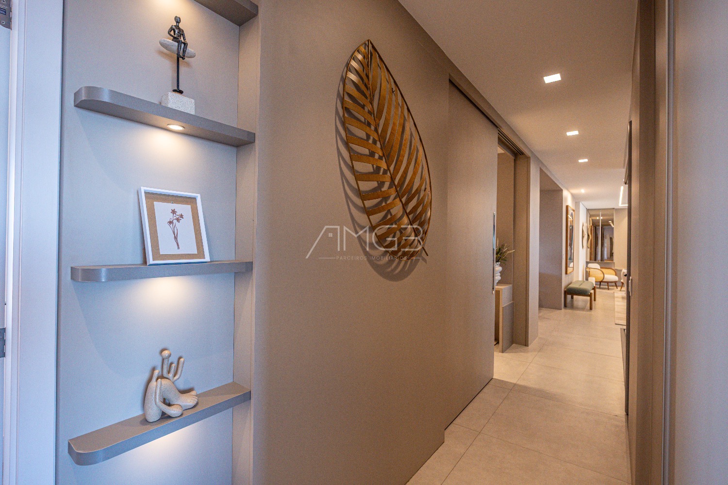 O apartamento conta com três suítes amplas, todas com closet, living imponente, sala de jantar elegante, cozinha totalmente equipada e móveis planejados em todos os ambientes. O espaço gourmet com churrasqueira é perfeito para receber, enquanto o home office integrado à sala de TV traz funcionalidade ao dia a dia. O elevador privativo reforça a sensação de exclusividade desde a chegada.