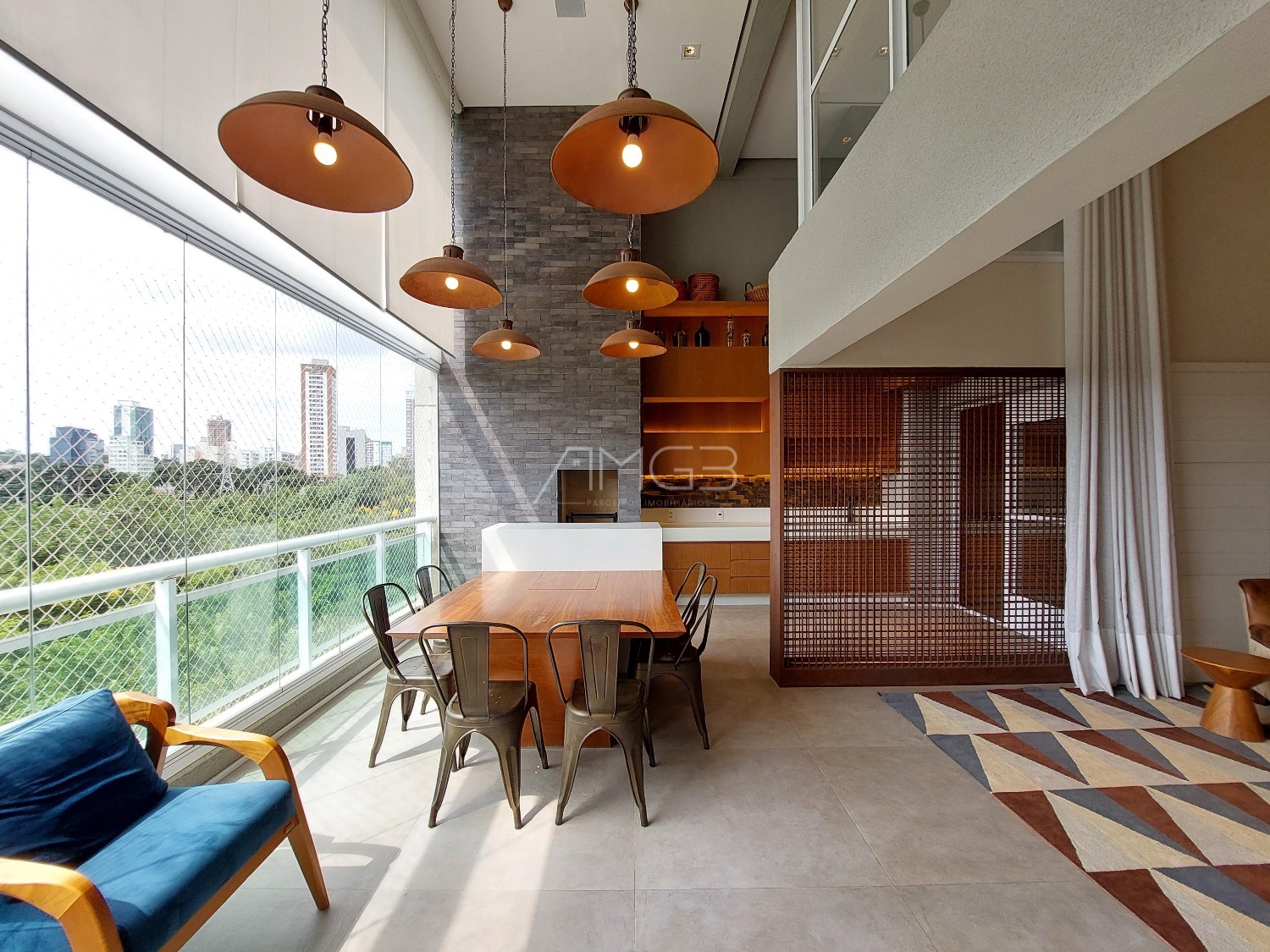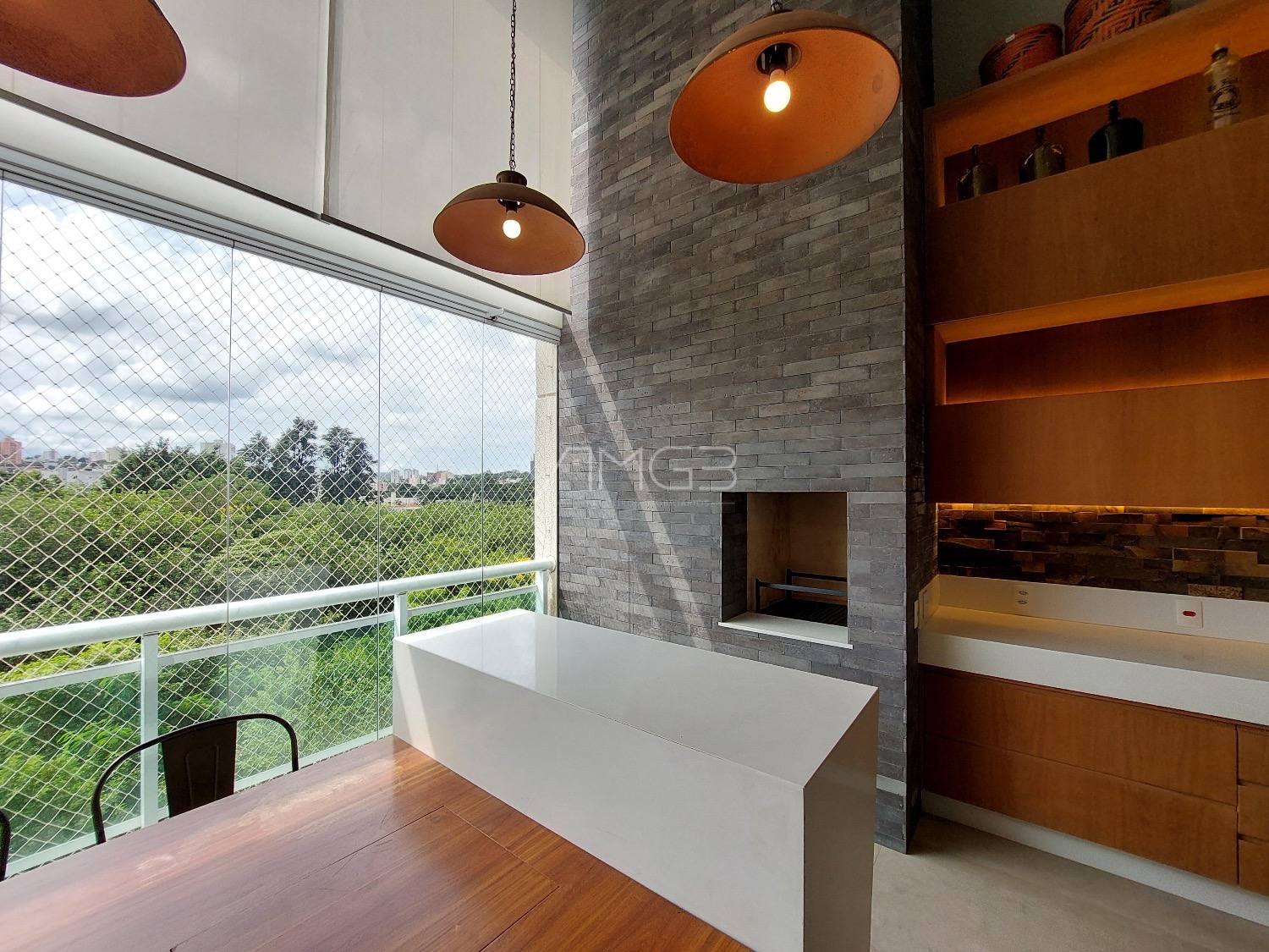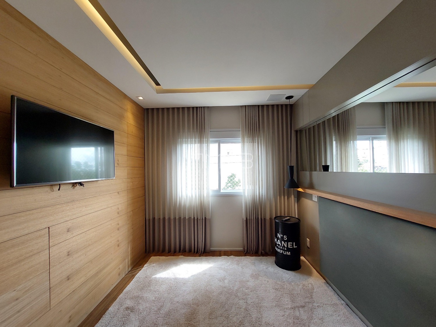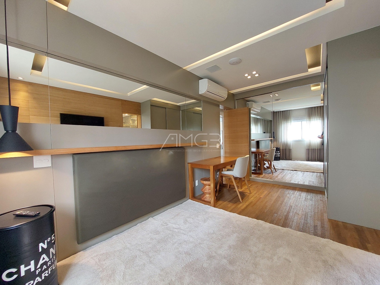 São 3 vagas cobertas na garagem. O apartamento é todo mobiliado, climatizado e automatizado com sistema Alexa.