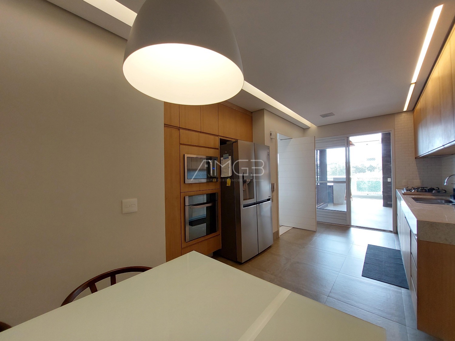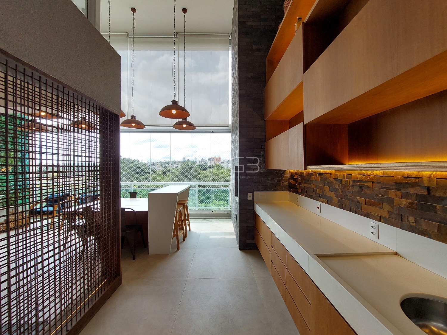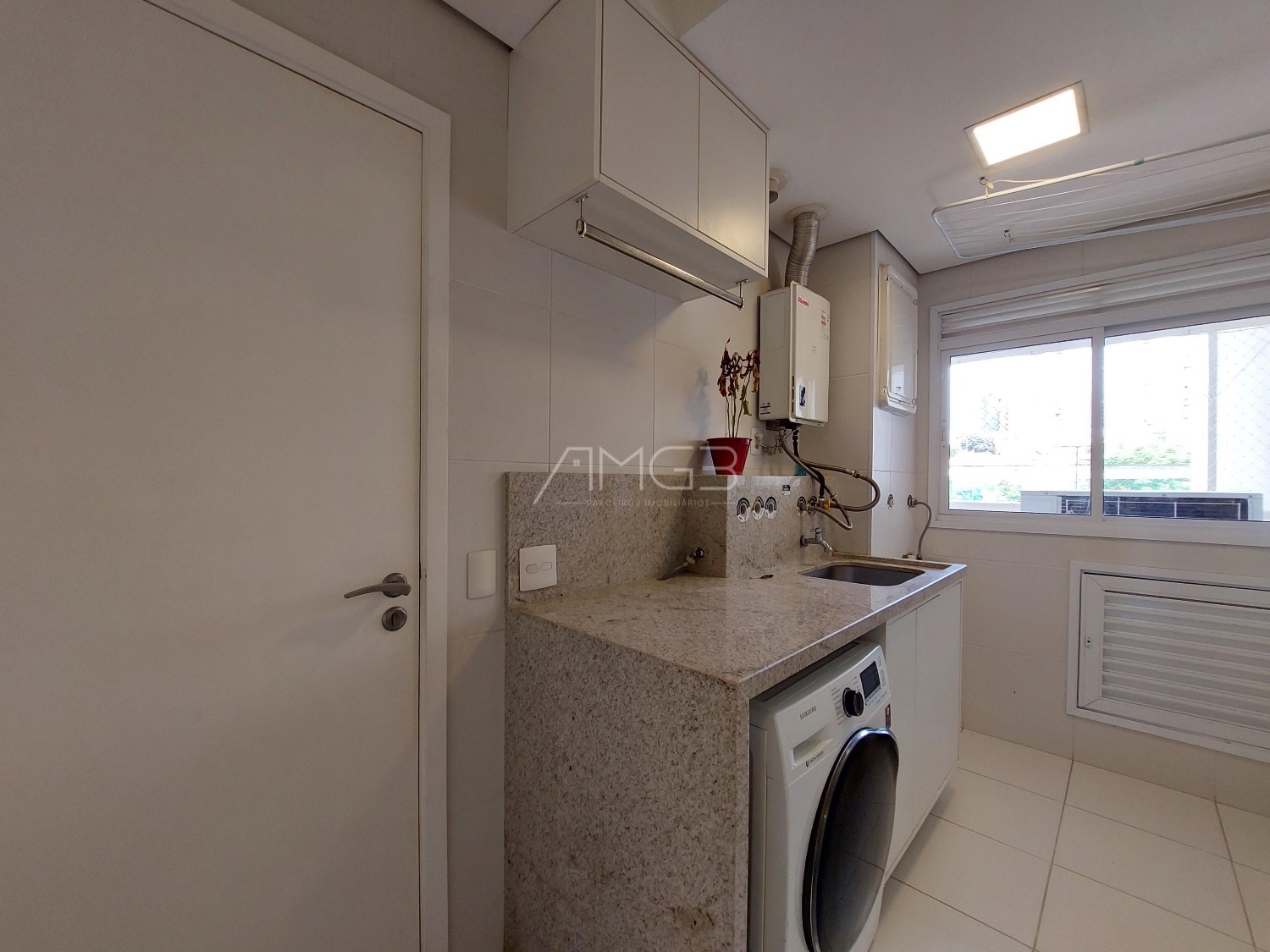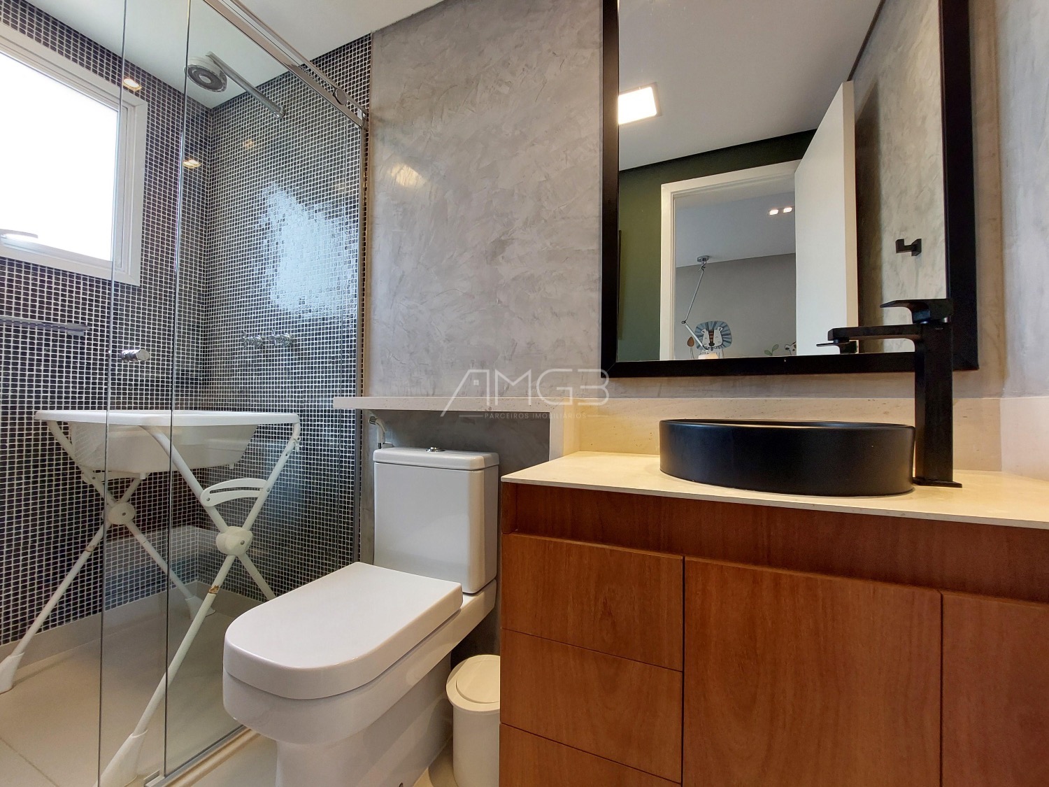 São 3 vagas cobertas na garagem. O apartamento é todo mobiliado, climatizado e automatizado com sistema Alexa.