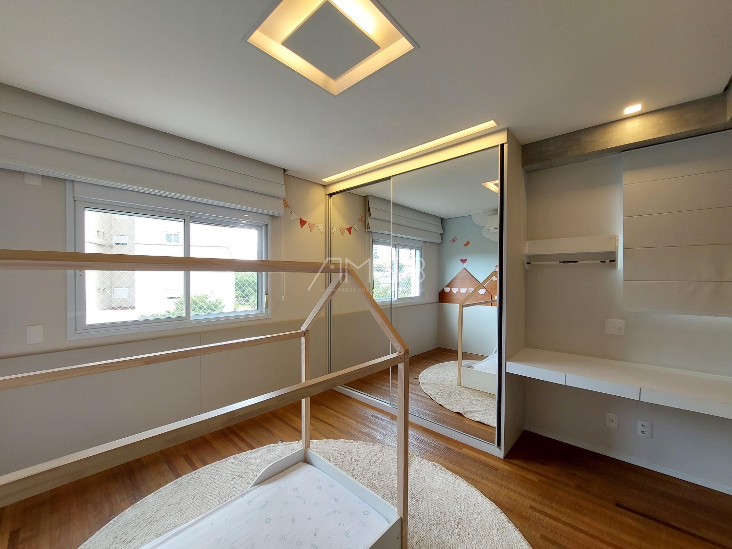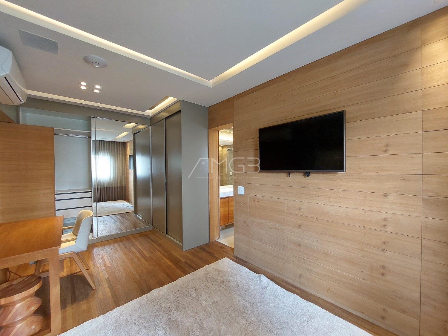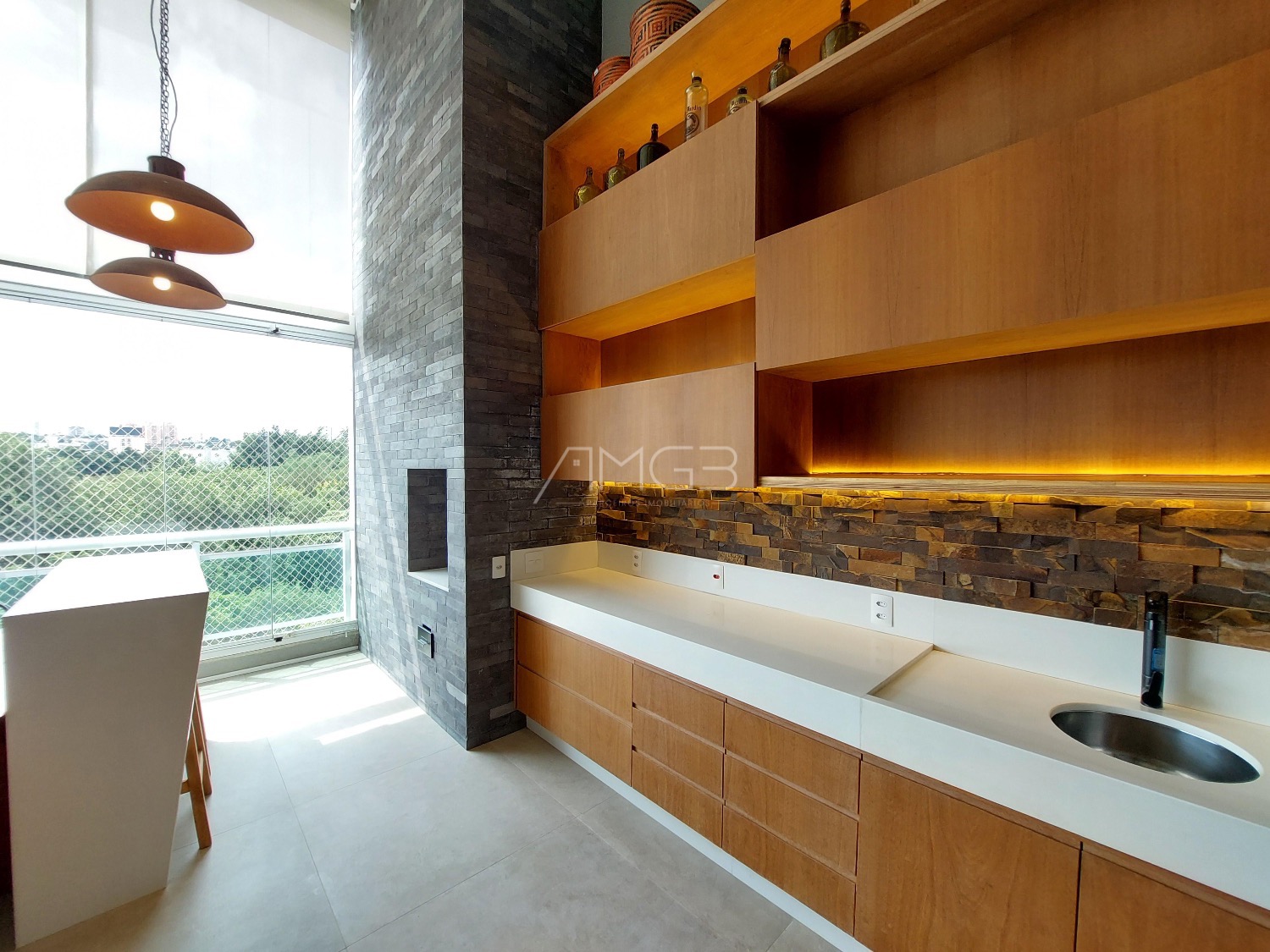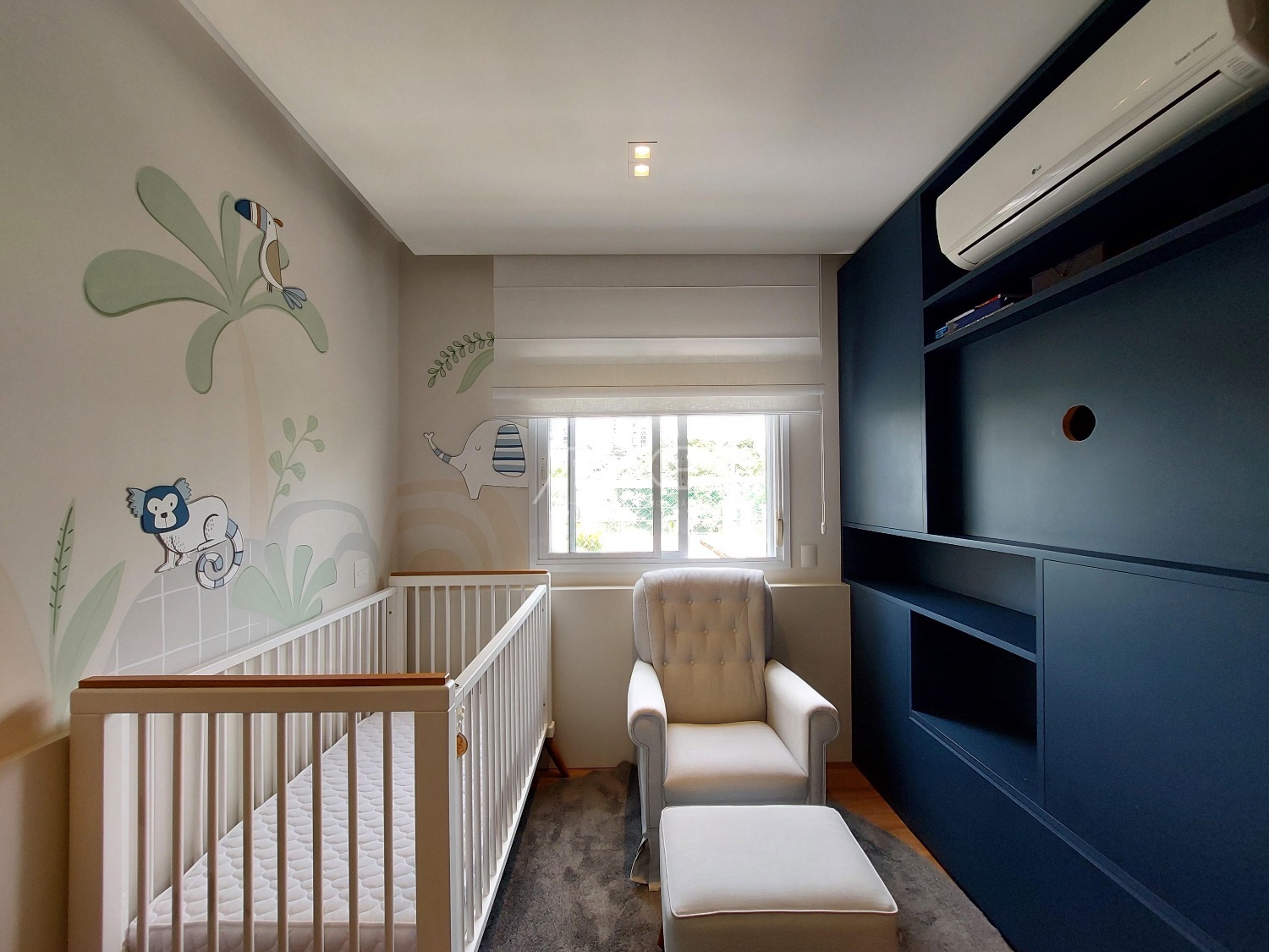 São 3 vagas cobertas na garagem. O apartamento é todo mobiliado, climatizado e automatizado com sistema Alexa.