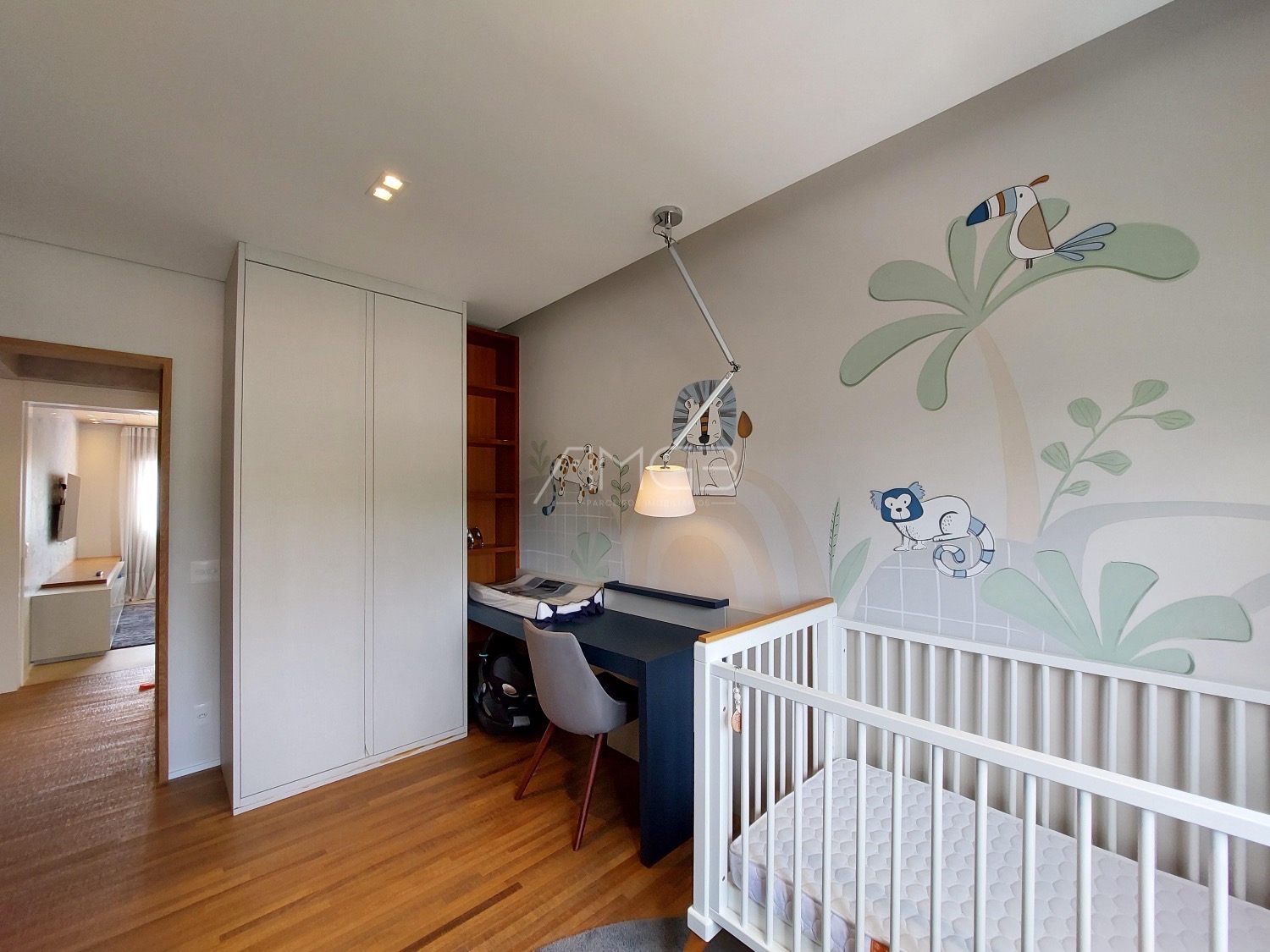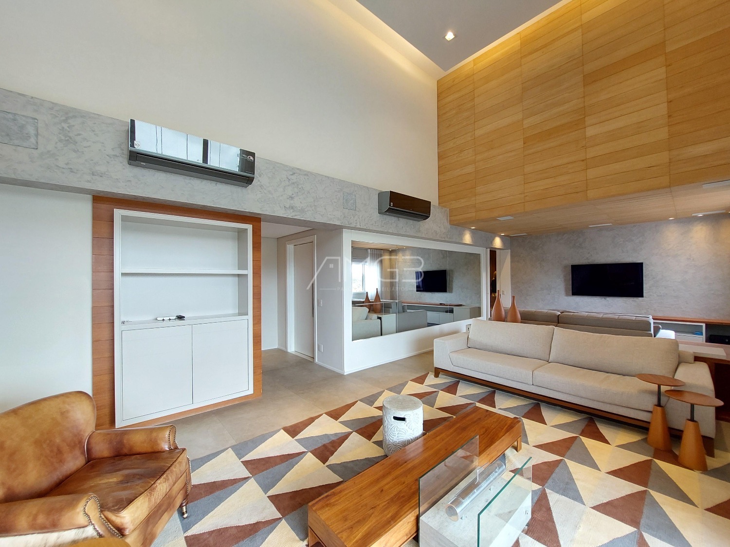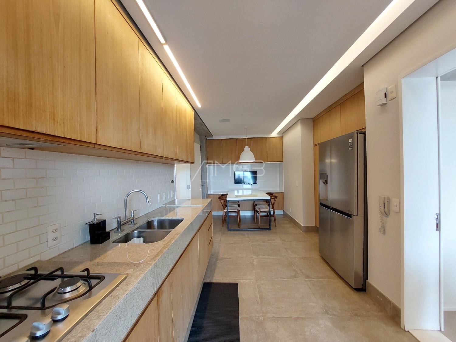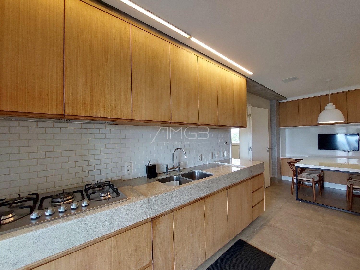 São 3 vagas cobertas na garagem. O apartamento é todo mobiliado, climatizado e automatizado com sistema Alexa.