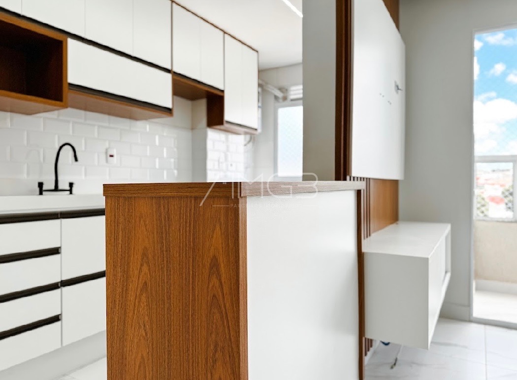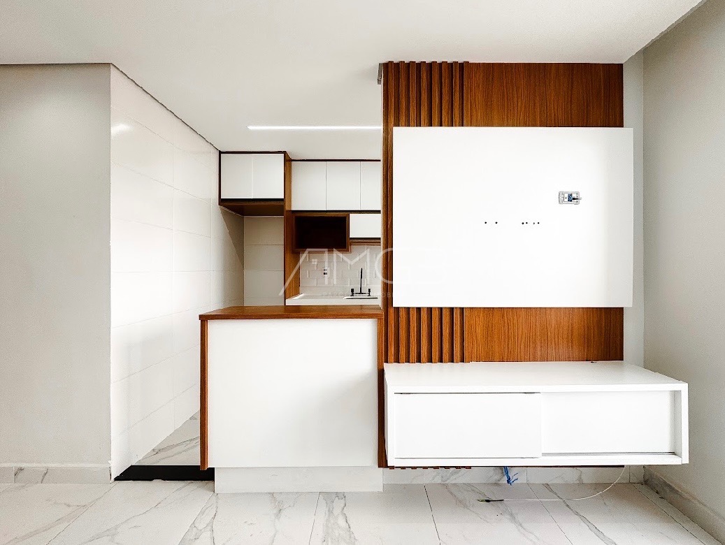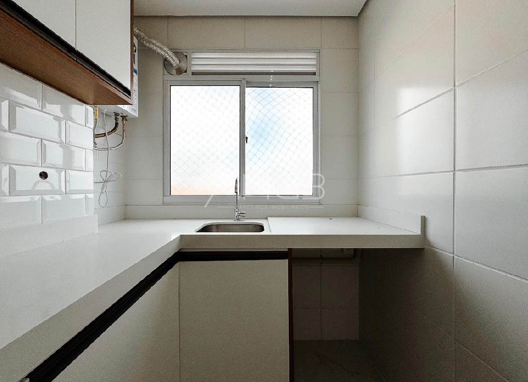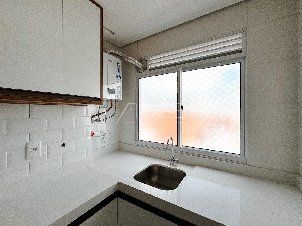 A cozinha é planejada e equipada com cooktop, micro-ondas e geladeira. O imóvel conta ainda com infraestrutura para ar-condicionado, aquecedor a gás e automação com comando via Alexa, trazendo mais conforto e tecnologia para a rotina.