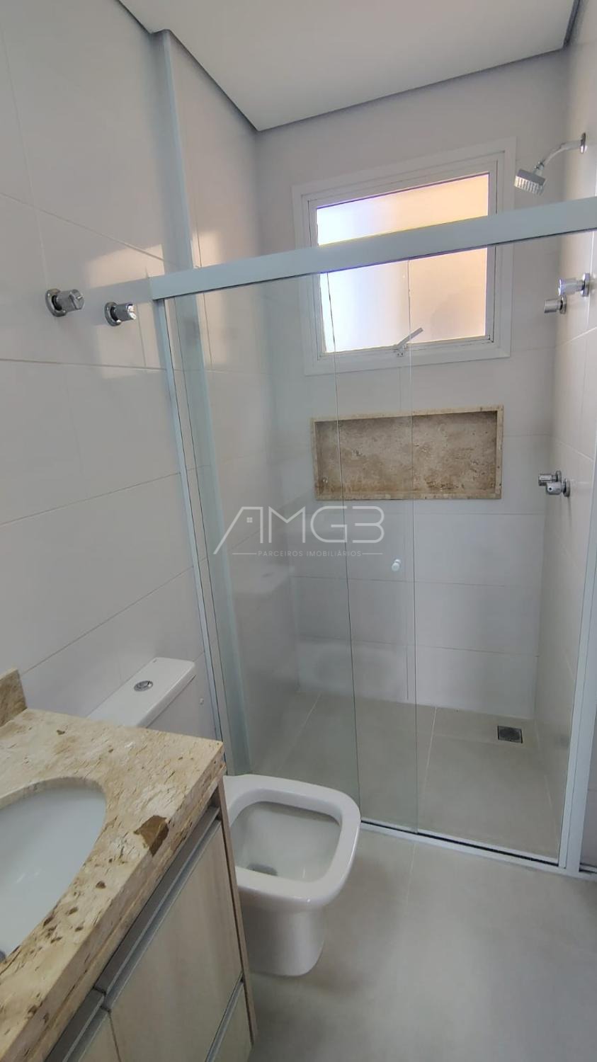 São 3 dormitórios (sendo 1 suíte), com lavabo, todo em piso porcelanato, armários planejados,ar-condicionado e persianas automatizadas.