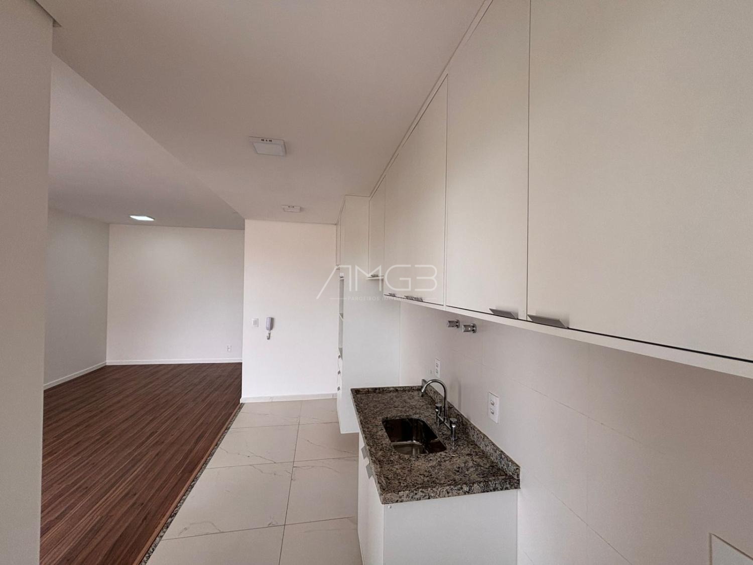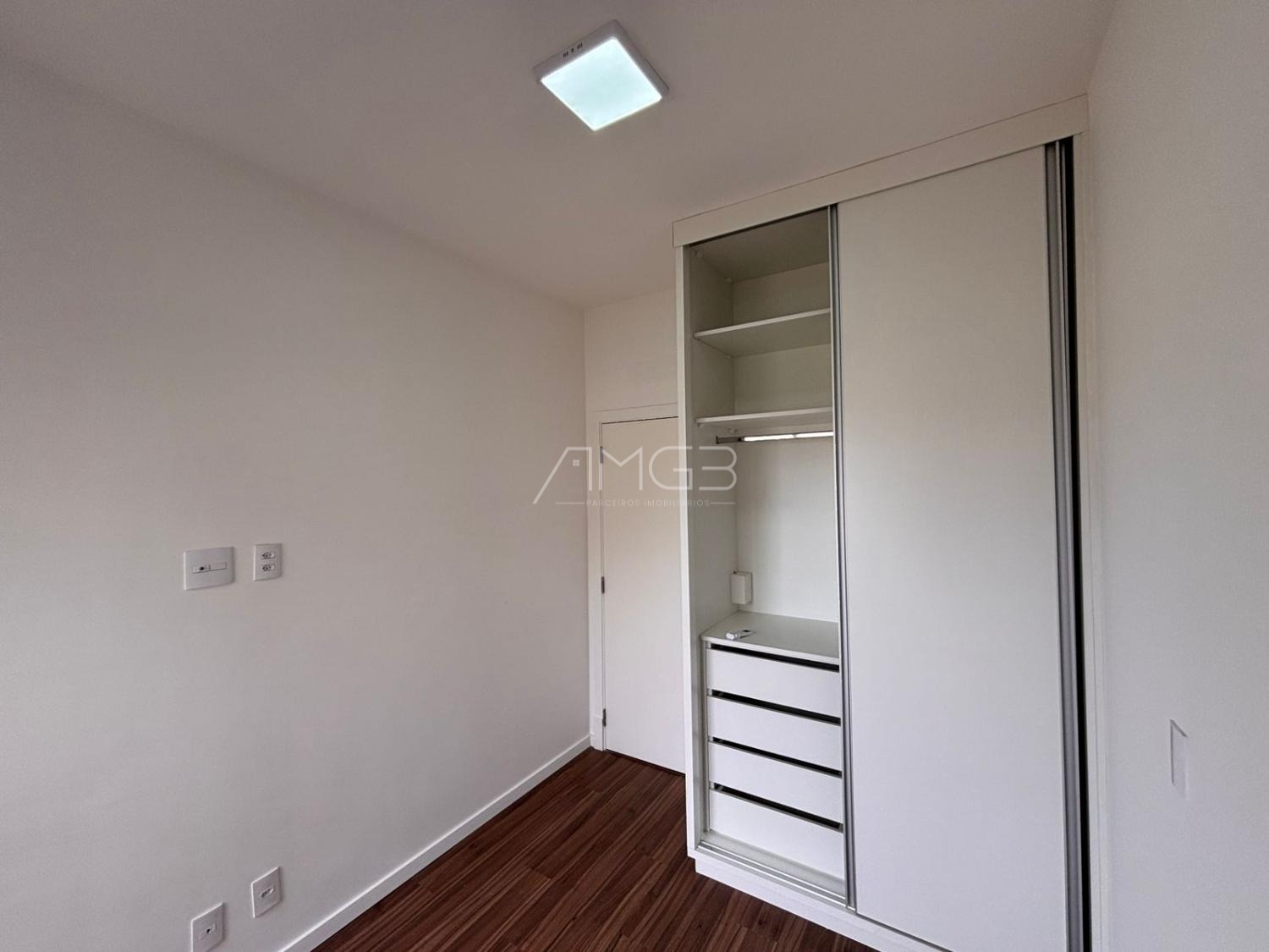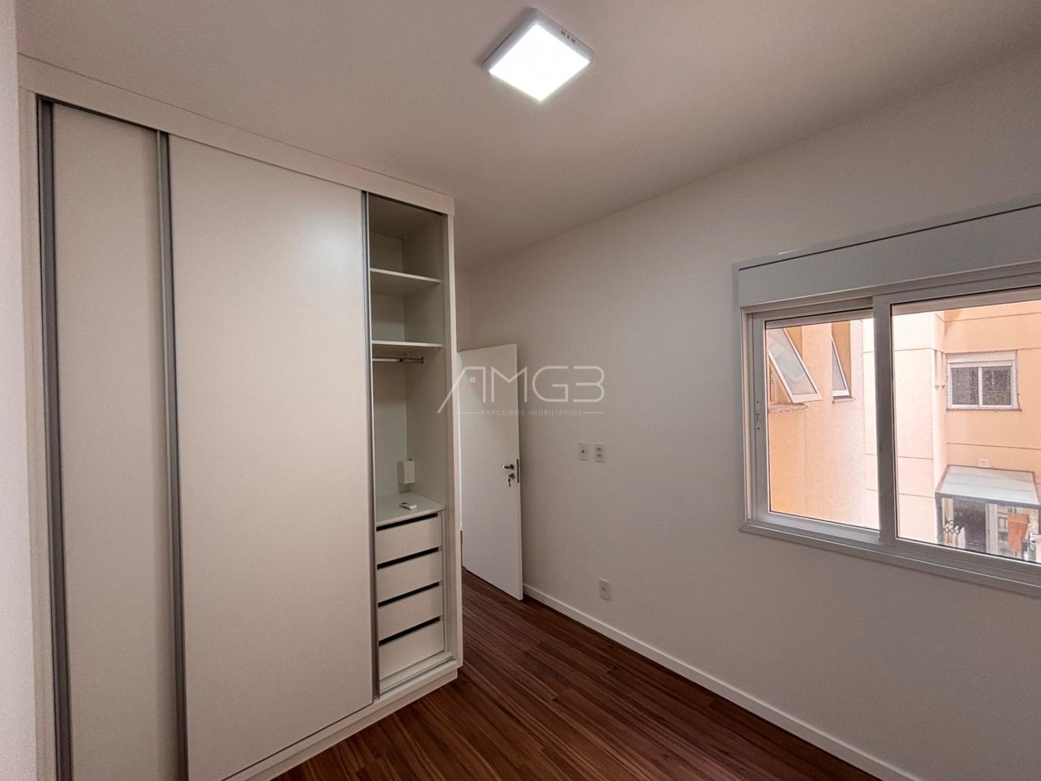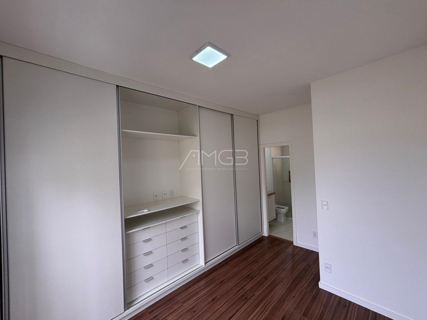 Apartamento de 91m2 com 3 dormitórios, sendo uma suíte máster, todos com armários planejados, janelas automatizadas, sala de TV e jantar, cozinha planejada e integrada.