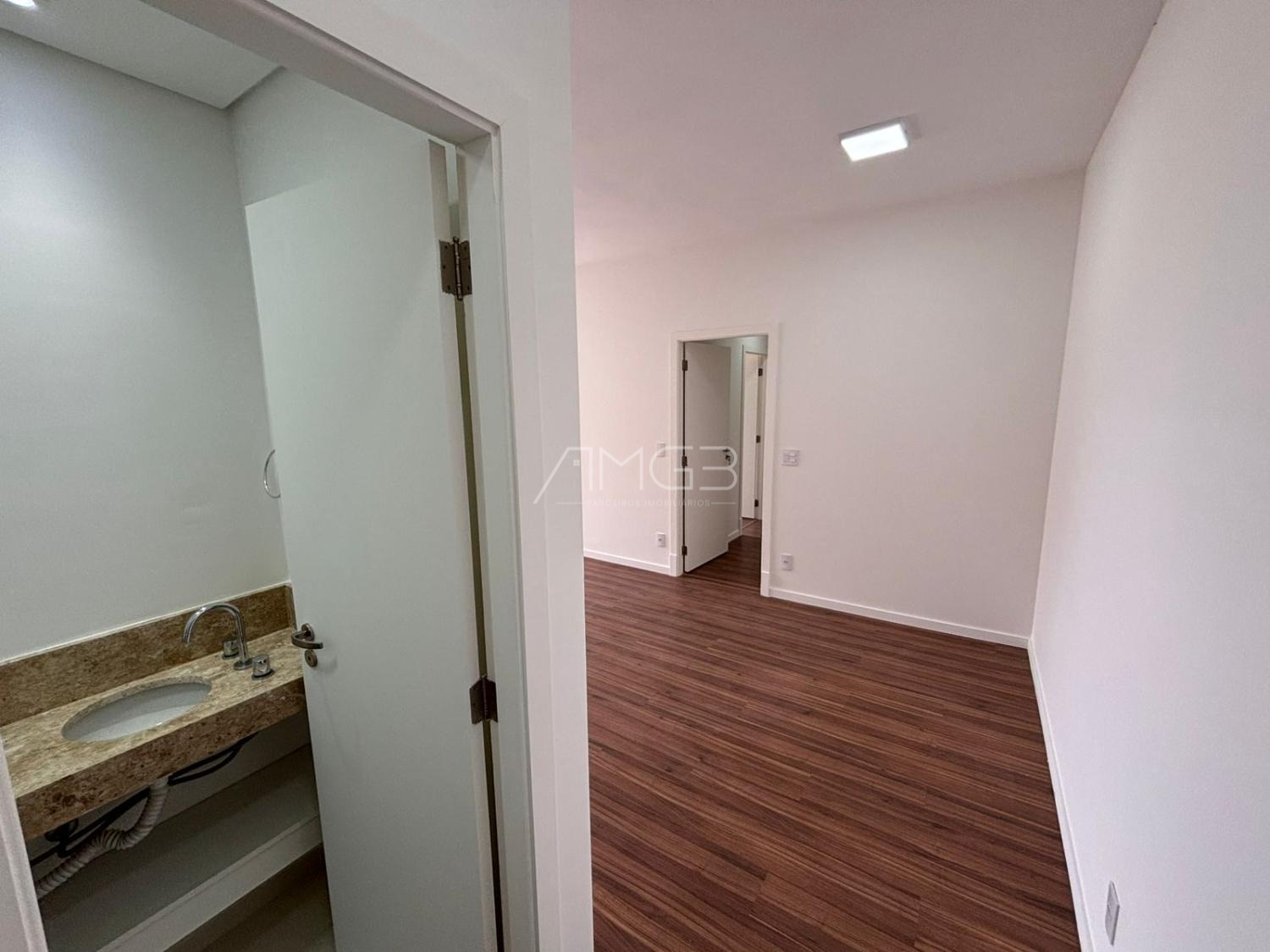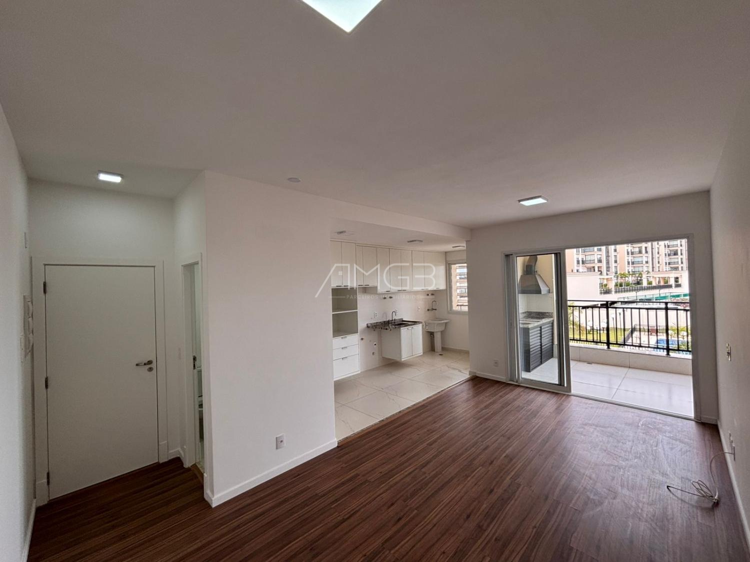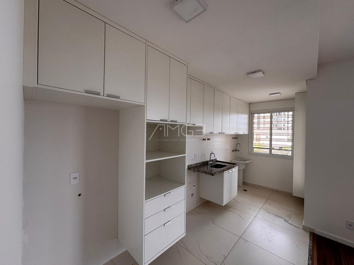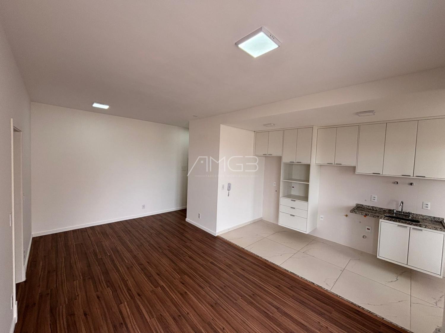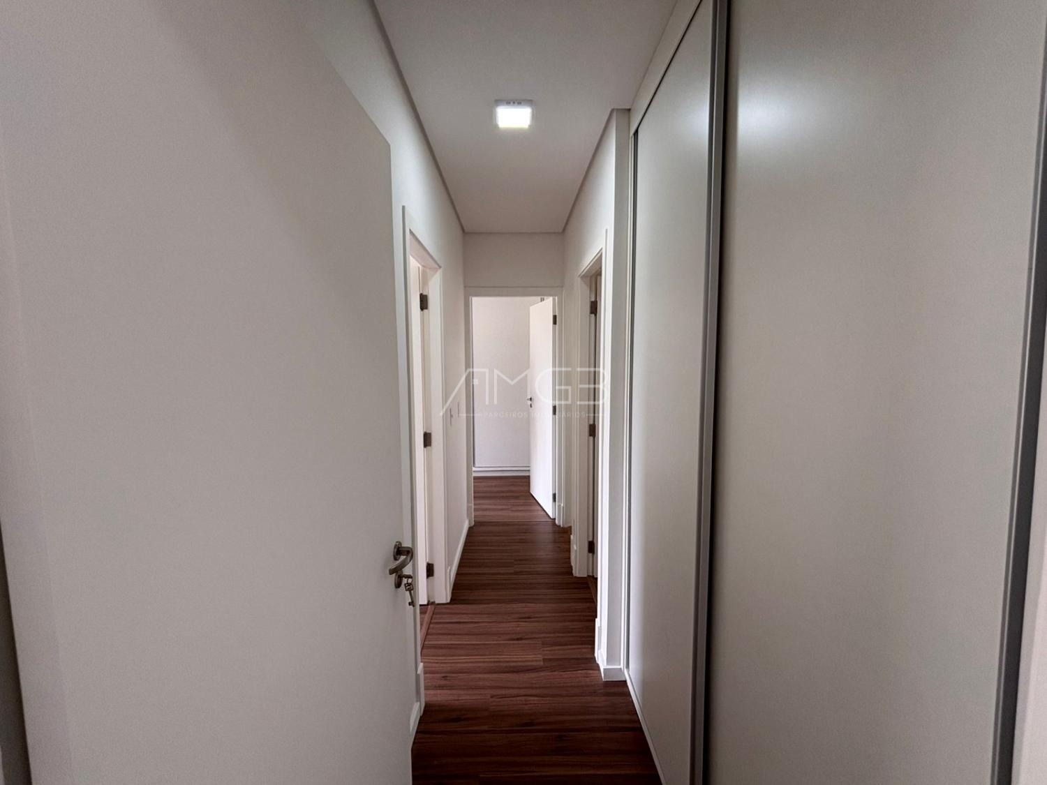 Apartamento de 91m2 com 3 dormitórios, sendo uma suíte máster, todos com armários planejados, janelas automatizadas, sala de TV e jantar, cozinha planejada e integrada.