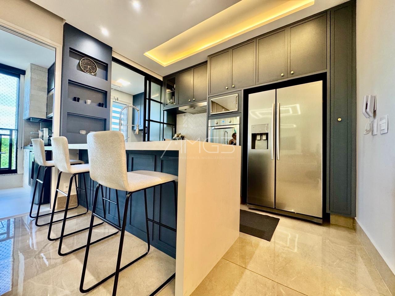 Lindo apartamento, com 92m², varanda gourmet com linda vista para área de preservação, living espaçoso para sala de estar e jantar, cozinha planejada e equipada, integrada com área de serviço, além do lavabo.