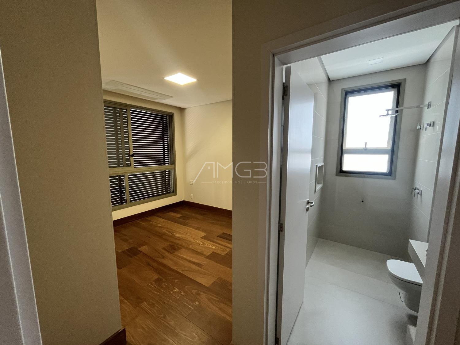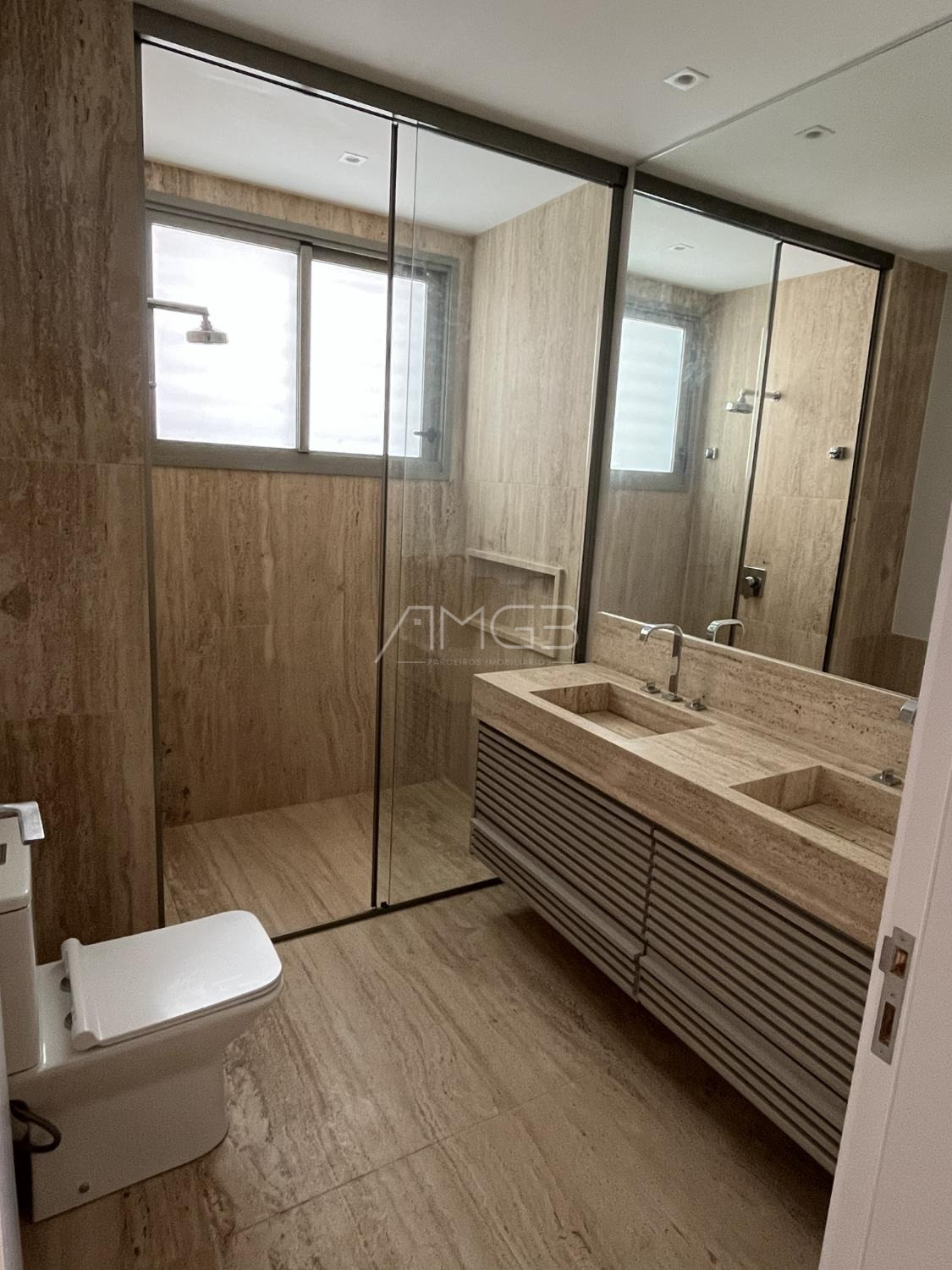 São 3 suítes, todas com planejados Todeschini, sendo a master com acabamento em mármore Travertino Romano. Área social ampla e integrada, com sala de estar e jantar conectadas ao espaço gourmet com churrasqueira.
