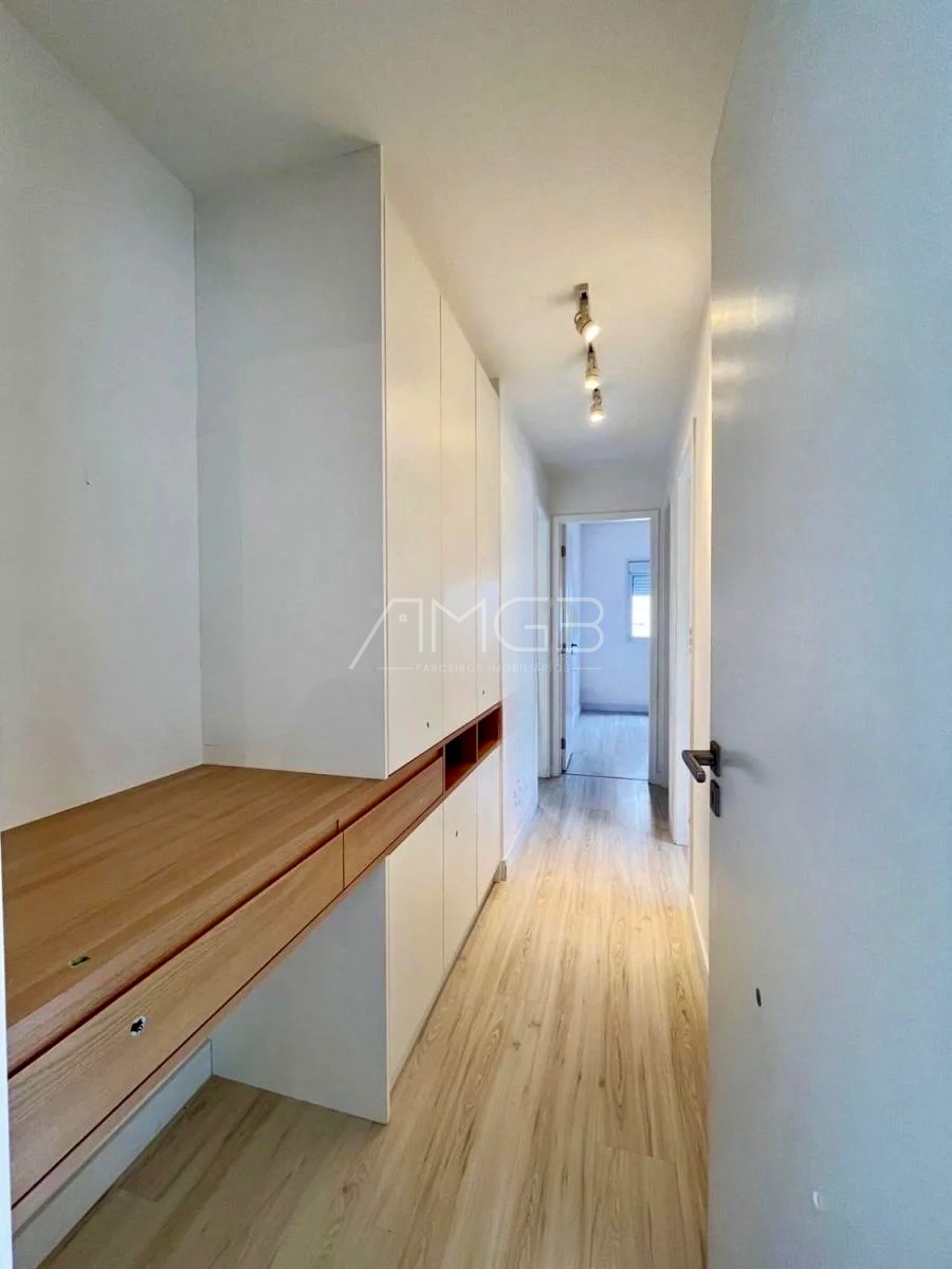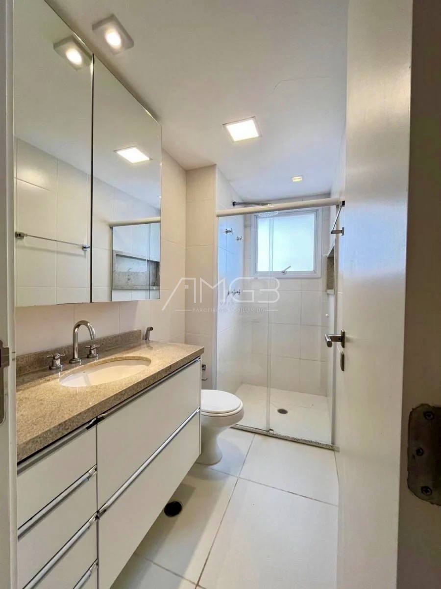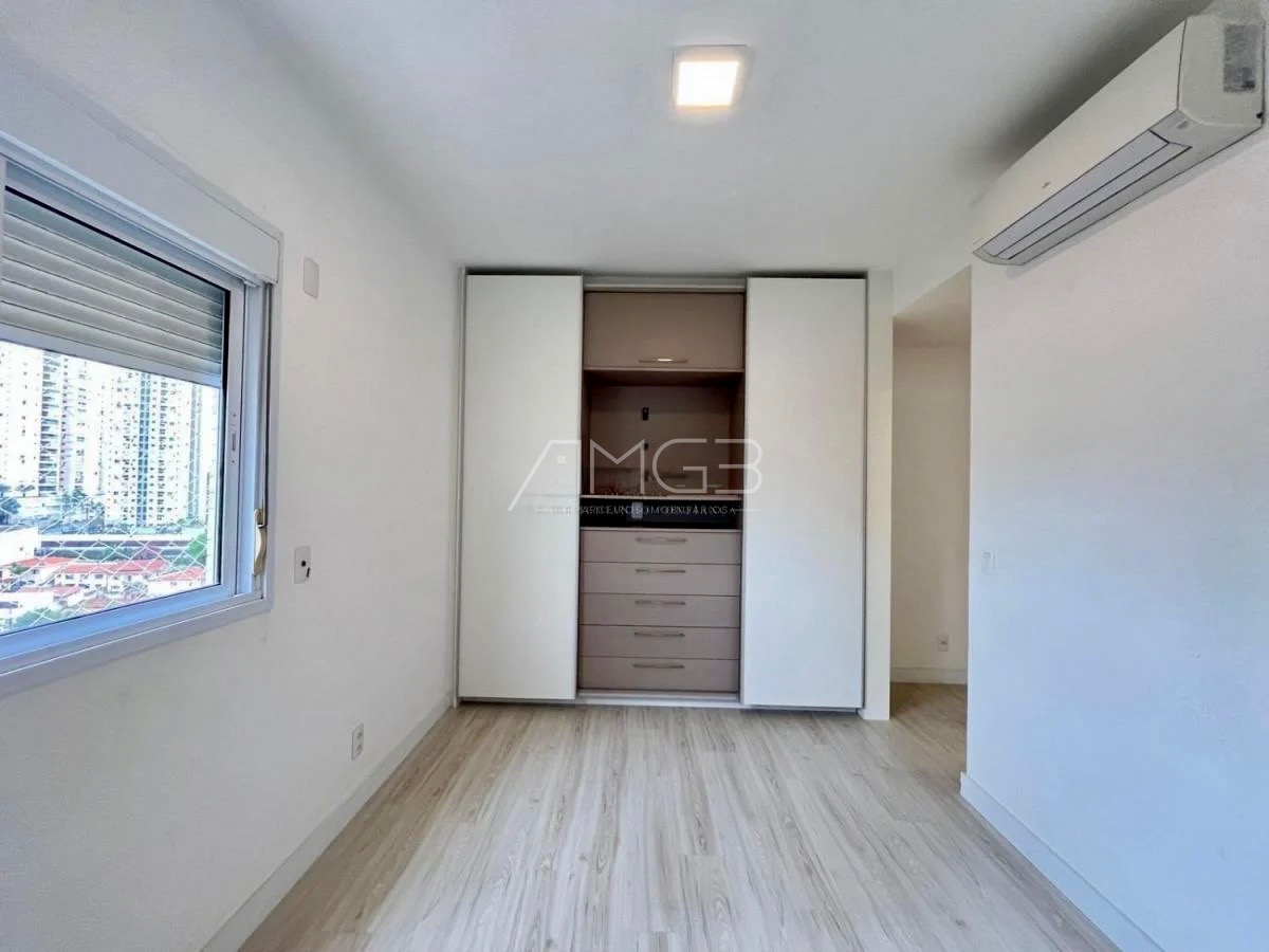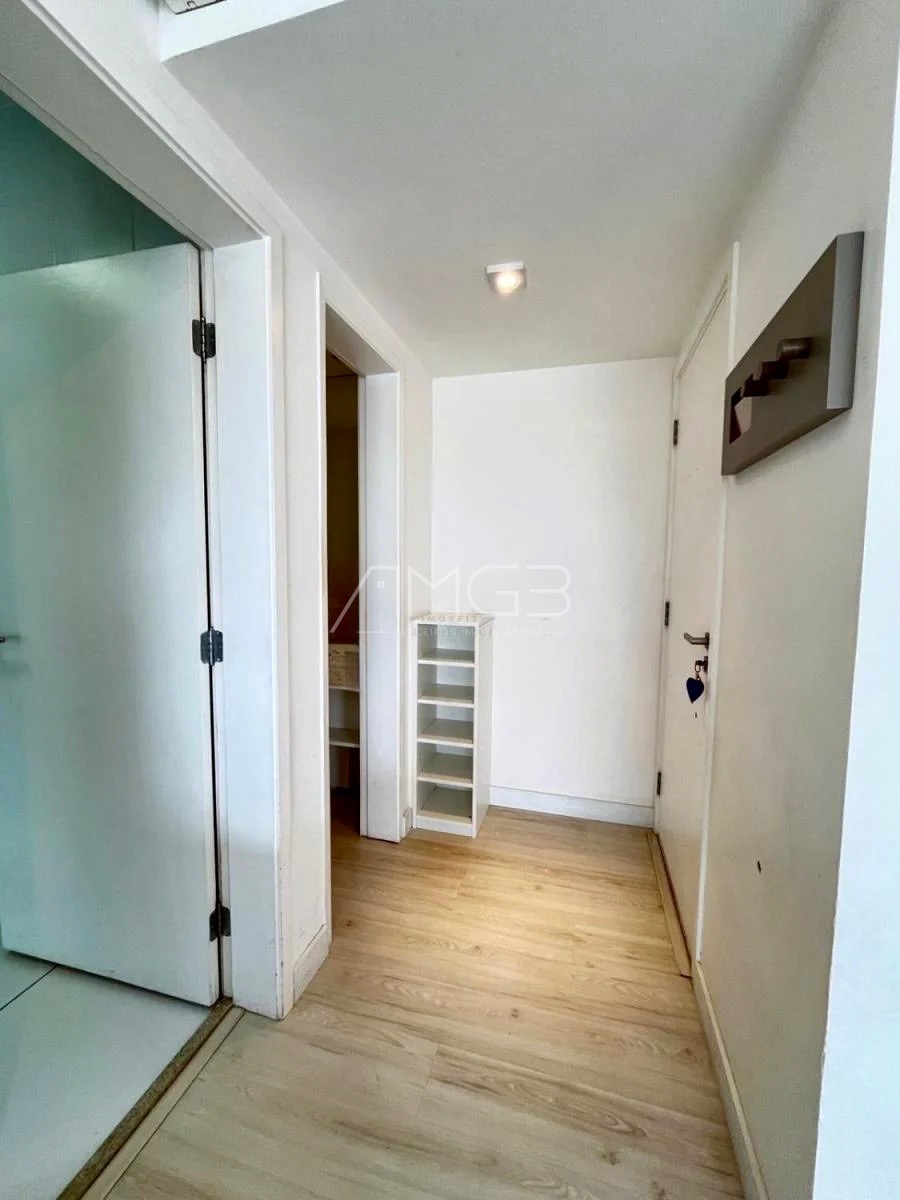 O apartamento é rico em armários planejados, oferecendo praticidade e organização em todos os ambientes, além de ar condicionado que garante conforto em todas as estações do ano. Possui 2 vagas de garagem no modelo gaveta, sendo uma delas posicionada junto à parede, proporcionando melhor aproveitamento do espaço.