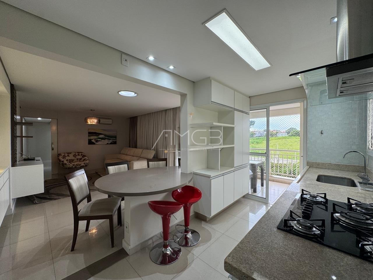 O imóvel conta com ampla sala para dois ambientes integrada ao espaço gourmet com churrasqueira e bela vista, ideal para receber amigos e familiares. A cozinha americana é planejada e integrada ao ambiente social, proporcionando praticidade e funcionalidade.