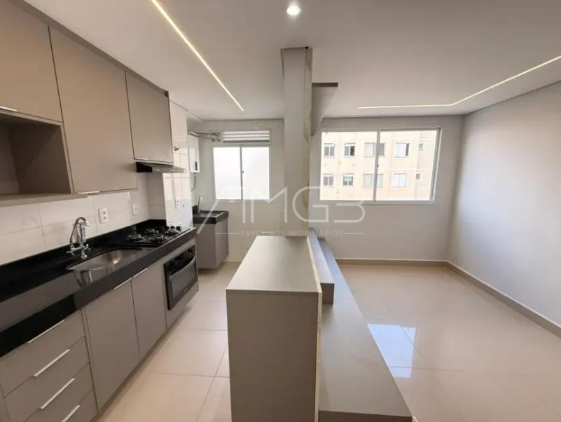 Com 43m² bem aproveitados, o imóvel conta com 2 dormitórios com armários planejados, sendo a suíte equipada com ar-condicionado. A sala para dois ambientes possui rebaixo de gesso, iluminação em LED e painel, trazendo modernidade e aconchego ao espaço.