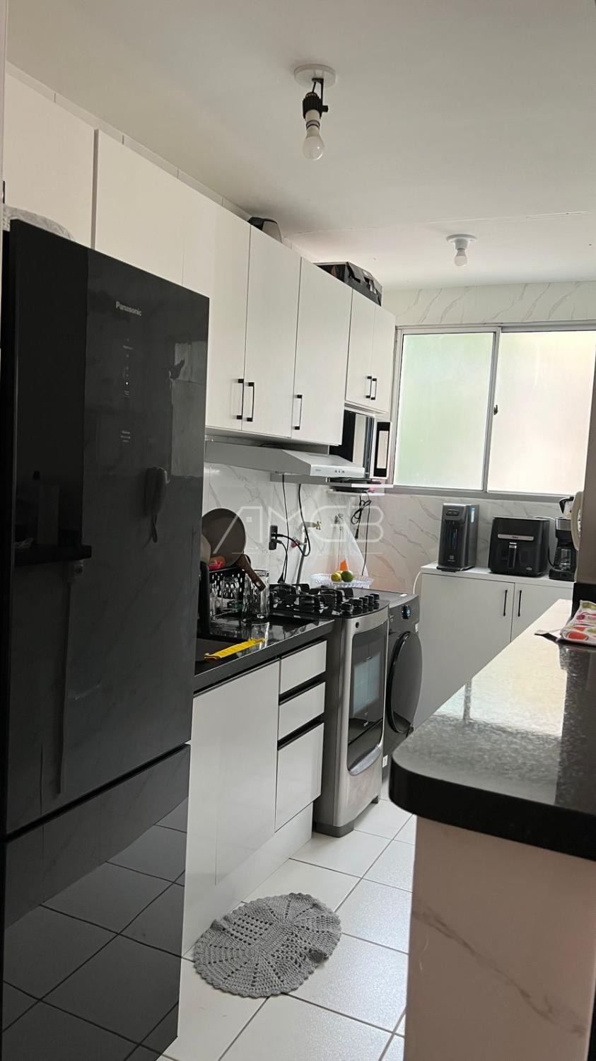 O imóvel conta com sala de estar/jantar integrada, cozinha, dois dormitórios com móveis planejados, banheiro e vaga de garagem próxima ao apartamento.