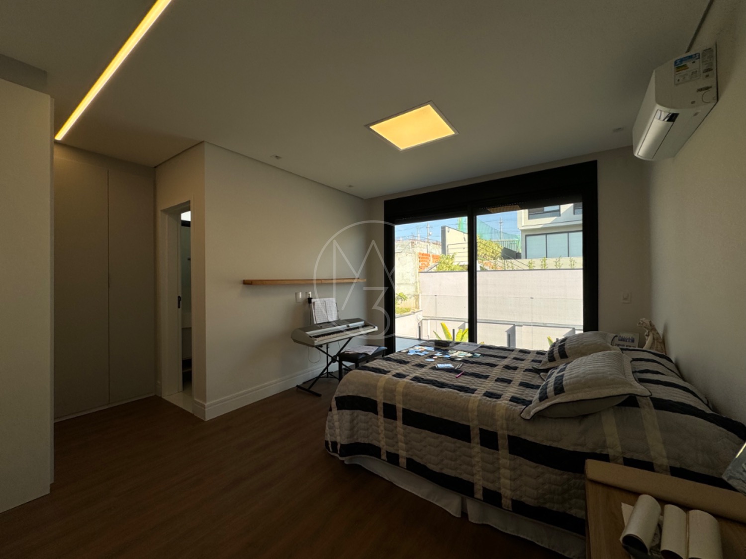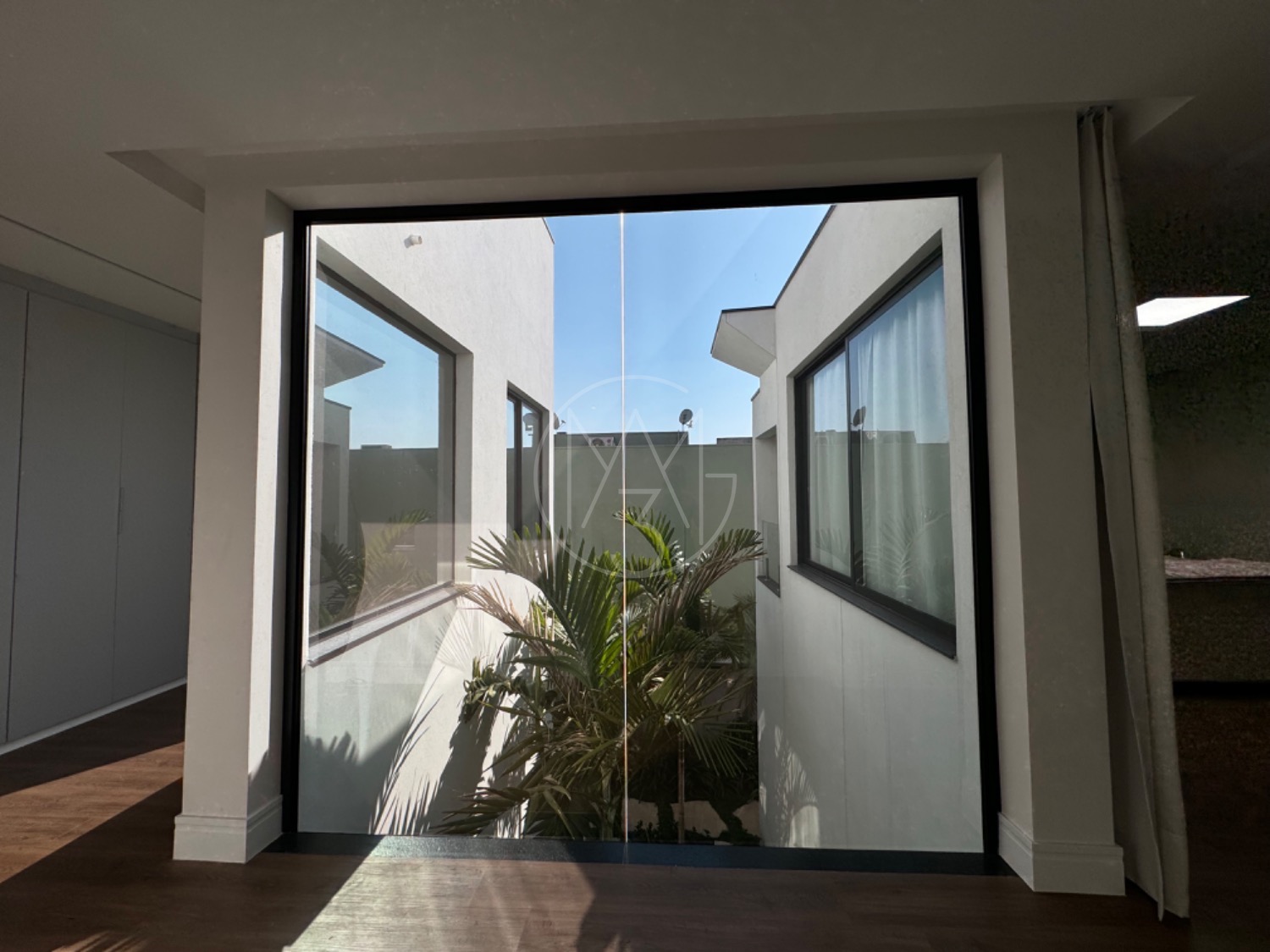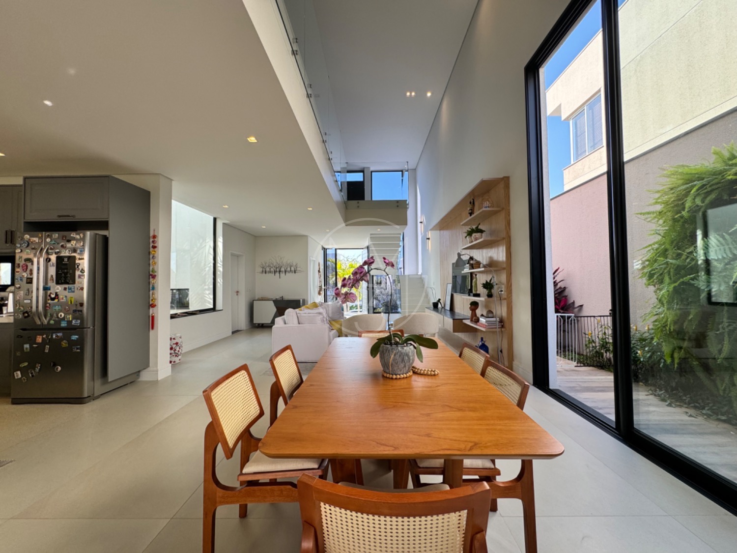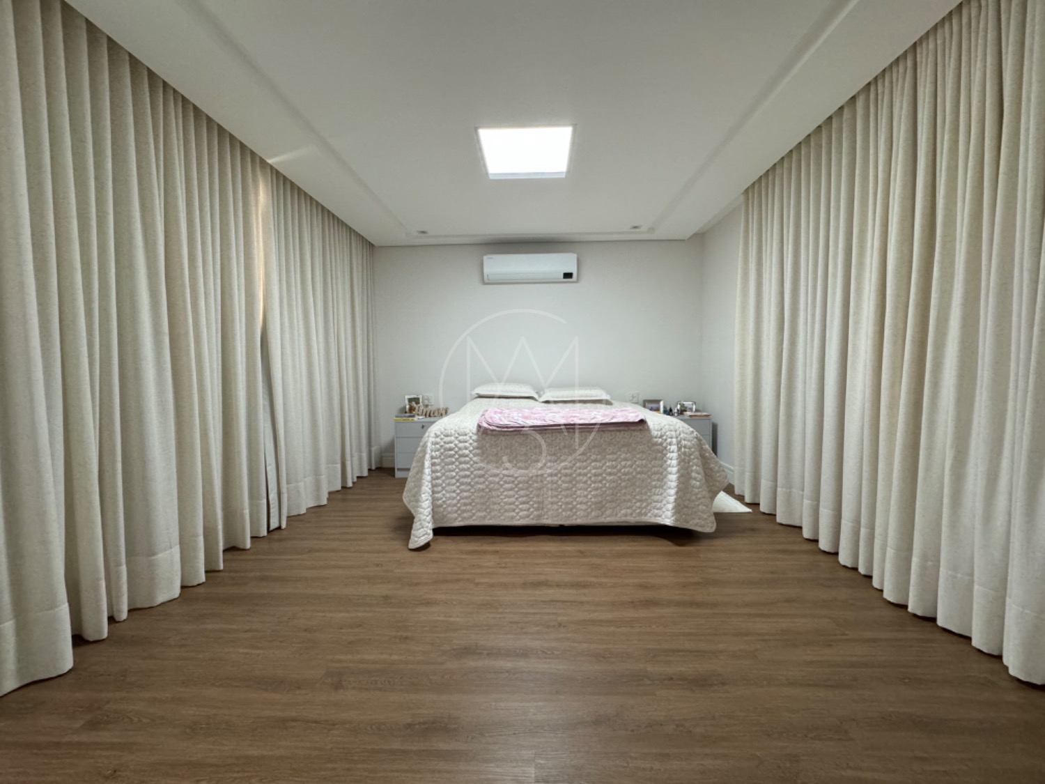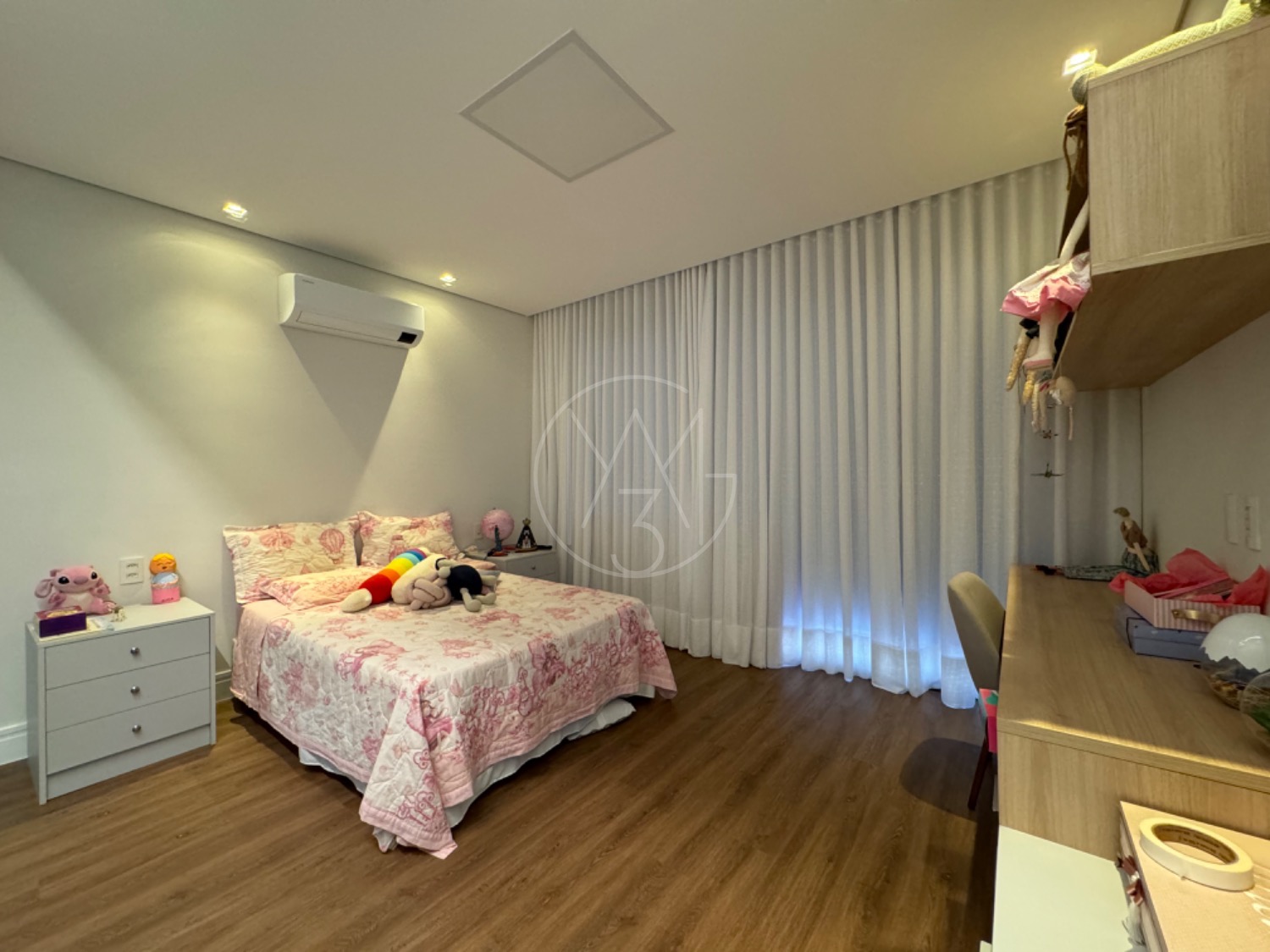 Sobrado de 440m², 4 suítes (1 no andar térreo), suíte máster com closet e banheira de imersão, sala de estar ampla, com pé direito alto, cozinha integrada, escritório, área de lazer com espaço gourmet e piscina aquecida.