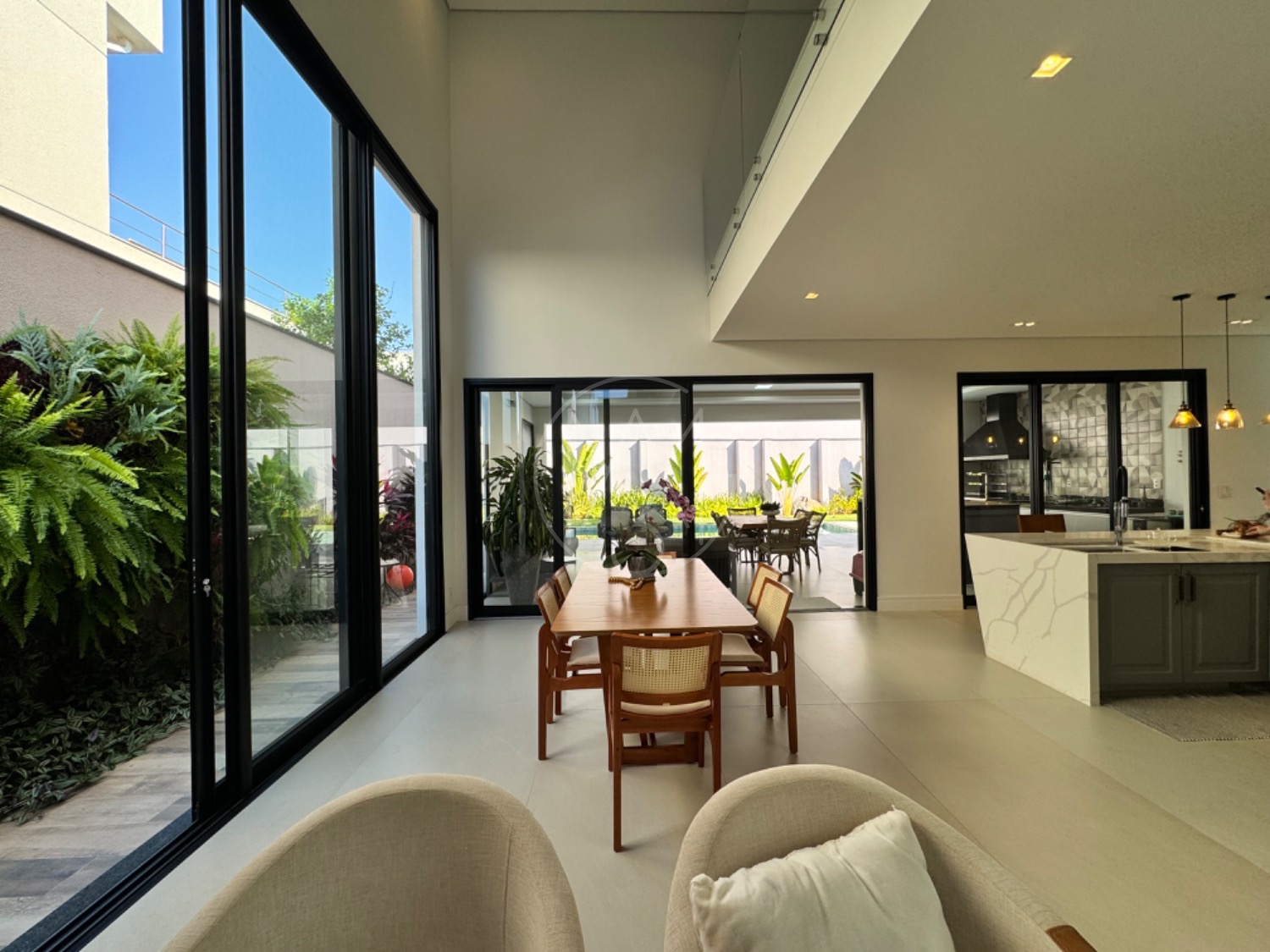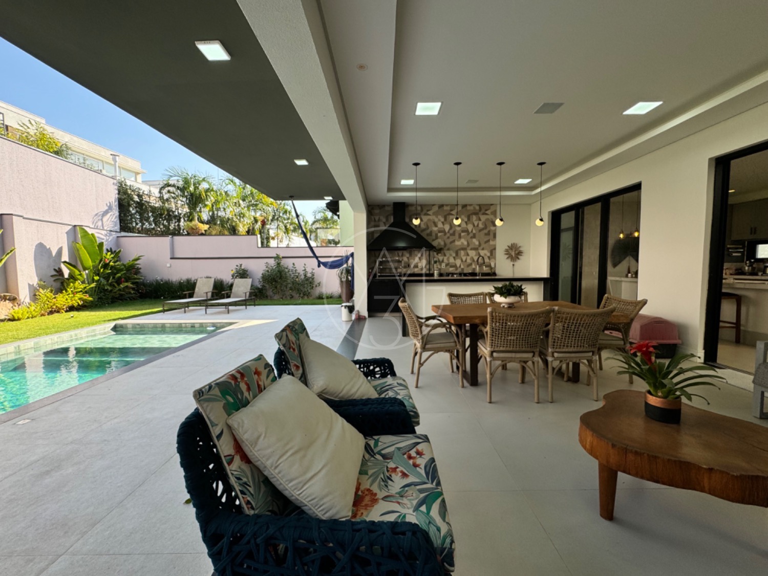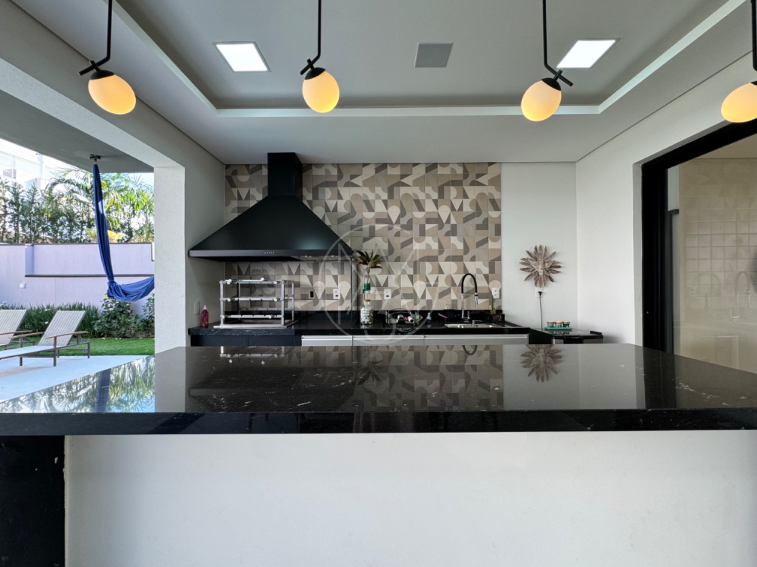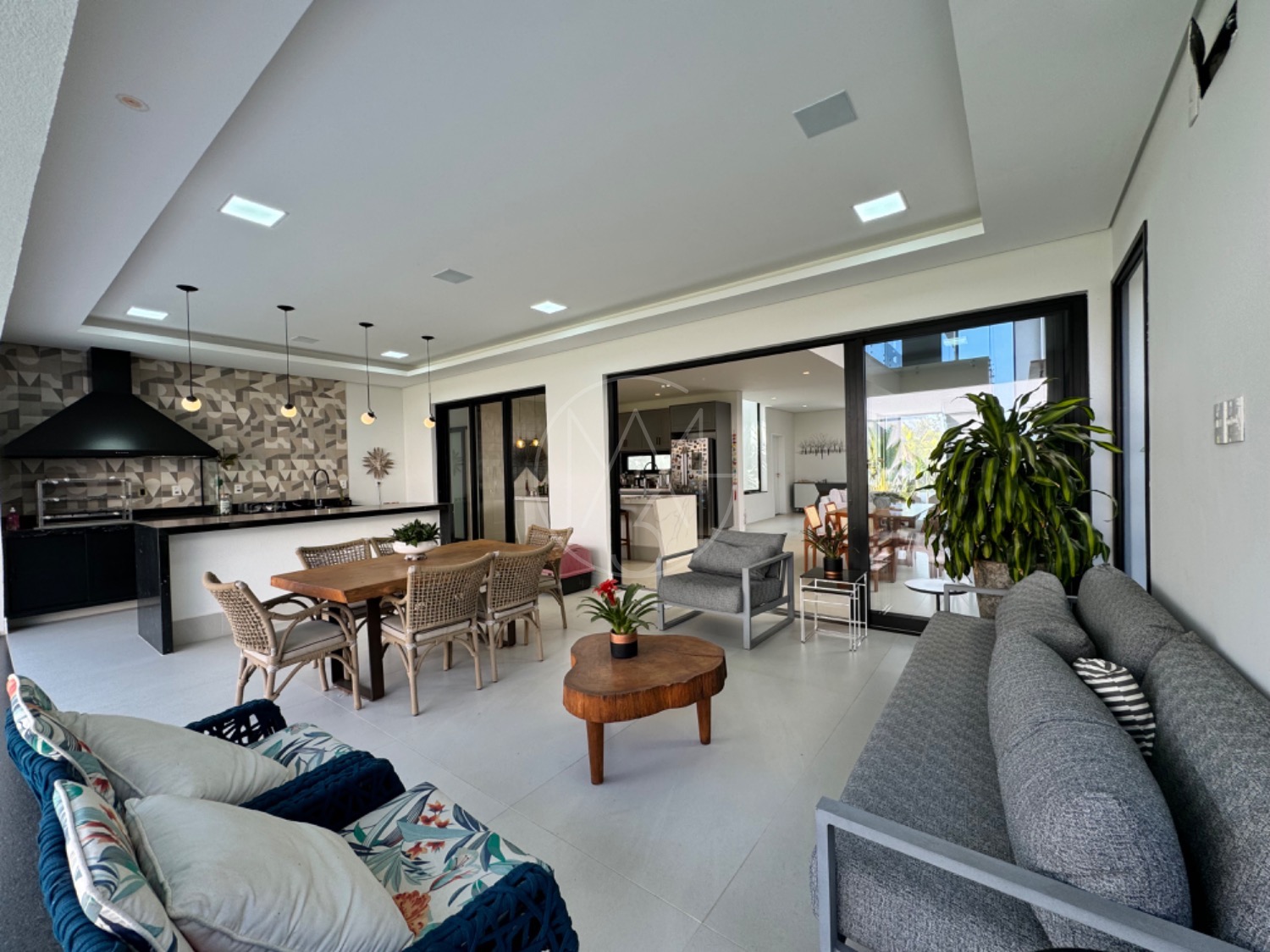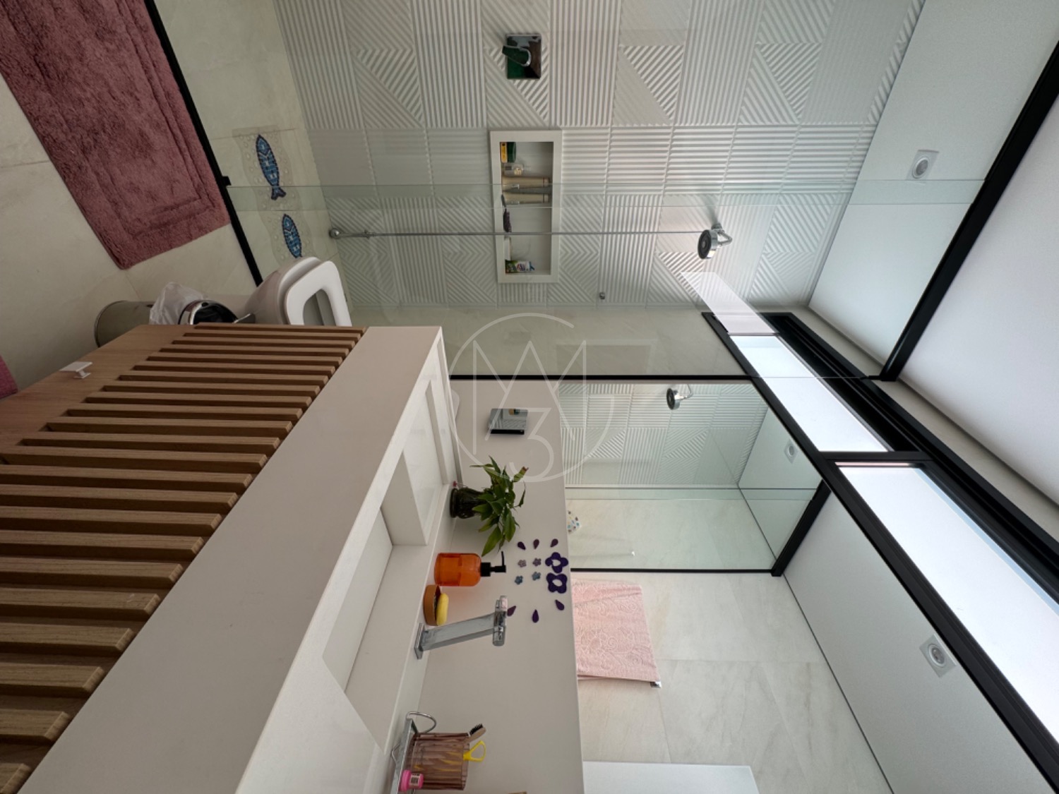 Sobrado de 440m², 4 suítes (1 no andar térreo), suíte máster com closet e banheira de imersão, sala de estar ampla, com pé direito alto, cozinha integrada, escritório, área de lazer com espaço gourmet e piscina aquecida.
