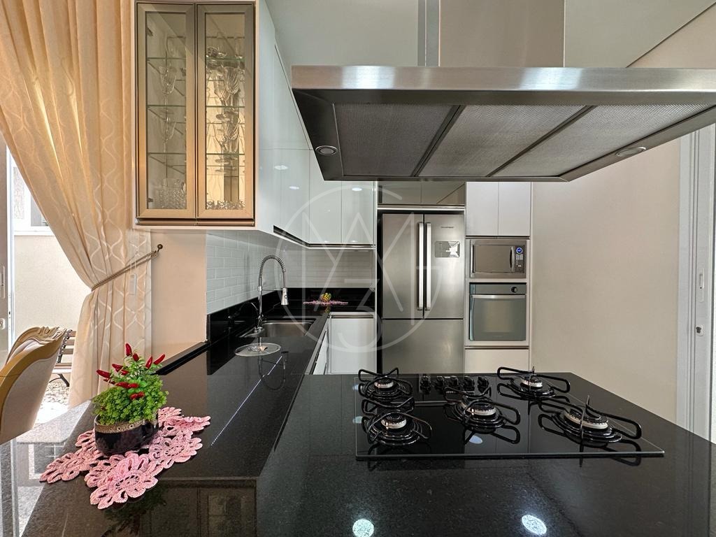 Casa com pé direito duplo, possui 4 quartos, sendo 3 no pavimento térreo e 1 suíte master no piso superior. Escritório, lavabo, cozinha americana, sala espaçosa para 2 ambientes.