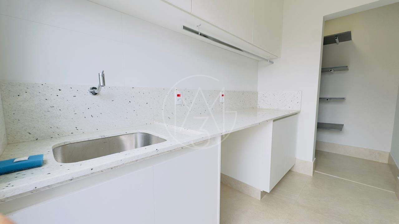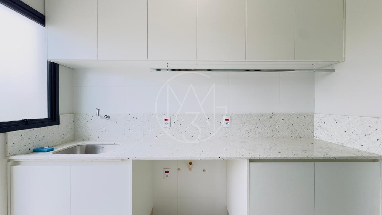 Cozinha completa com cooktop, coifa, forno e microondas e e área de serviço.