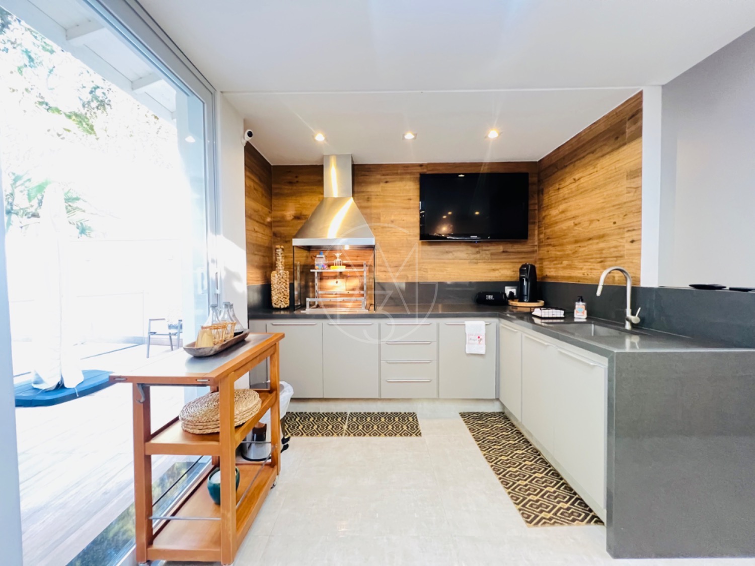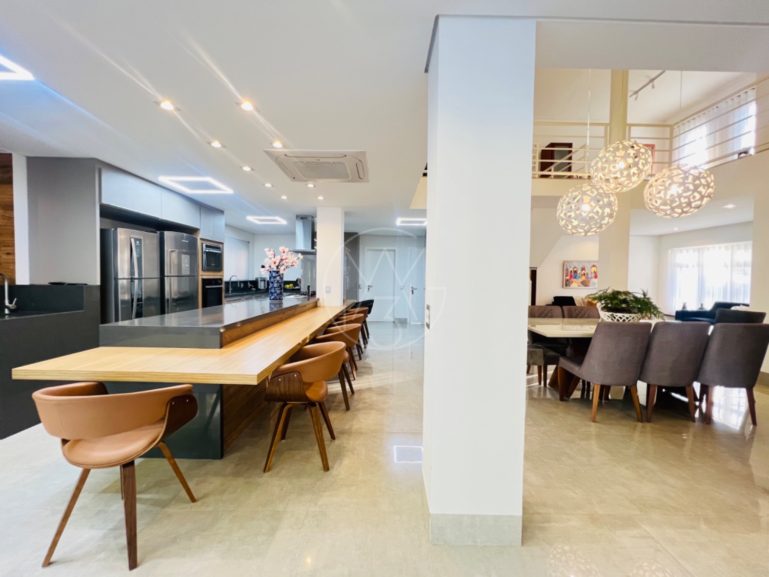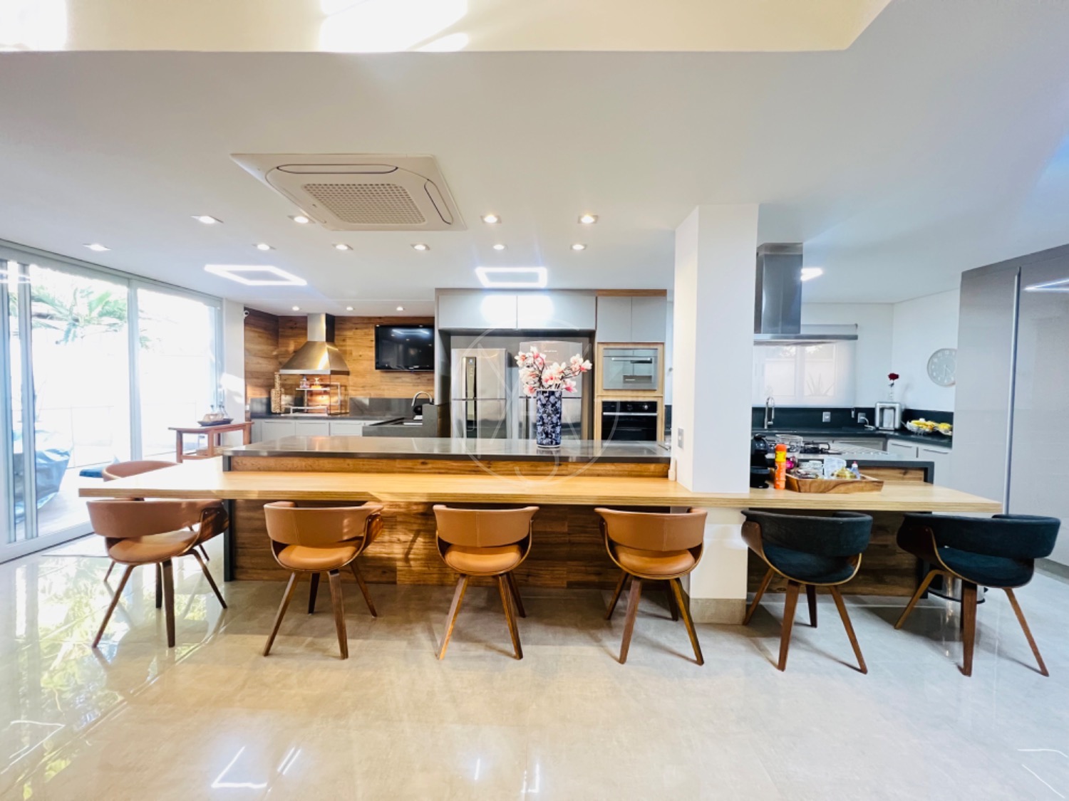 Área social possui sala de estar, jantar intregrada a cozinha e área gourmet, amplo quintal com piscina aquecida.