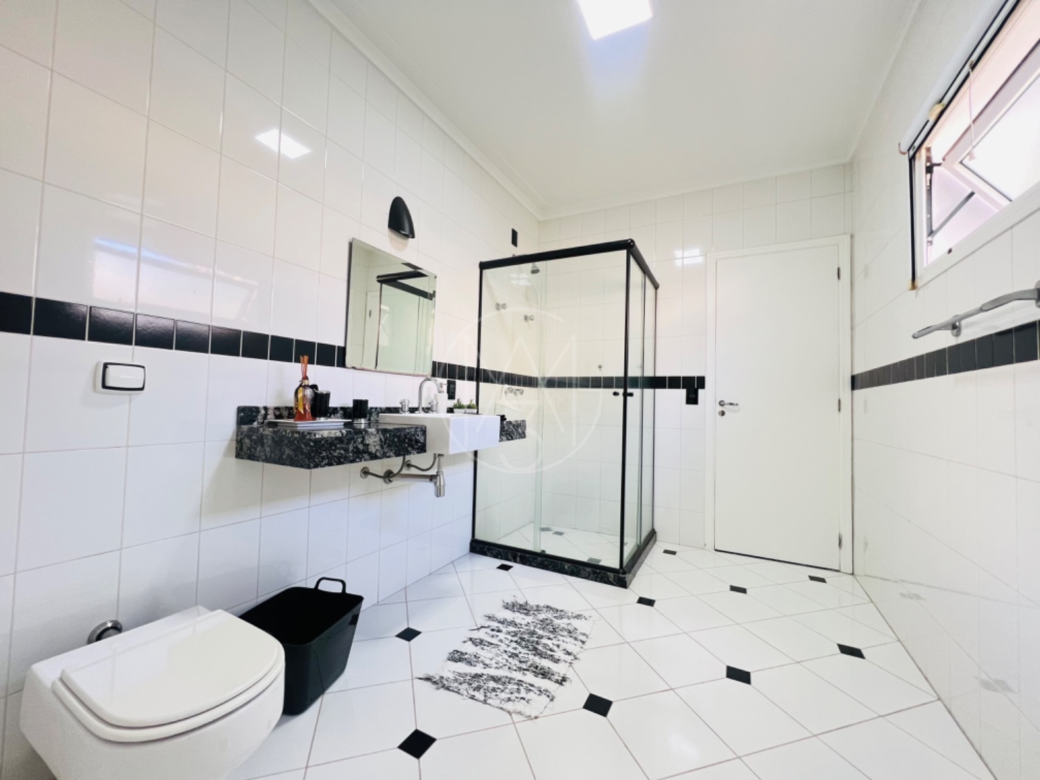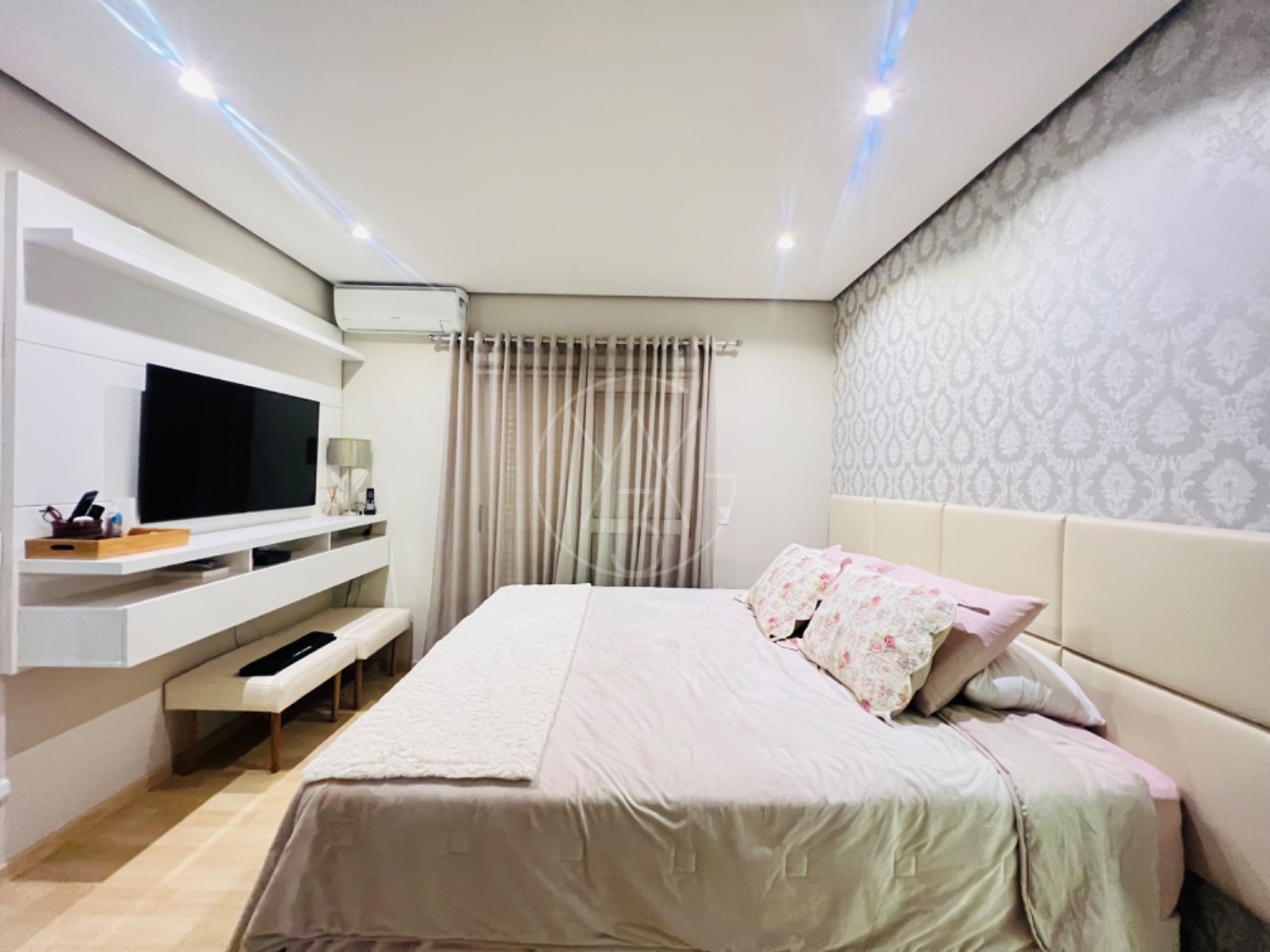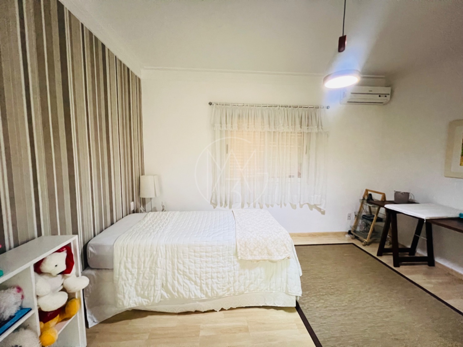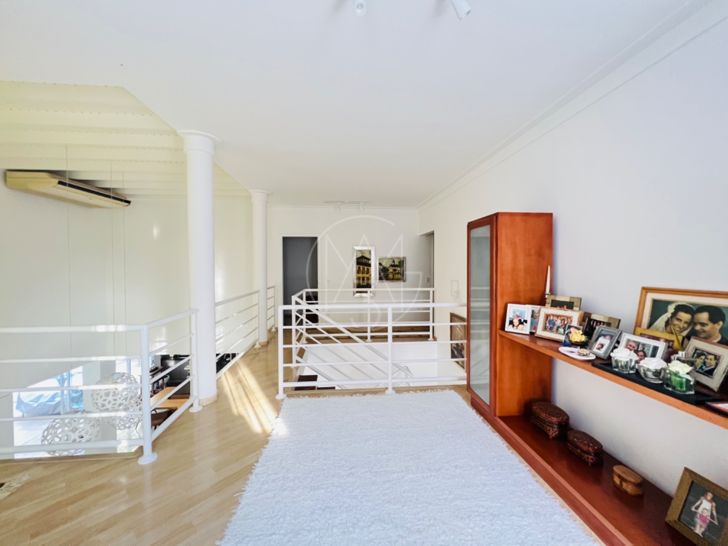 No piso superior, escritório com aparelho de ar condicionado, e são 03 suítes todas com closet.