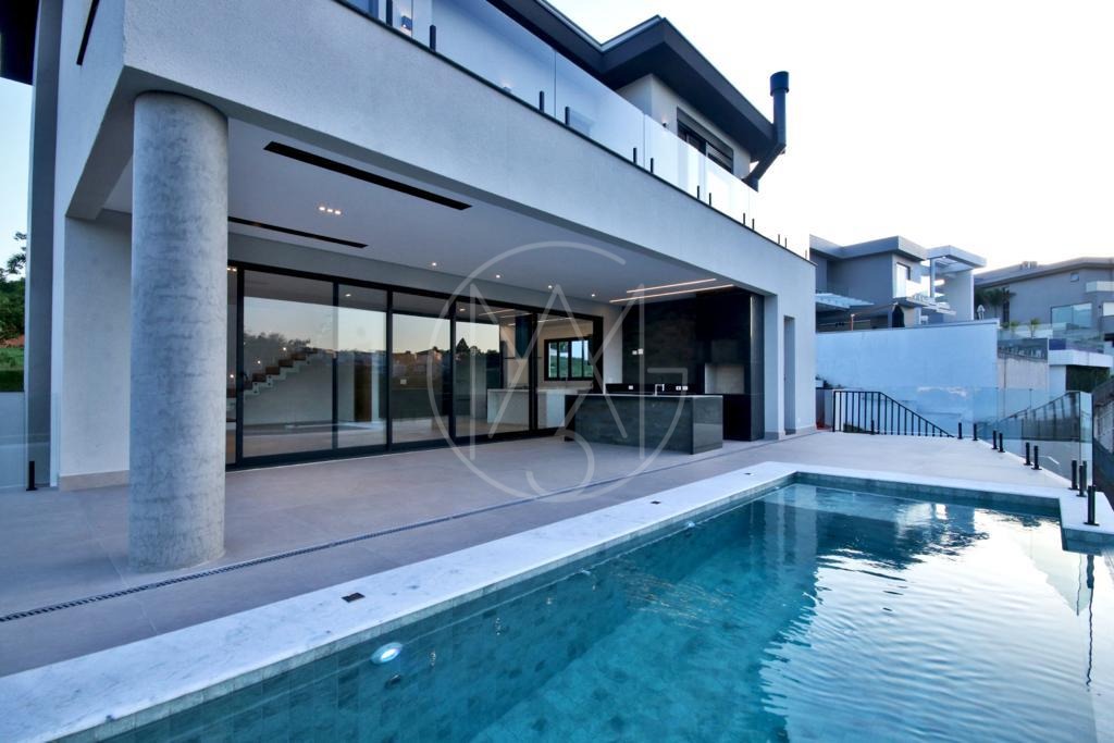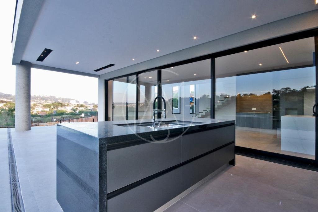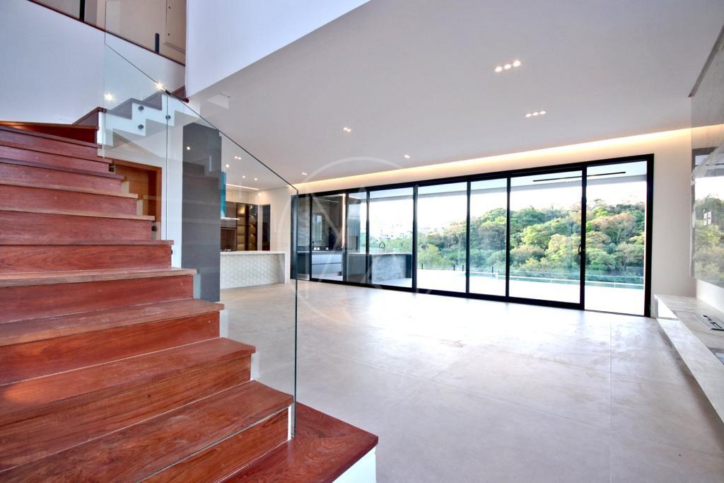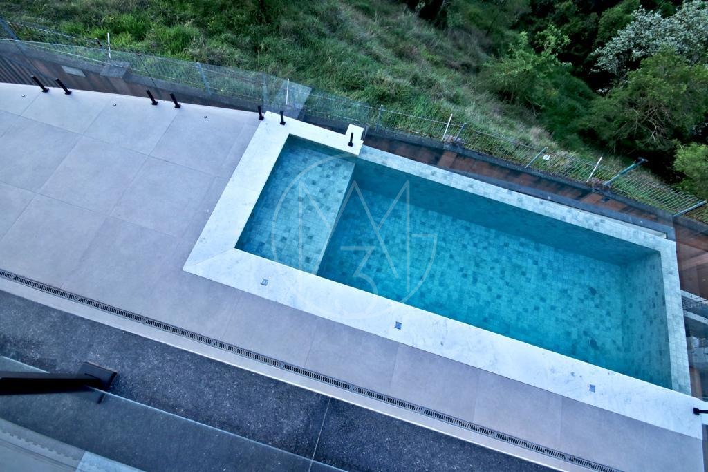Piscina com borda infinita com vista permanente para a mata preservada , garagem, e depósito no sub- solo.