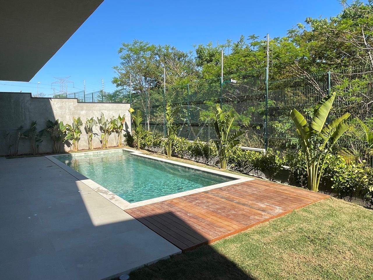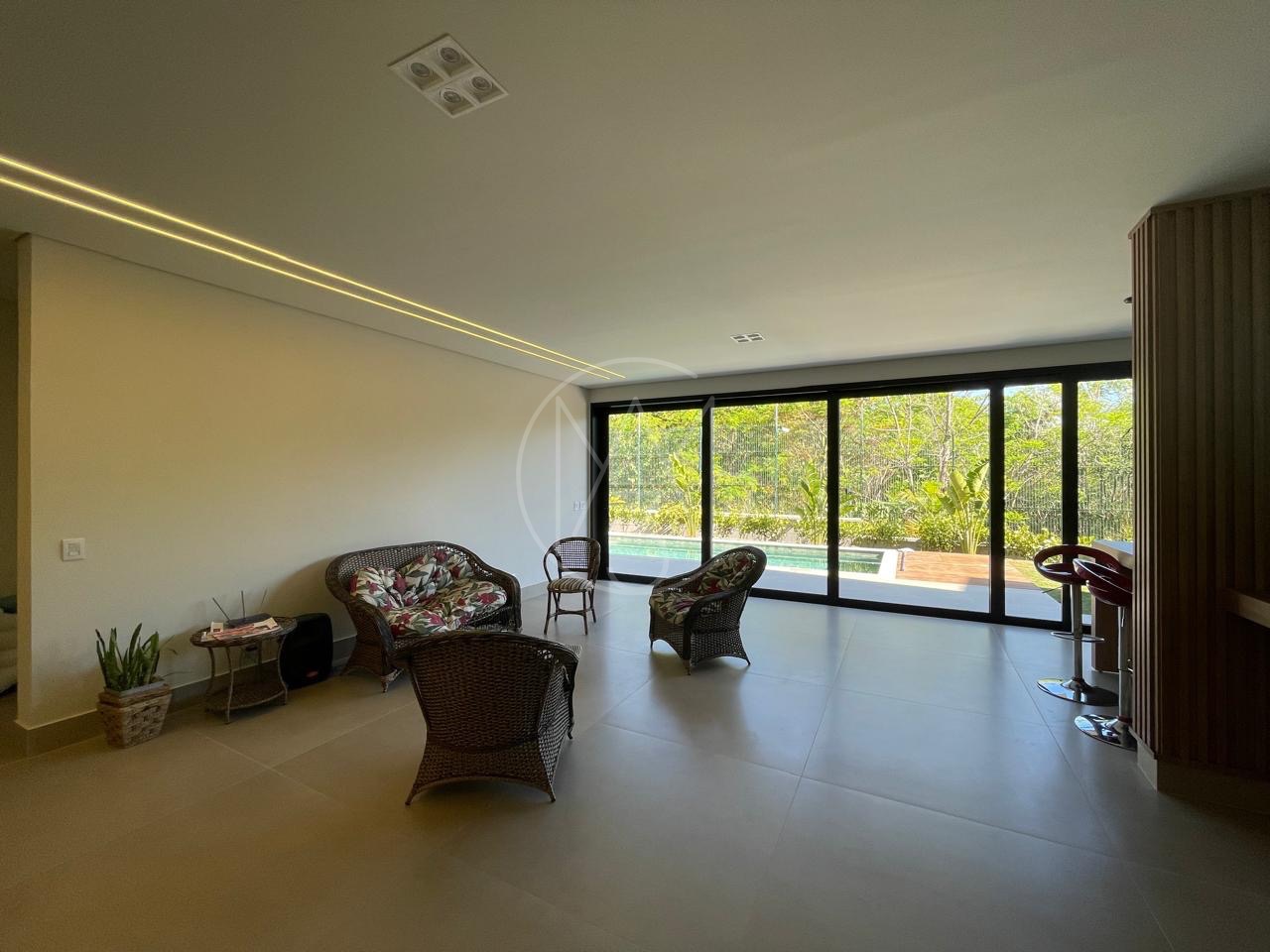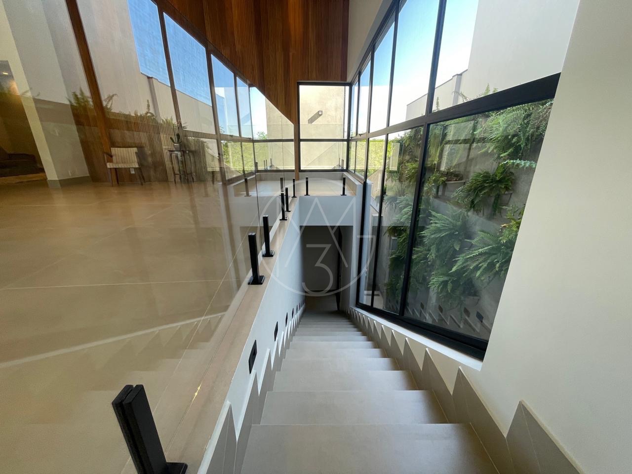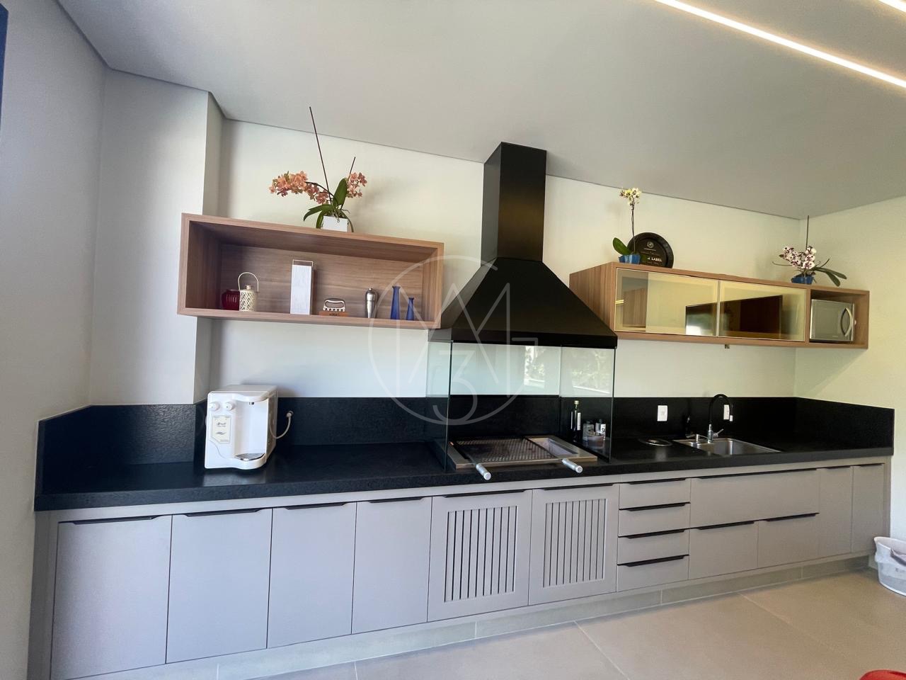 Cozinha com torneira monocomando docol, ilha e pia em mármore calacato. Área de serviço com uma grande pia e bancada. No pavimento inferior, um espaço gourmet amplo com ilha e churrasqueira, além de um espaço aconchegante para uma sala, mesa de sinuca etc.. Quarto para visitas com suíte. Tudo isso com uma vista exclusiva para mata nativa do Alphaville e uma piscina generosa com acabamento em pastilha verde. Na lateral da casa temos ainda um quarto/escritório com entrada totalmente exclusiva. Pela outra lateral a direita da casa os convidados tem acesso para área gourmet tanto pela escada interna, quanto externa.