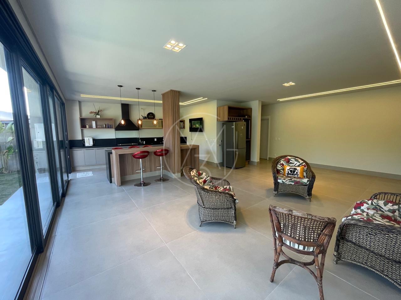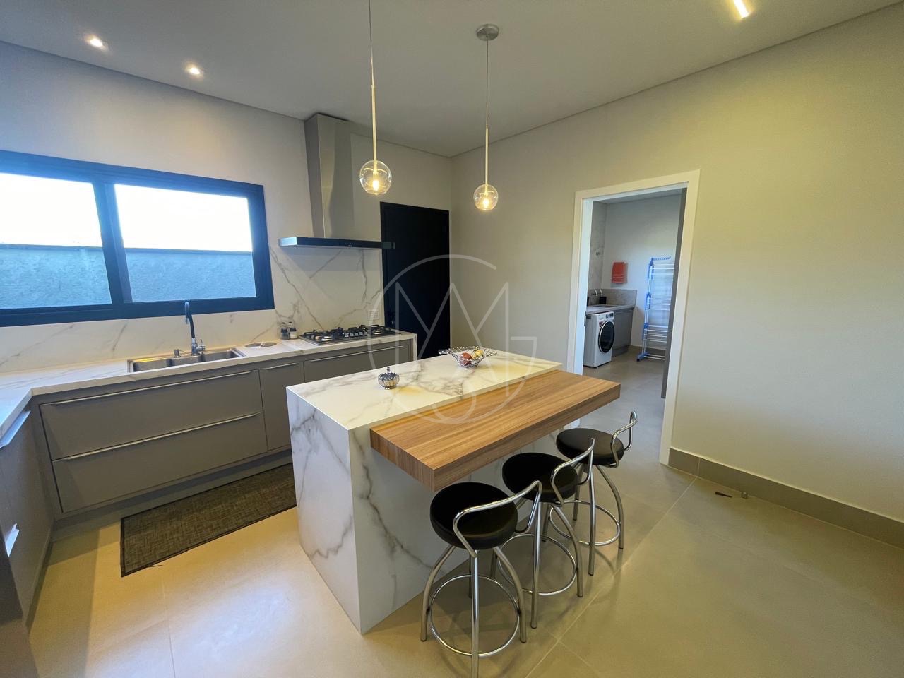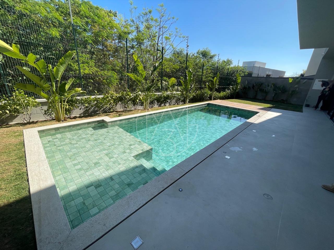 Cozinha com torneira monocomando docol, ilha e pia em mármore calacato. Área de serviço com uma grande pia e bancada. No pavimento inferior, um espaço gourmet amplo com ilha e churrasqueira, além de um espaço aconchegante para uma sala, mesa de sinuca etc.. Quarto para visitas com suíte. Tudo isso com uma vista exclusiva para mata nativa do Alphaville e uma piscina generosa com acabamento em pastilha verde. Na lateral da casa temos ainda um quarto/escritório com entrada totalmente exclusiva. Pela outra lateral a direita da casa os convidados tem acesso para área gourmet tanto pela escada interna, quanto externa.