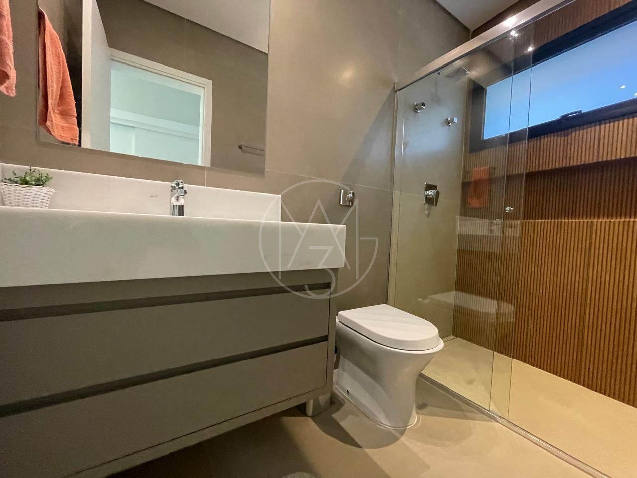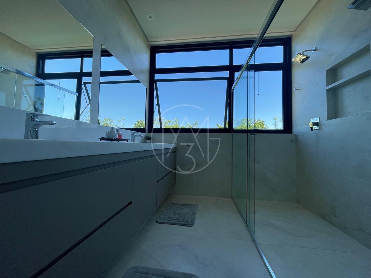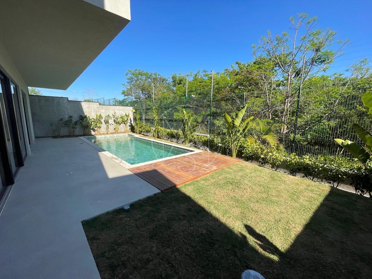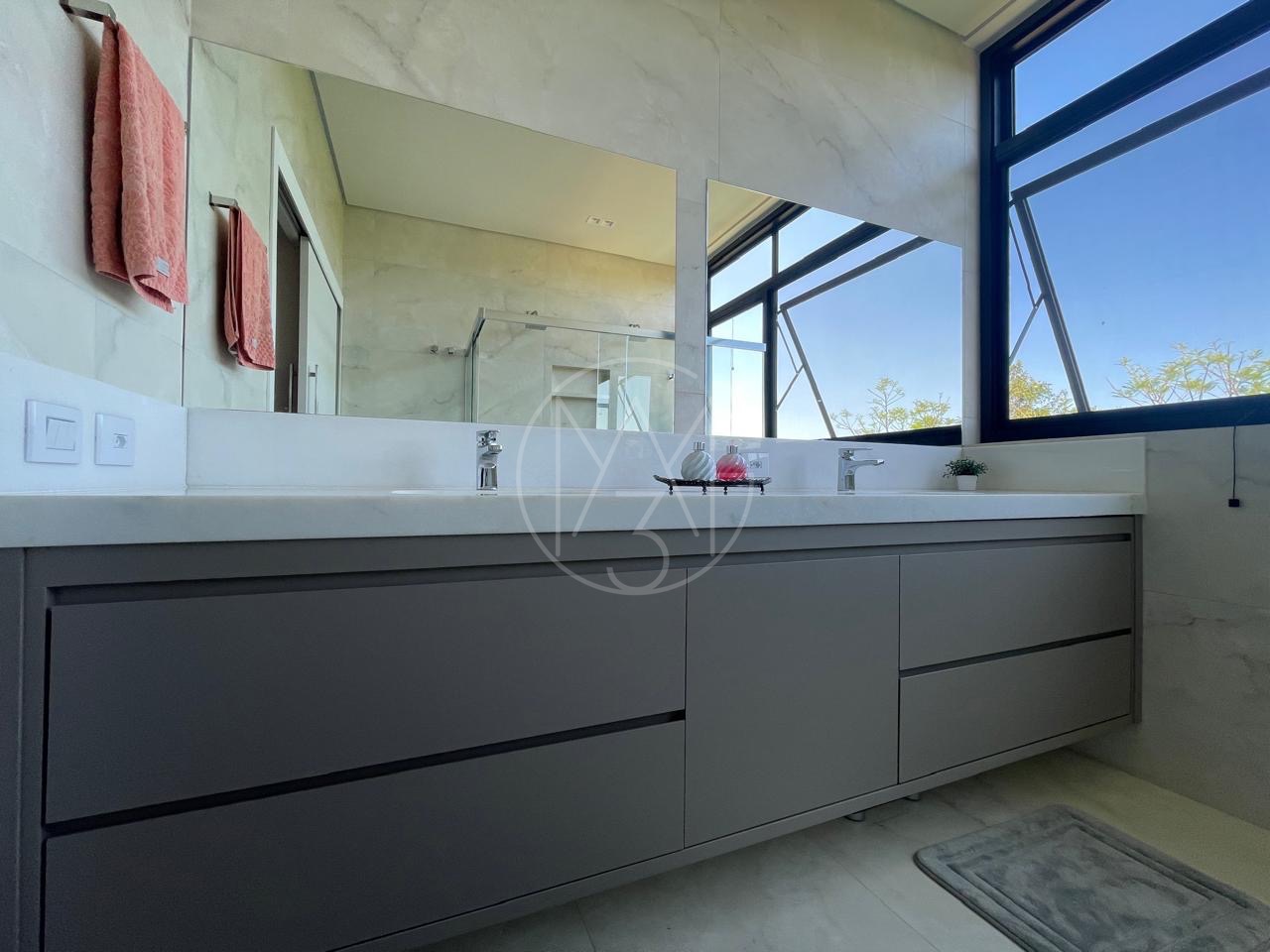 Cozinha com torneira monocomando docol, ilha e pia em mármore calacato. Área de serviço com uma grande pia e bancada. No pavimento inferior, um espaço gourmet amplo com ilha e churrasqueira, além de um espaço aconchegante para uma sala, mesa de sinuca etc.. Quarto para visitas com suíte. Tudo isso com uma vista exclusiva para mata nativa do Alphaville e uma piscina generosa com acabamento em pastilha verde. Na lateral da casa temos ainda um quarto/escritório com entrada totalmente exclusiva. Pela outra lateral a direita da casa os convidados tem acesso para área gourmet tanto pela escada interna, quanto externa.