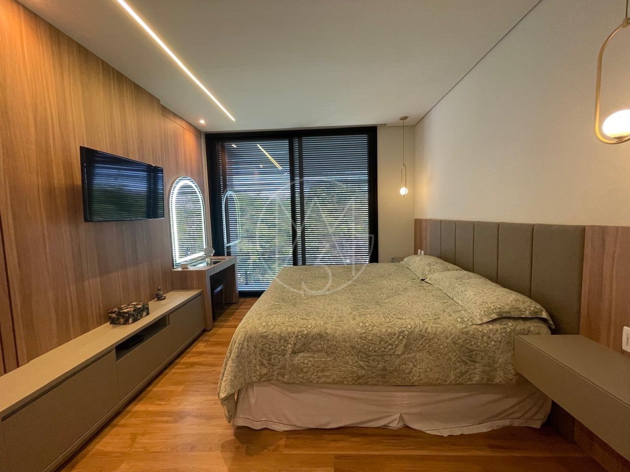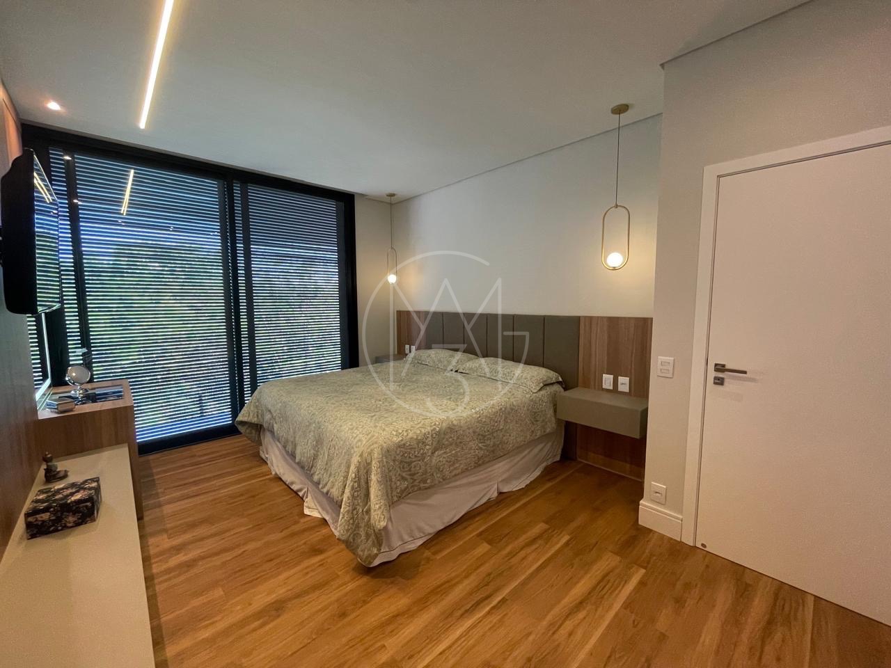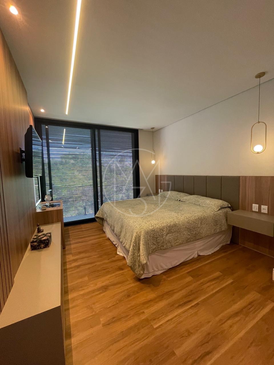 São 5 quartos no total, todas suítes sendo 3 no pavimento superior e 2 no inferior e total de 7 banheiros.