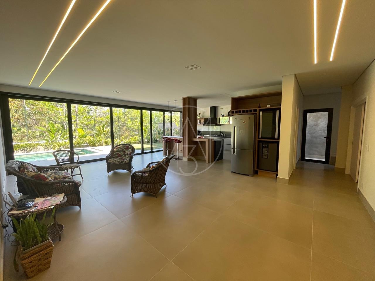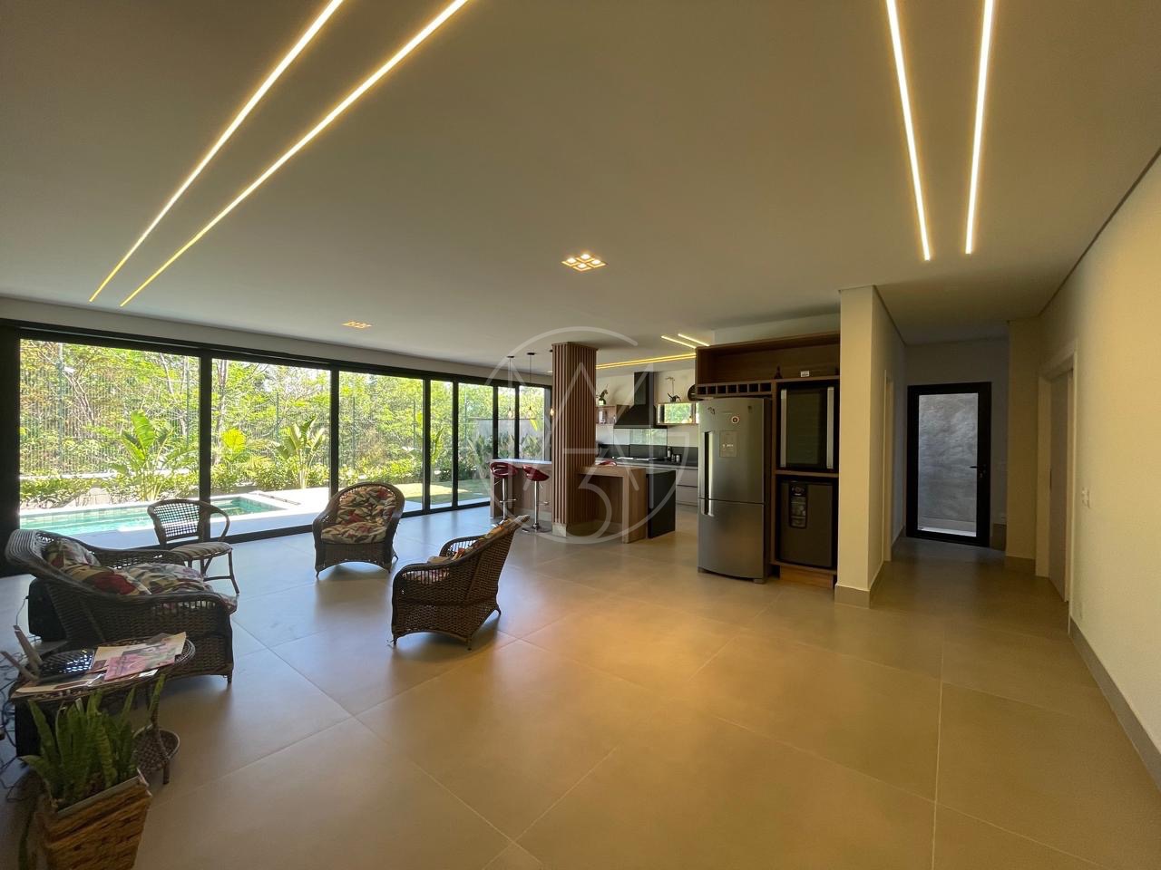 Projeto diferenciado idealizado pela renomada arquiteta Bárbara Di Mônaco. Toda parte funcional da casa no pavimento térreo, com esquadrias amplas, favorecendo a iluminação e ventilação (living, lavabo, cozinha, área de serviço, sala íntima, e 3 lindas suítes com banheiros amplos e vista para mata.