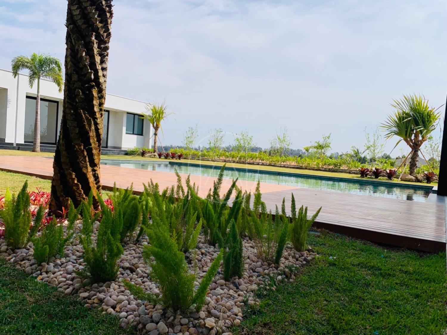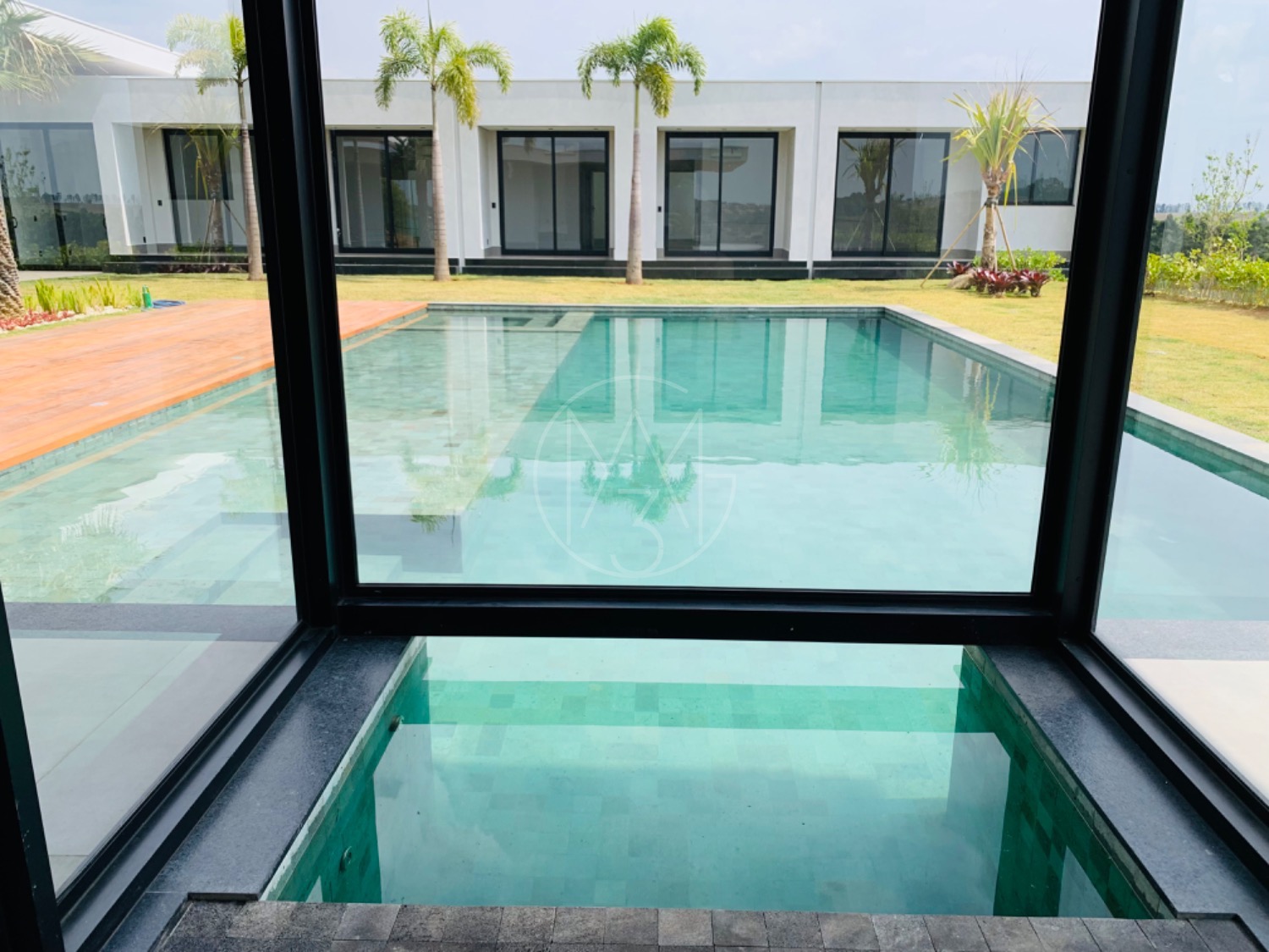 Um projeto fantástico por Igor Guerra, exala conforto e bom gosto em uma mansão térrea que comporta ambientes na medida certa e conveniência integrada a toda área de lazer, onde destaca-se a belíssima piscina com borda infinita e a aconchegante praça de fogo, além do belíssimo jardim com paisagismo incrível, deck com varanda gourmet completa e sauna.