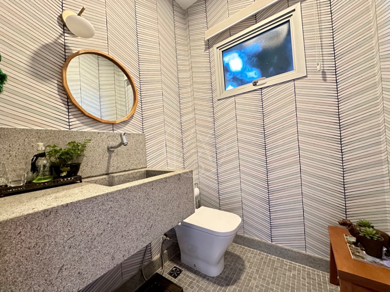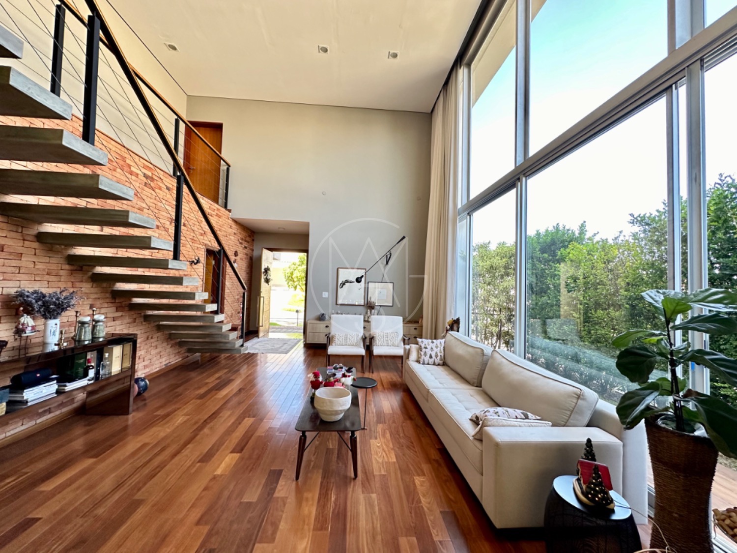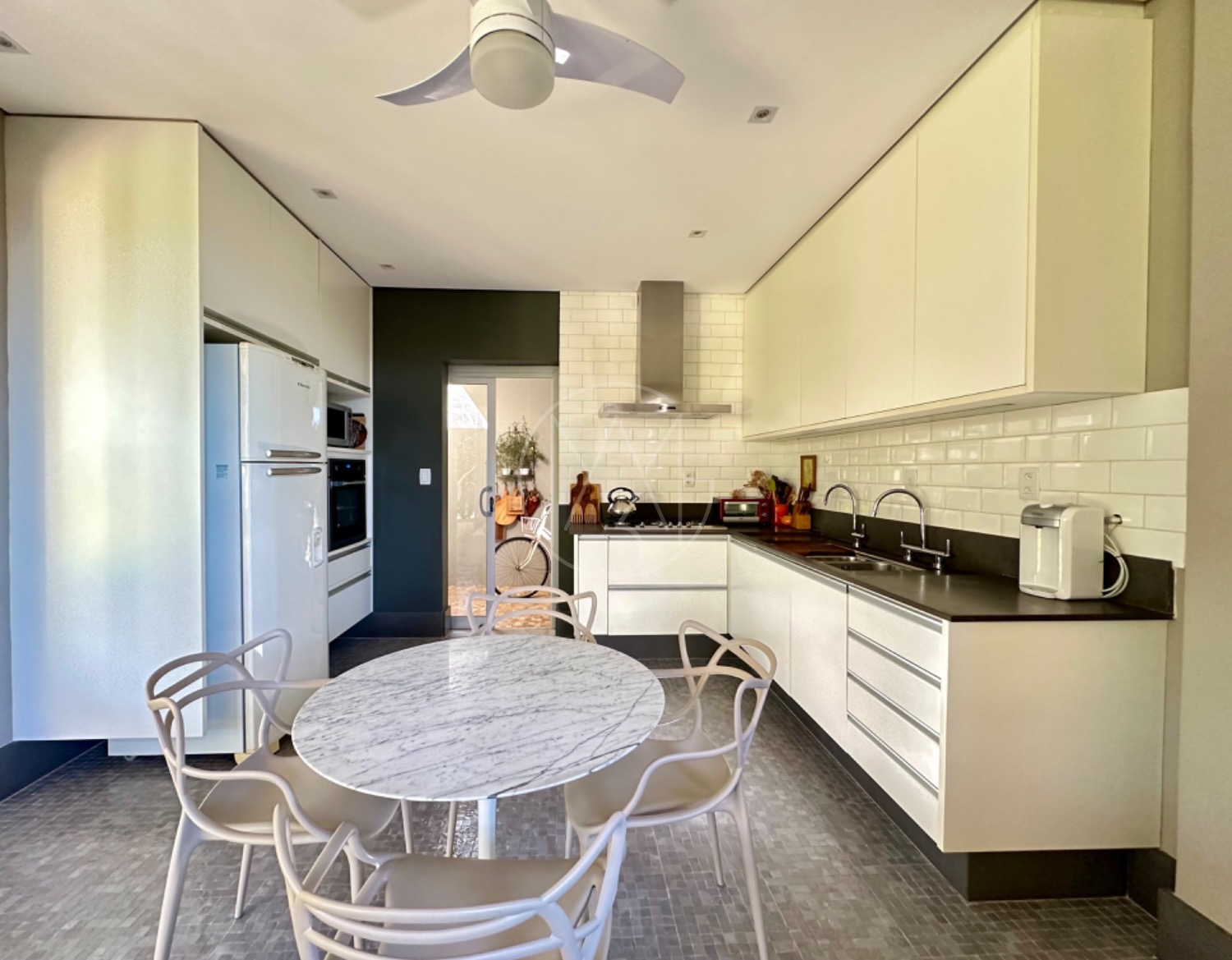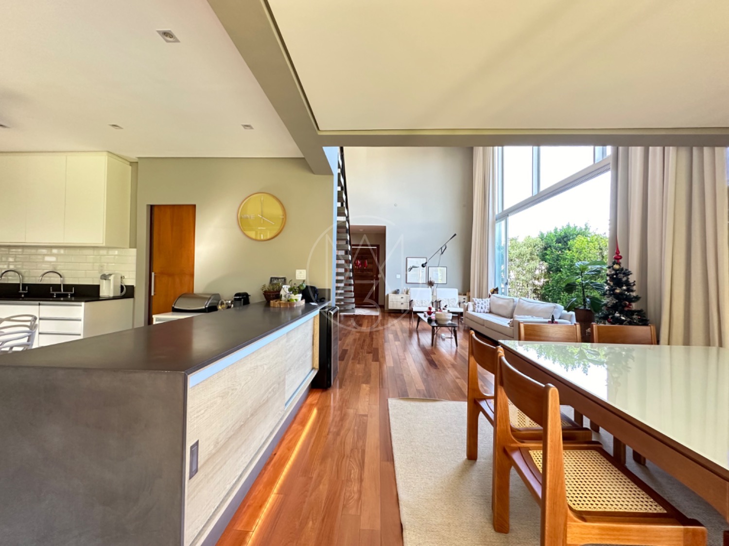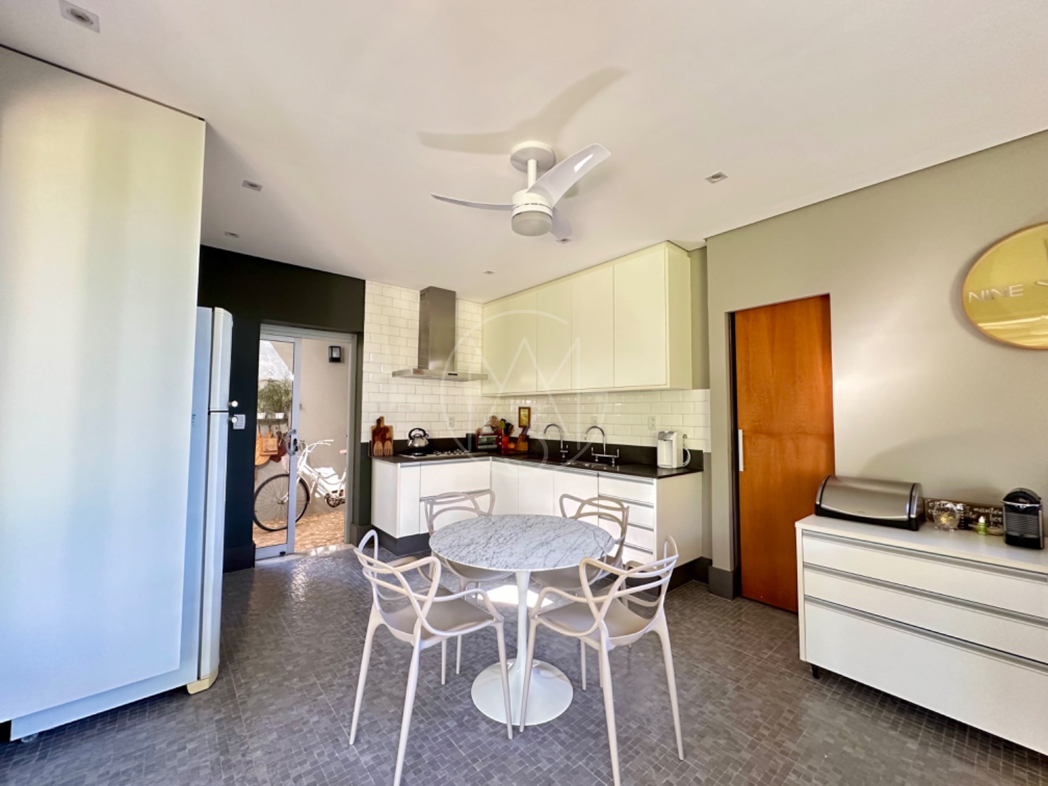 Ao adentrar nesta casa, é impossível não se impressionar com a sala espaçosa e bem iluminada, com um pé direito duplo que traz uma sensação de grandiosidade. Destaque para a parede de tijolinhos que traz conforto e um um charme especial ao ambiente. O piso Indusparquet e as esquadrias de alta qualidade, evidenciam a preocupação da proprietária em oferecer uma construção de alto padrão.