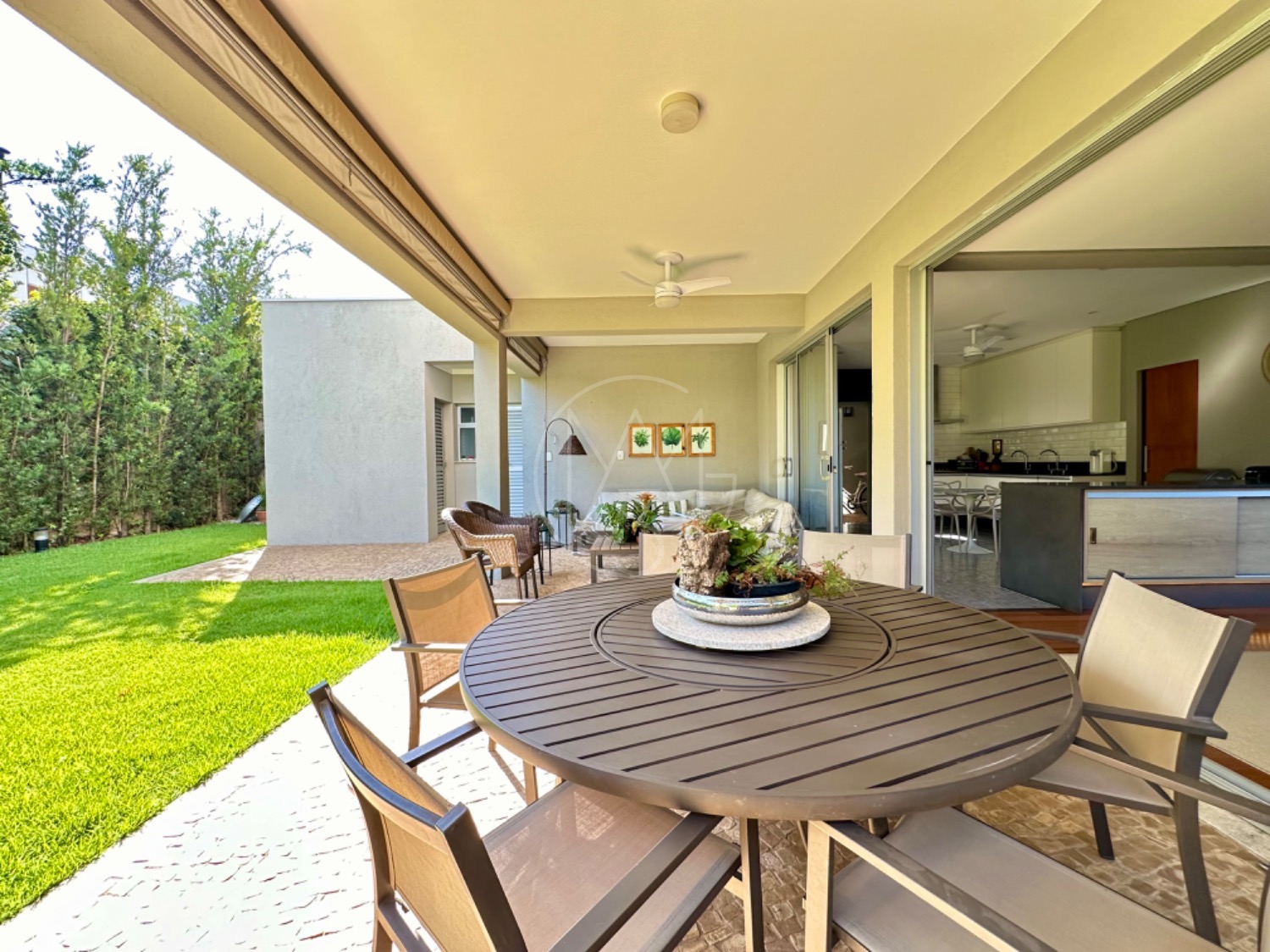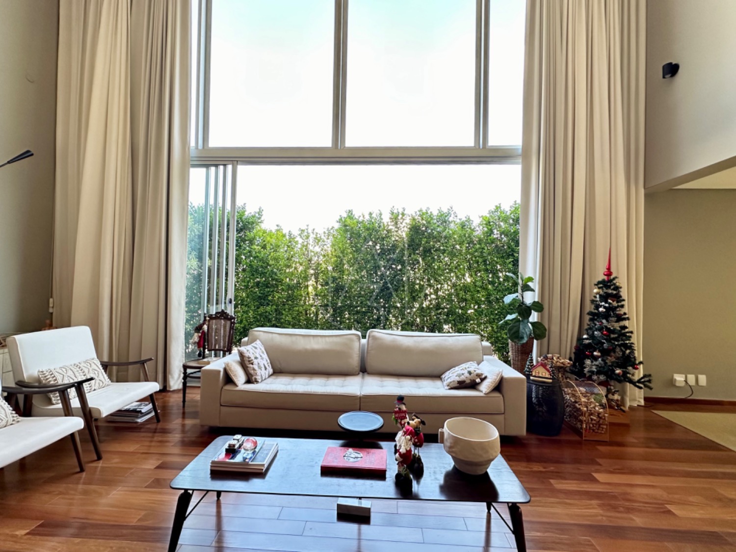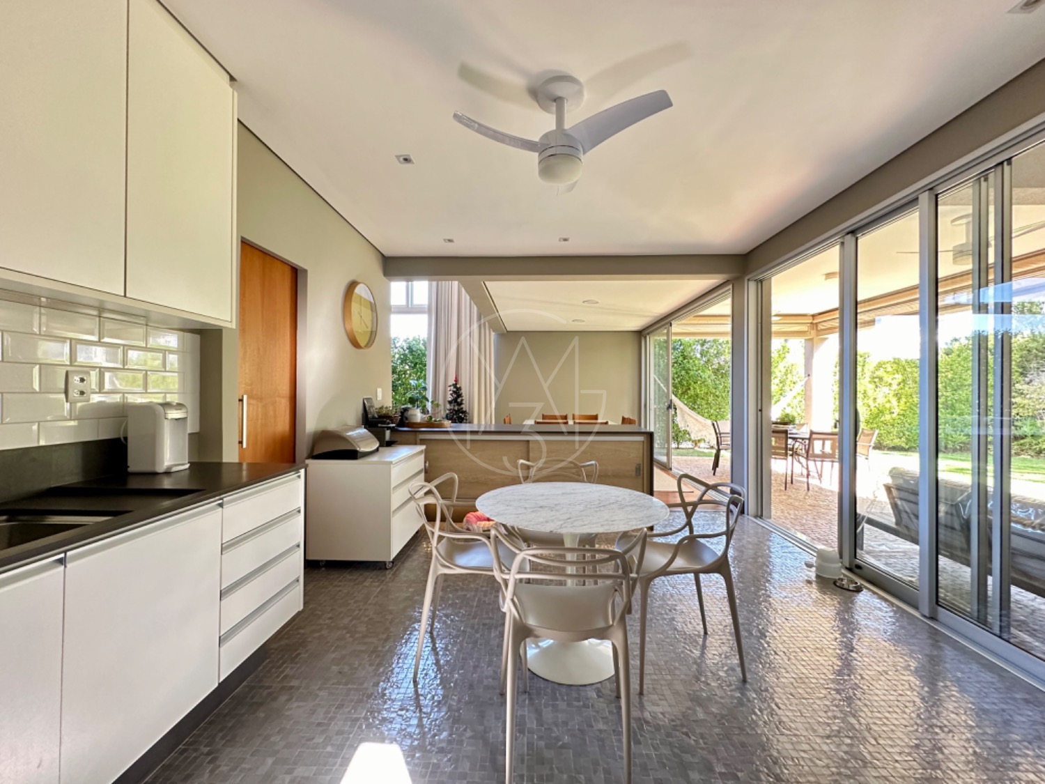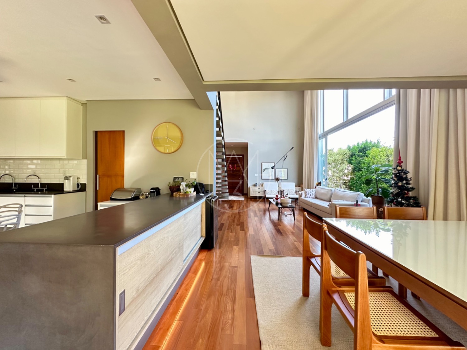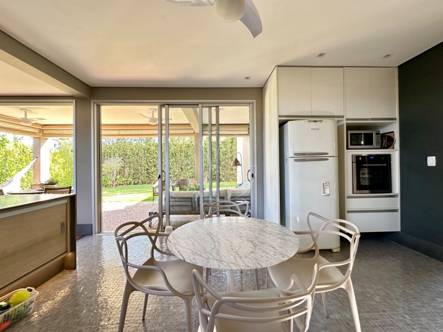 Ao adentrar nesta casa, é impossível não se impressionar com a sala espaçosa e bem iluminada, com um pé direito duplo que traz uma sensação de grandiosidade. Destaque para a parede de tijolinhos que traz conforto e um um charme especial ao ambiente. O piso Indusparquet e as esquadrias de alta qualidade, evidenciam a preocupação da proprietária em oferecer uma construção de alto padrão.