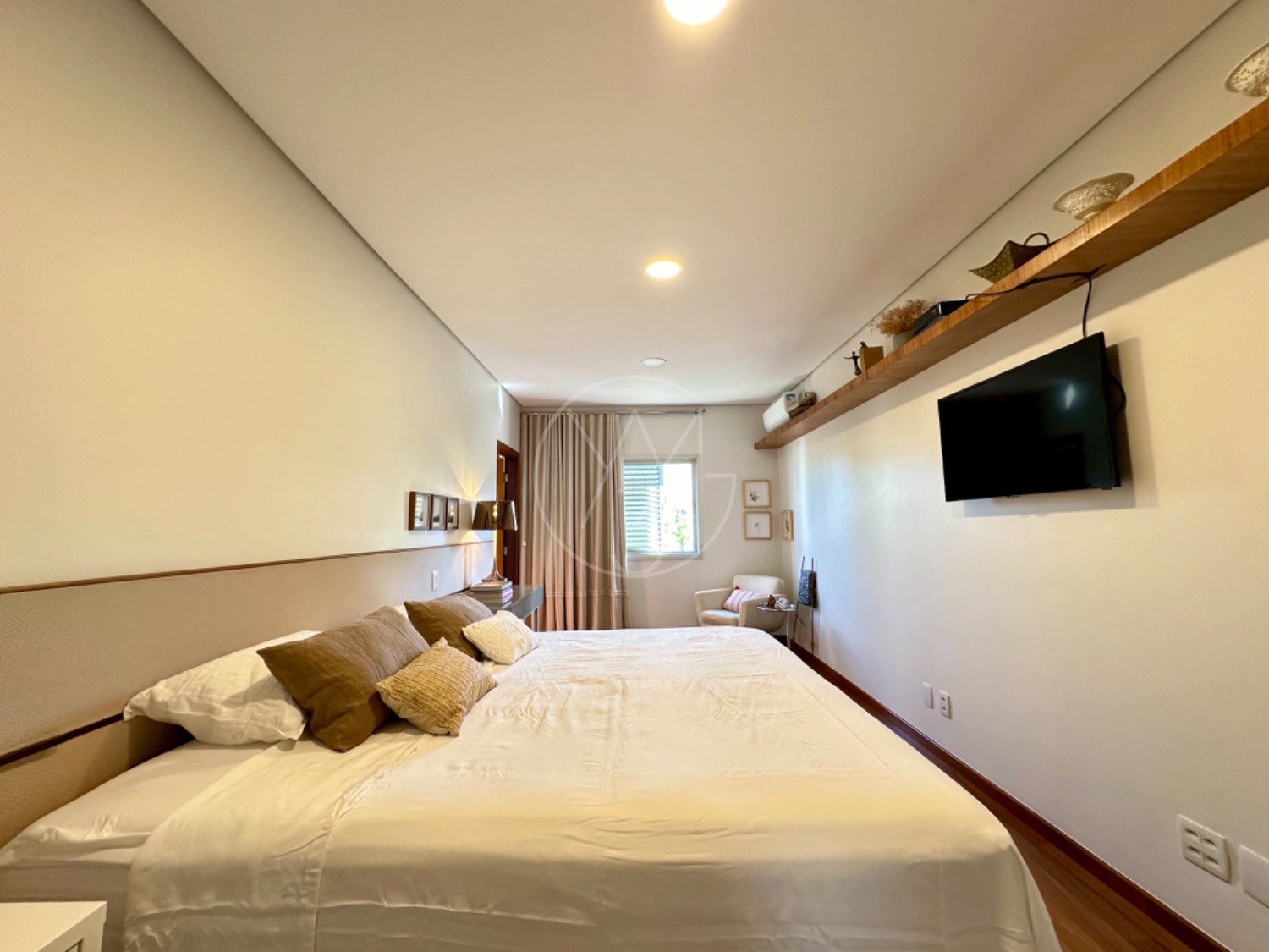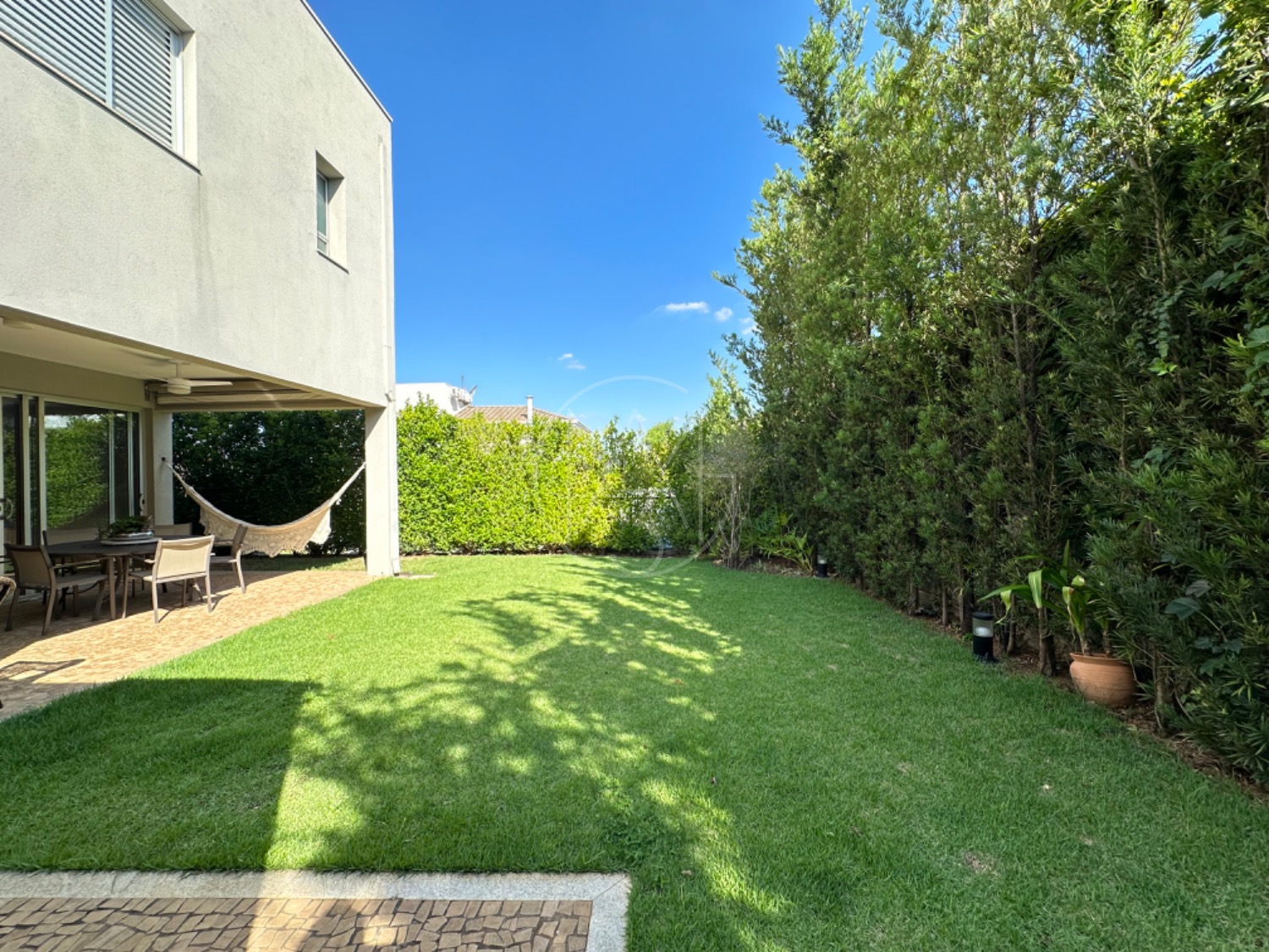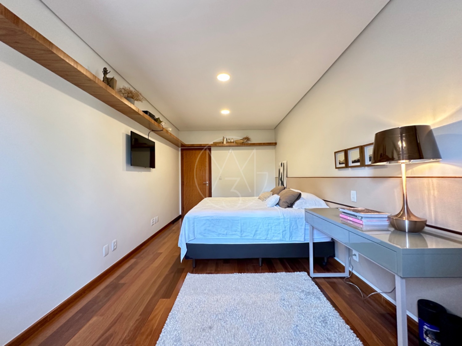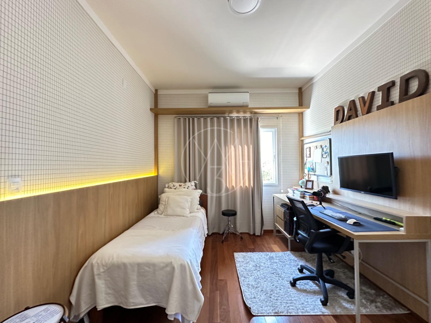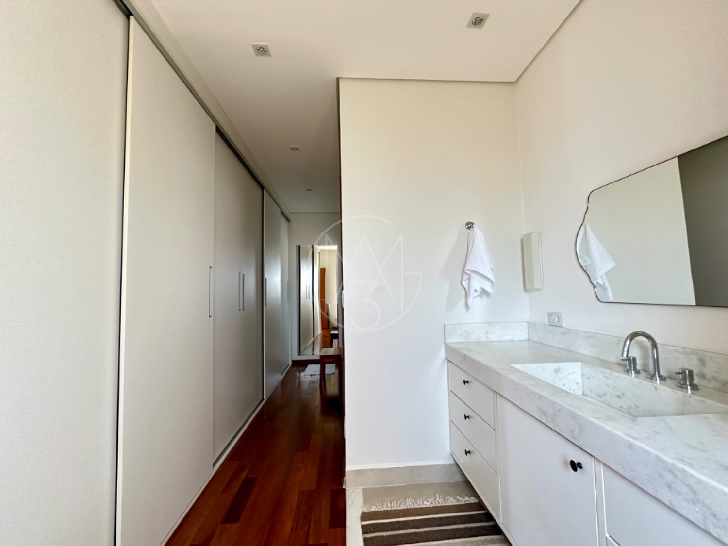 Ao adentrar nesta casa, é impossível não se impressionar com a sala espaçosa e bem iluminada, com um pé direito duplo que traz uma sensação de grandiosidade. Destaque para a parede de tijolinhos que traz conforto e um um charme especial ao ambiente. O piso Indusparquet e as esquadrias de alta qualidade, evidenciam a preocupação da proprietária em oferecer uma construção de alto padrão.