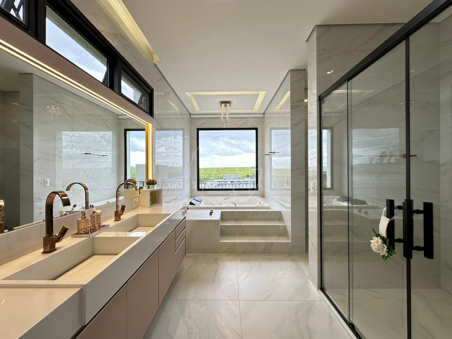 Sobrado novo com 4 suítes sendo 01 master, com closet e banheira de hidro com uma vista surreal, sala TV acoplada com copa no Pavimento Superior.