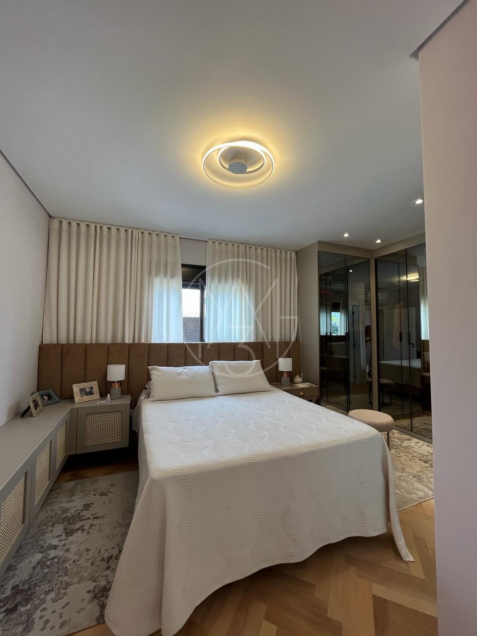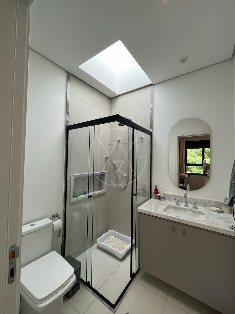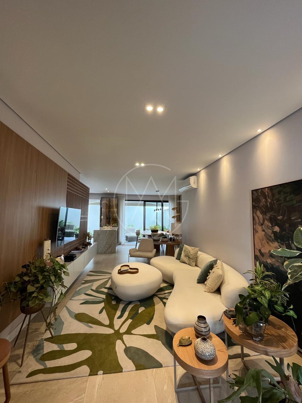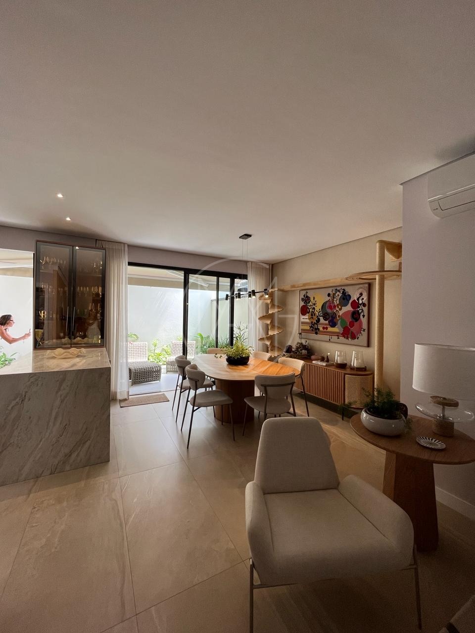 Casa em condomínio com excelente padrão de construção, com 200 m², amplo living para 2 ambientes, lavabo, 3 dormitórios suíte com sala íntima, cozinha, despensa, varanda gourmet, área de serviço com Wc, 4 vagas de garagem, infraestrutura para automação, infraestrutura para ar condicionado (sala e suítes), preparação para aquecimento a gás, suíte com dois pontos de chuveiros e duas cubas, janelas amplas com persianas de enrolar nas suítes, tomada para veículo elétrico, fechadura eletrônica, patinetes elétricos, Espaço Uber, Portaria Blindada. Lazer com piscina adulto e infantil, Deck molhado, Solarium, Espaço Gourmet com copa de apoio, Lounge, Playground, Fitness, Pomar. Em local privilegiado.