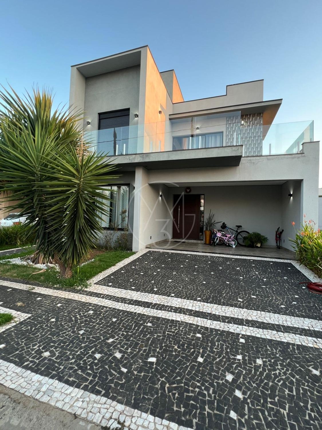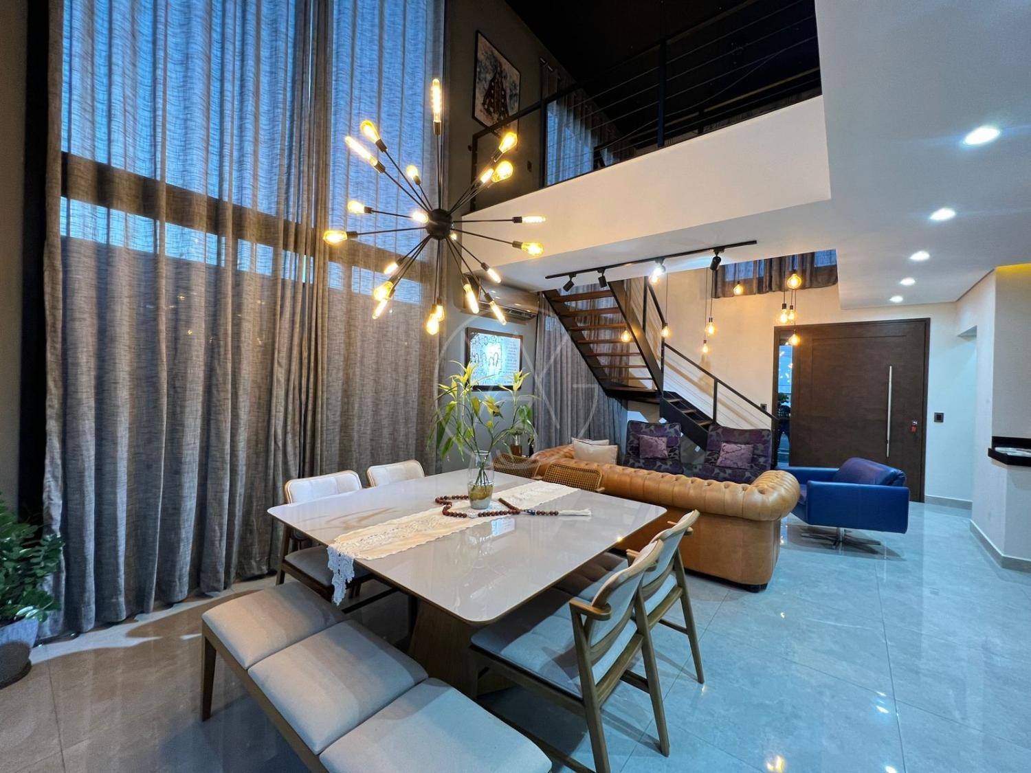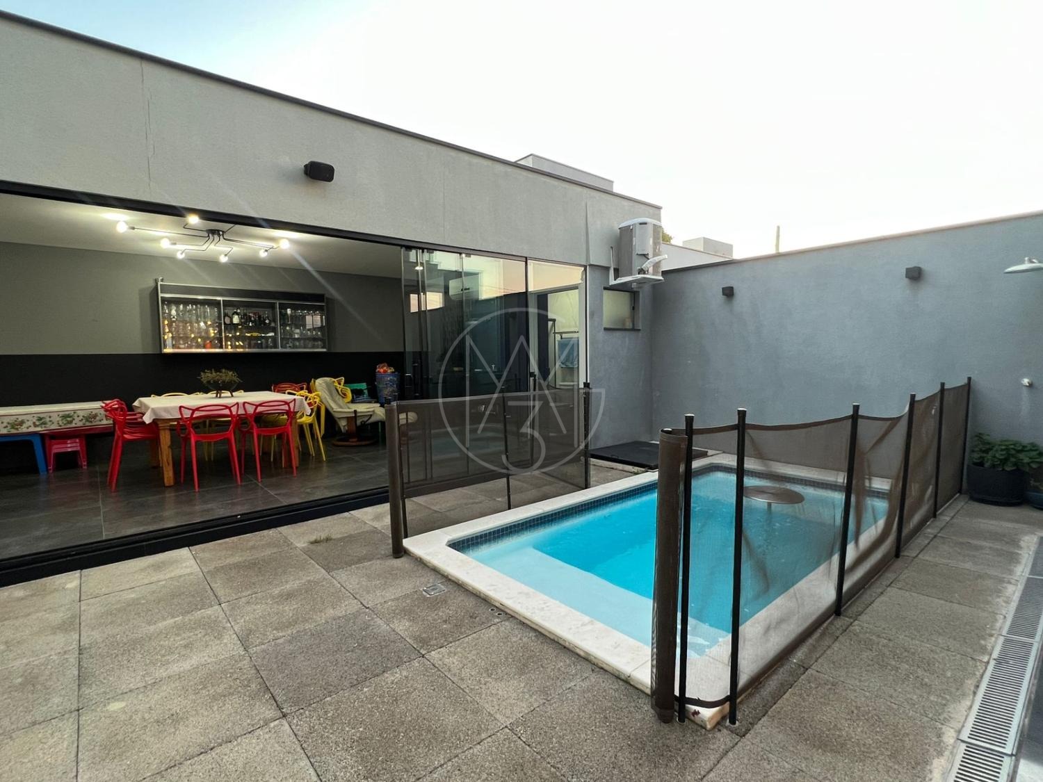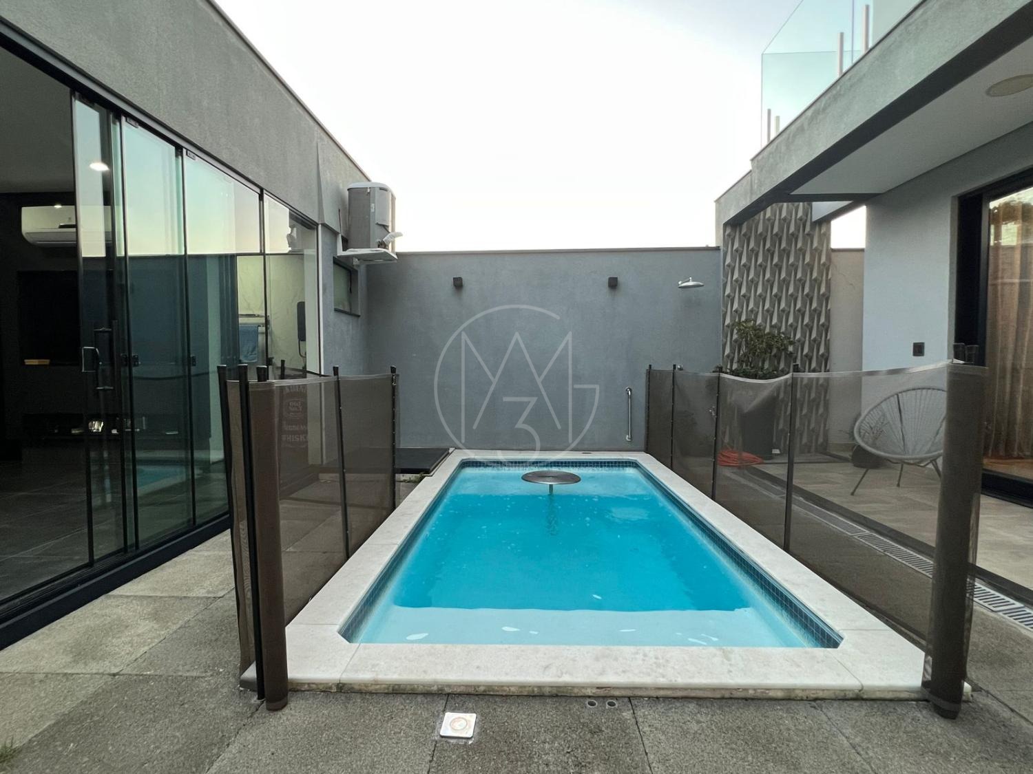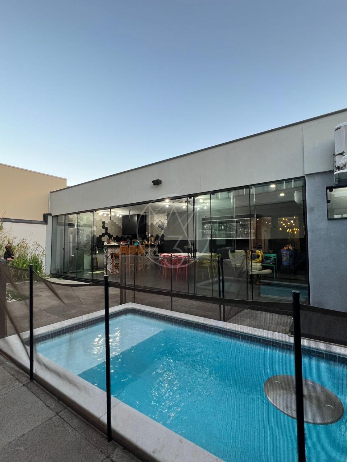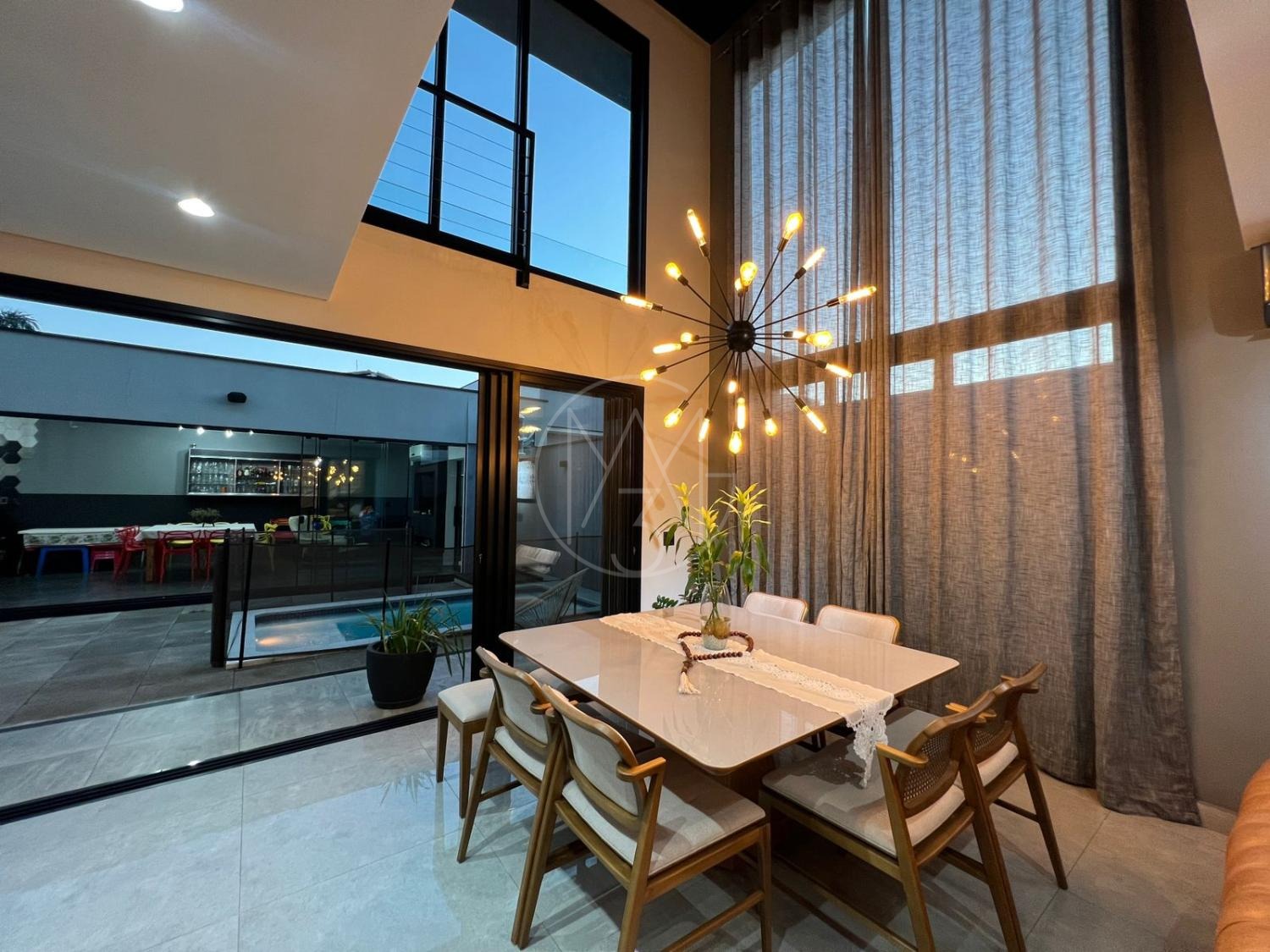 Sobrado com acabamentos diferenciado, 3 quartos, sendo 2 suites na parte superior. A suite master com closet e sacada. Na parte inferior quarto que esta sendo utilizado como sala de TV. Sala de estar e jantar com pé direito duplo, projeto de iluminação. Cozinha americana com eletrodomésticos Tramontina. Área Gourmet com piscina, equipada com churrasqueira, chopeira, cooktop, ar condicionado. Todos os ambientes da casa são climatizados. Possui Aquecimento Solar e Fotovoltaica. Casa com decoração de muito bom gosto.