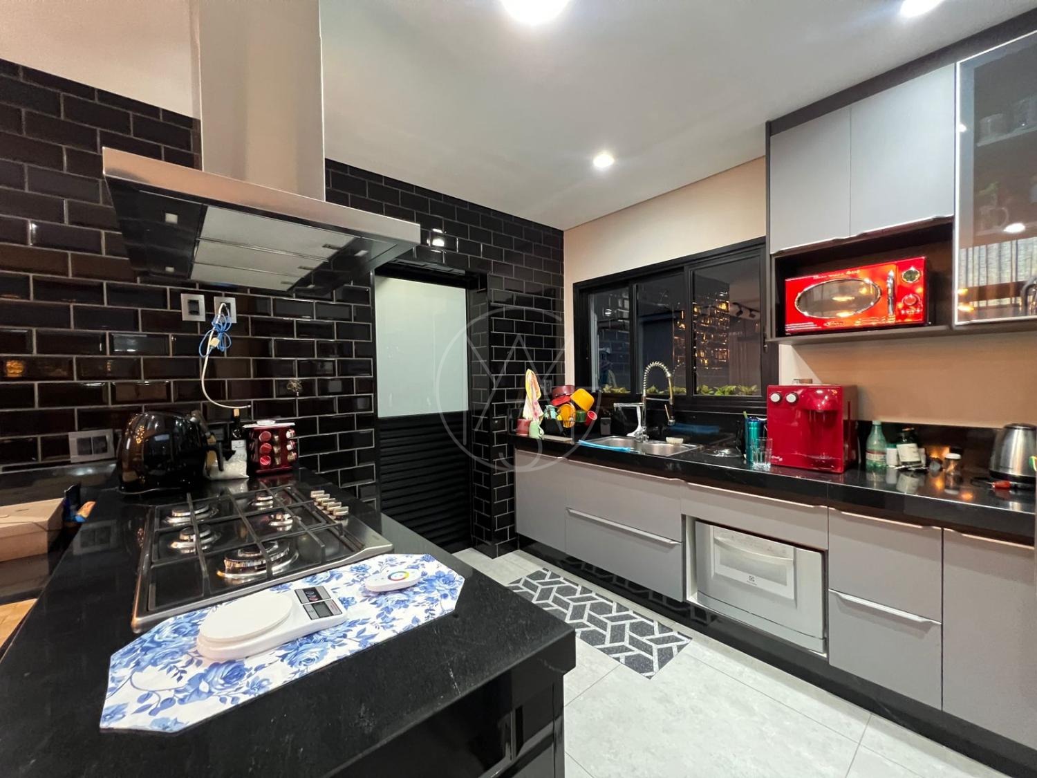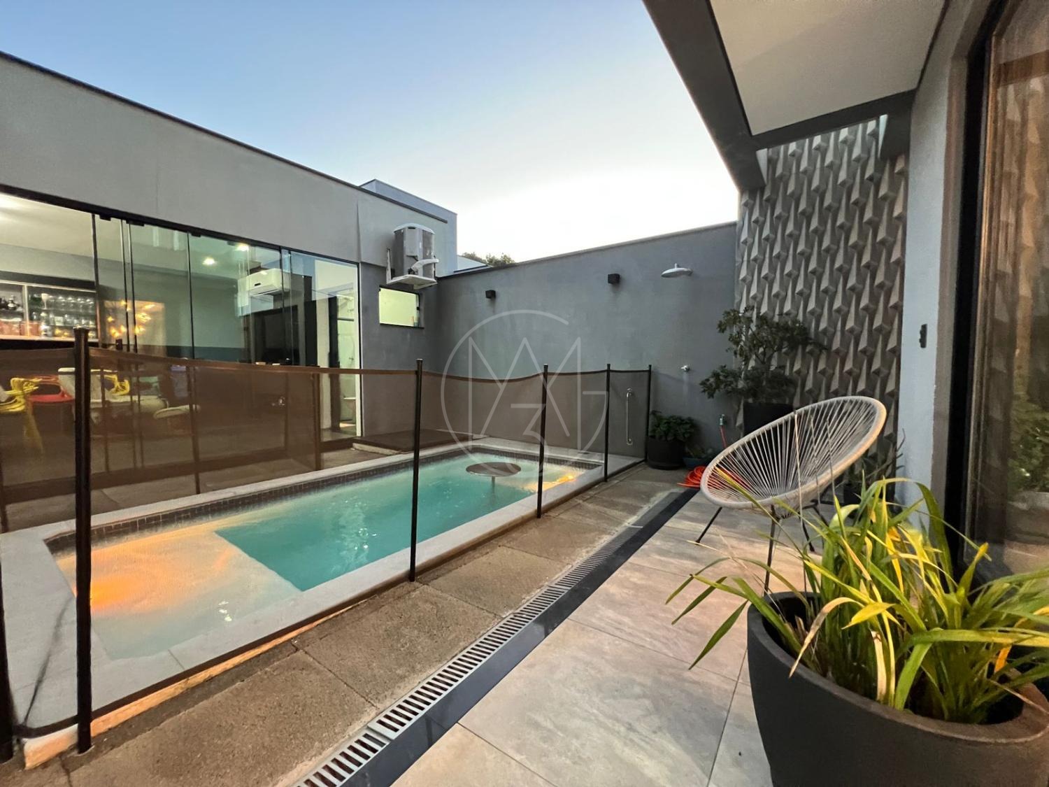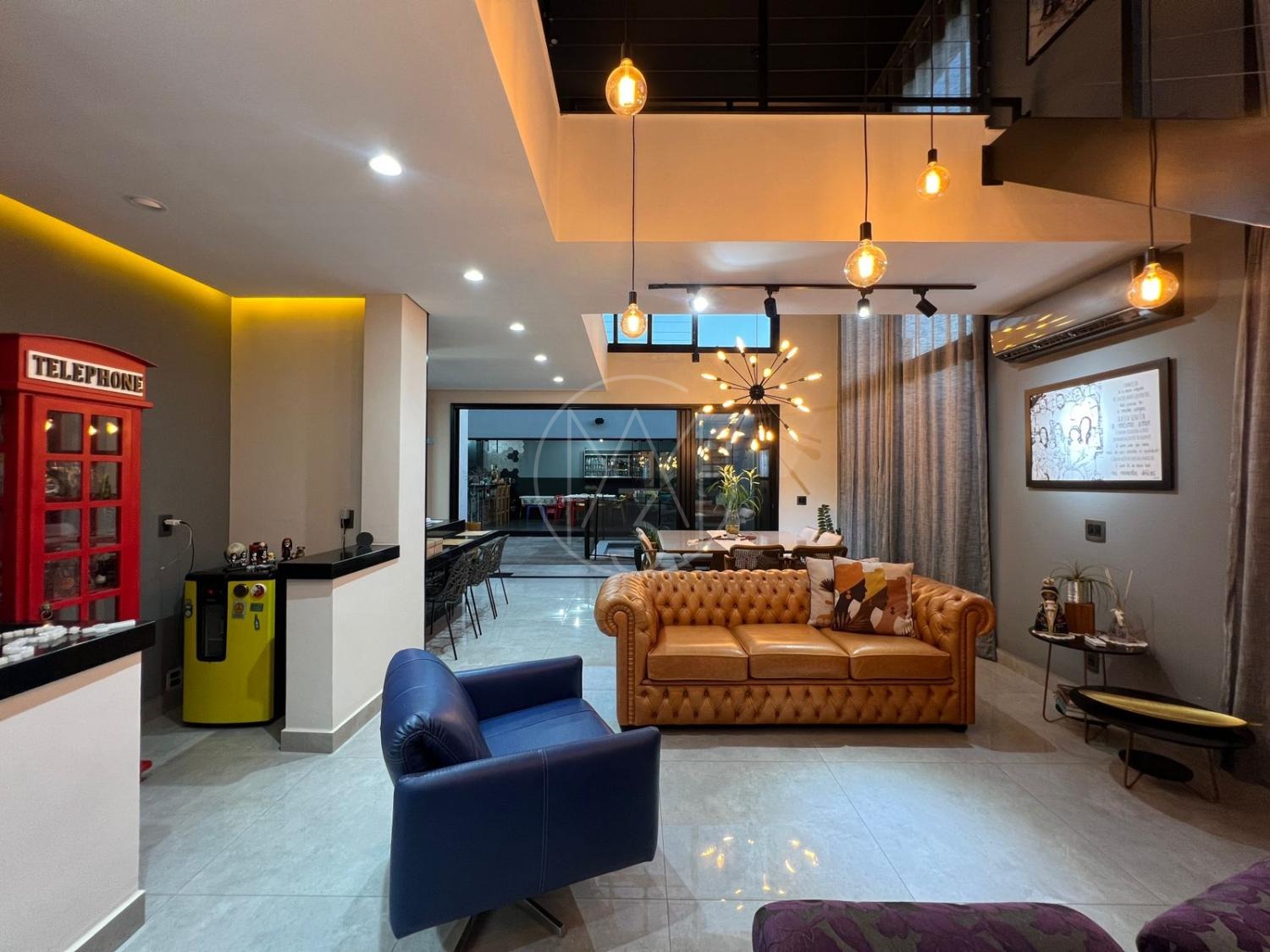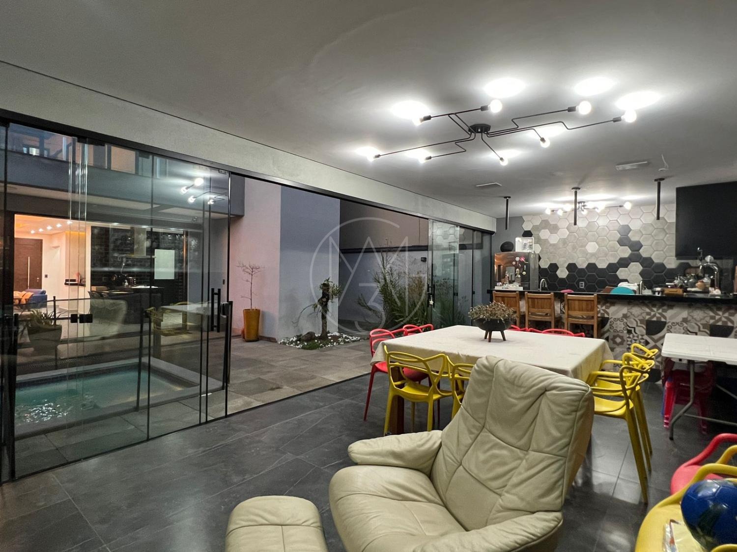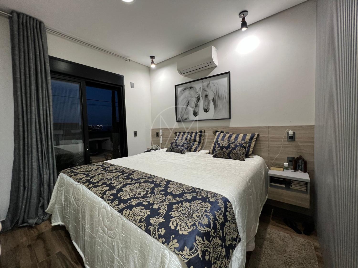 Sobrado com acabamentos diferenciado, 3 quartos, sendo 2 suites na parte superior. A suite master com closet e sacada. Na parte inferior quarto que esta sendo utilizado como sala de TV. Sala de estar e jantar com pé direito duplo, projeto de iluminação. Cozinha americana com eletrodomésticos Tramontina. Área Gourmet com piscina, equipada com churrasqueira, chopeira, cooktop, ar condicionado. Todos os ambientes da casa são climatizados. Possui Aquecimento Solar e Fotovoltaica. Casa com decoração de muito bom gosto.