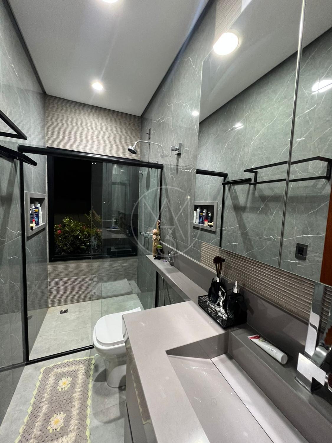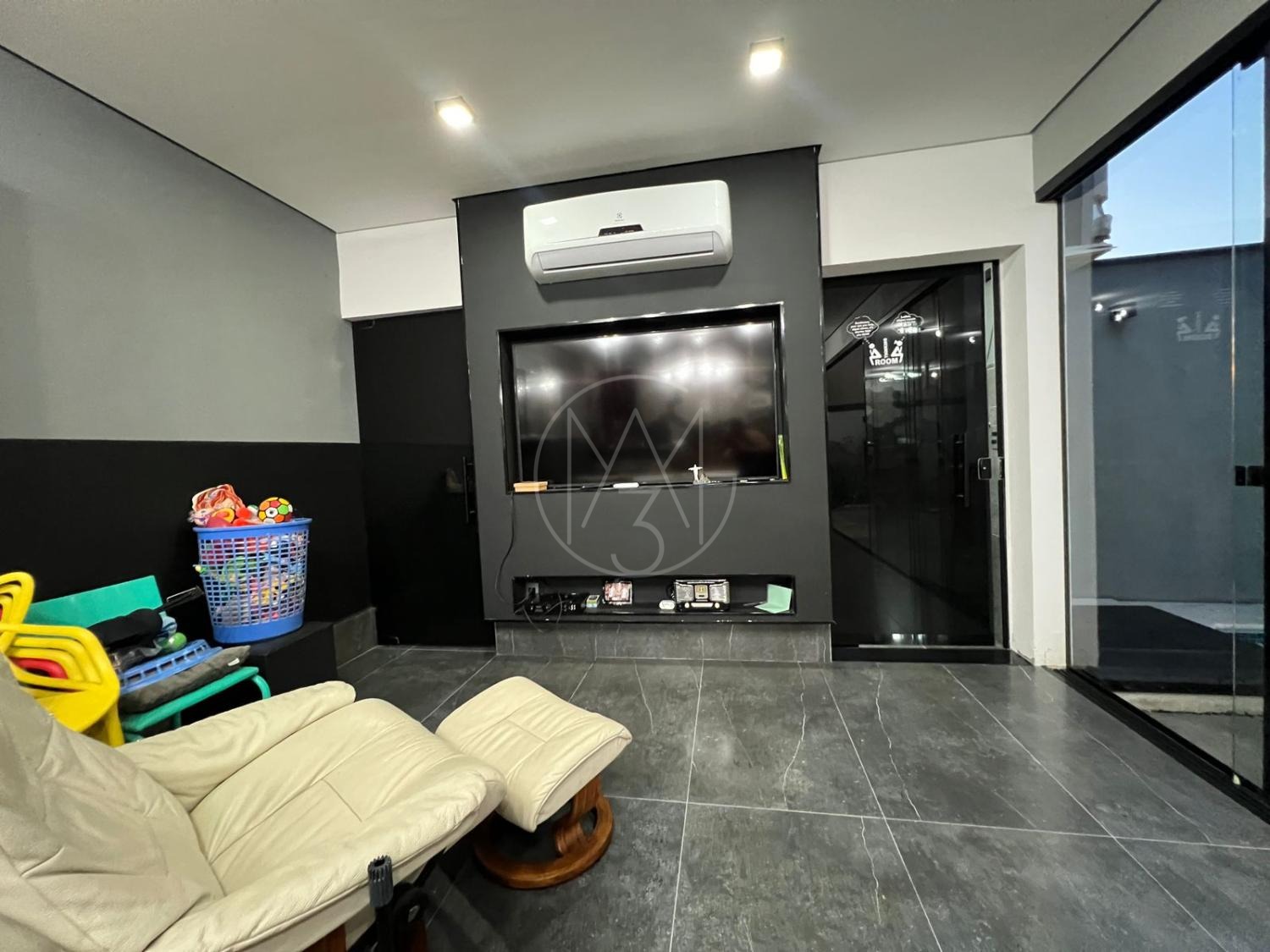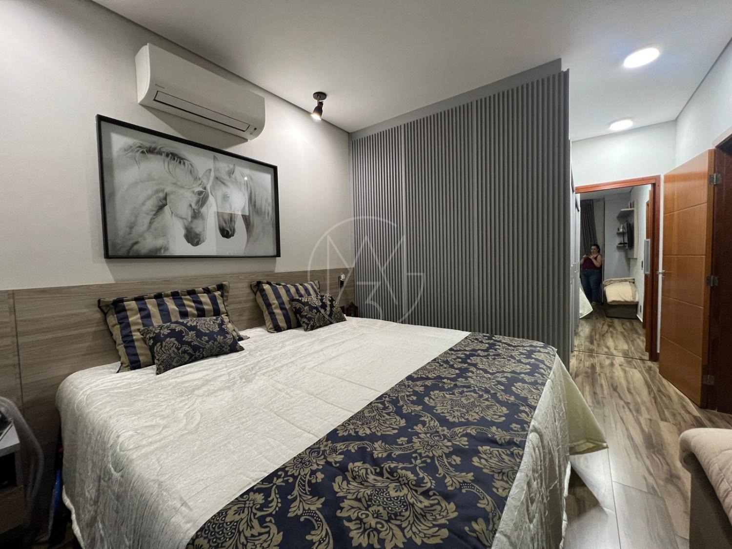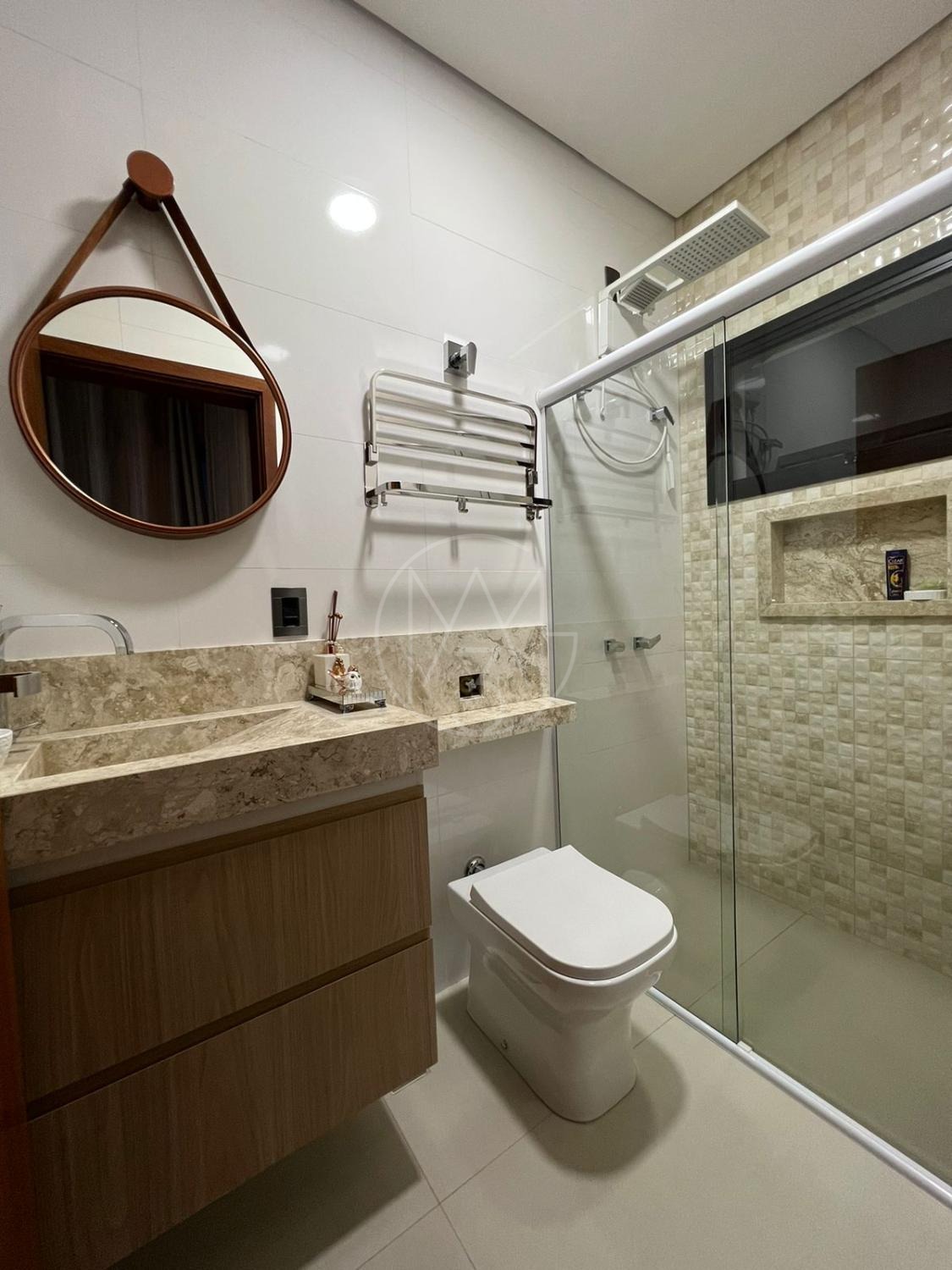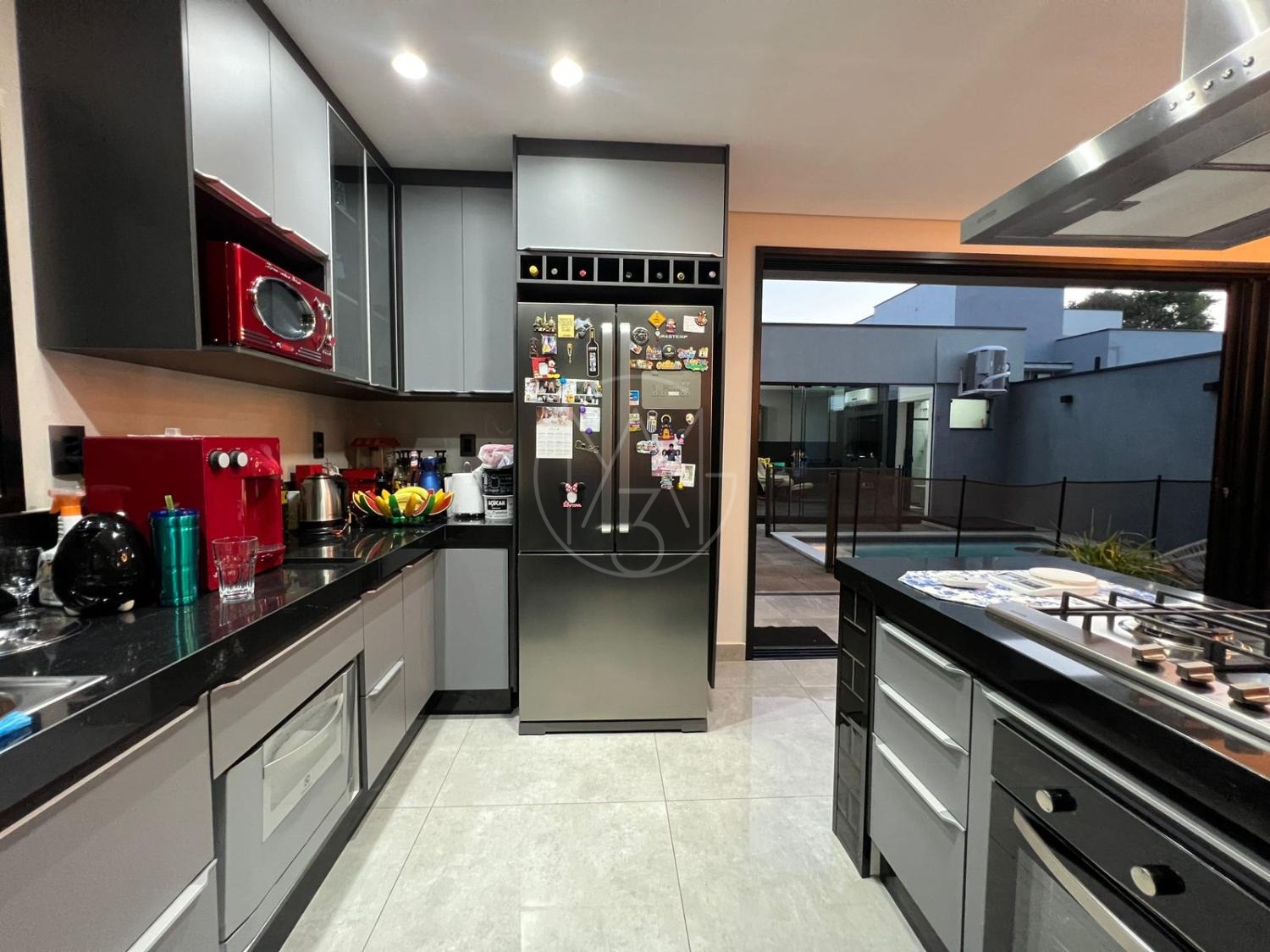 Sobrado com acabamentos diferenciado, 3 quartos, sendo 2 suites na parte superior. A suite master com closet e sacada. Na parte inferior quarto que esta sendo utilizado como sala de TV. Sala de estar e jantar com pé direito duplo, projeto de iluminação. Cozinha americana com eletrodomésticos Tramontina. Área Gourmet com piscina, equipada com churrasqueira, chopeira, cooktop, ar condicionado. Todos os ambientes da casa são climatizados. Possui Aquecimento Solar e Fotovoltaica. Casa com decoração de muito bom gosto.