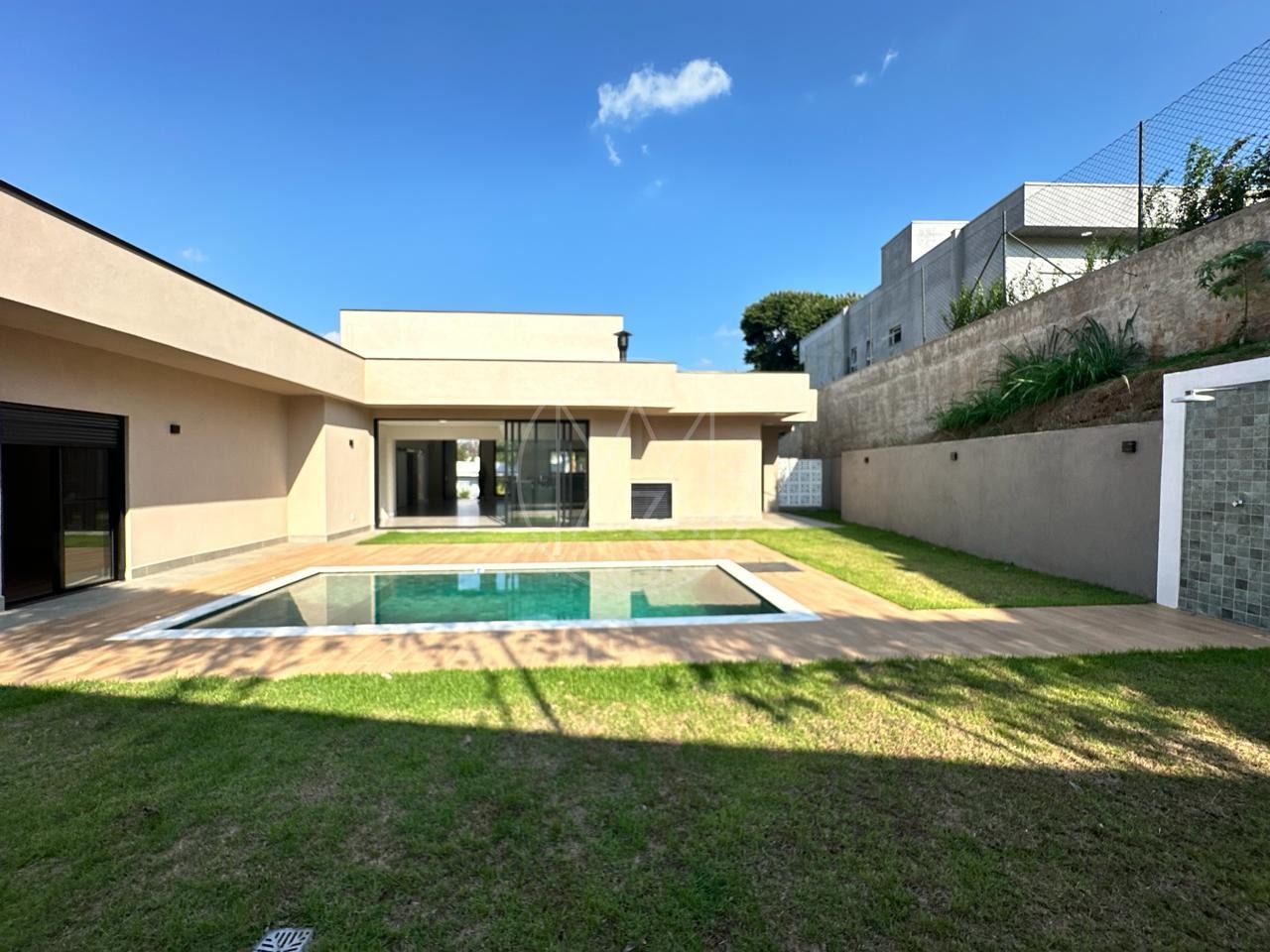 Maravilhosa casa térrea em um terreno de 813m², com 263m² de área construída. A casa possui 3 suítes, sendo a master com closet, sala para 2 ambientes com pé direito alto, lareira, home theater, escritório, cozinha integrada, área de lazer com espaço gourmet e piscina.