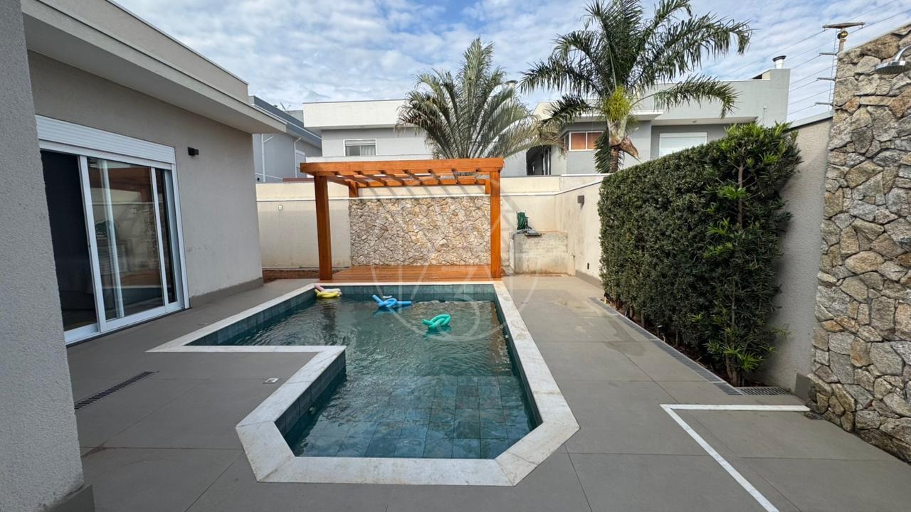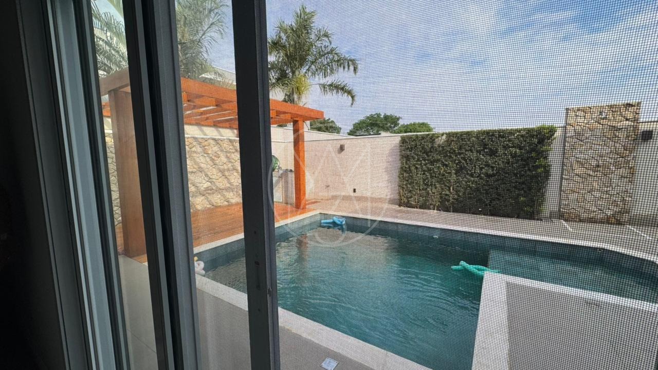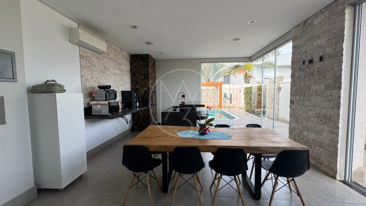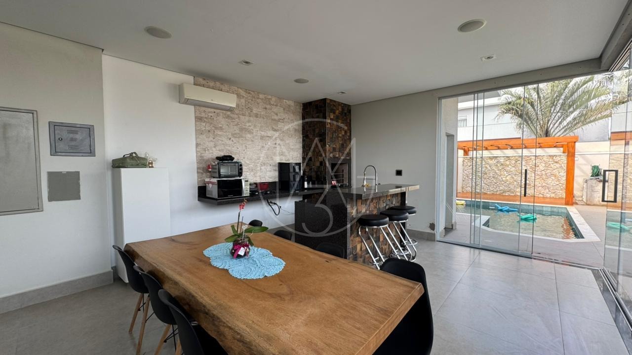 Casa térrea com 3 suítes, escritório, sala para dois ambientes com pé direito duplo, cozinha americana e área gourmet com churrasqueira e piscina, terreno maior com 385m e 224m de construção. Diferenciais do imóvel energia Fotovoltaica, persiana elétricas, totalmente climatizada, Gourmet com blindex.