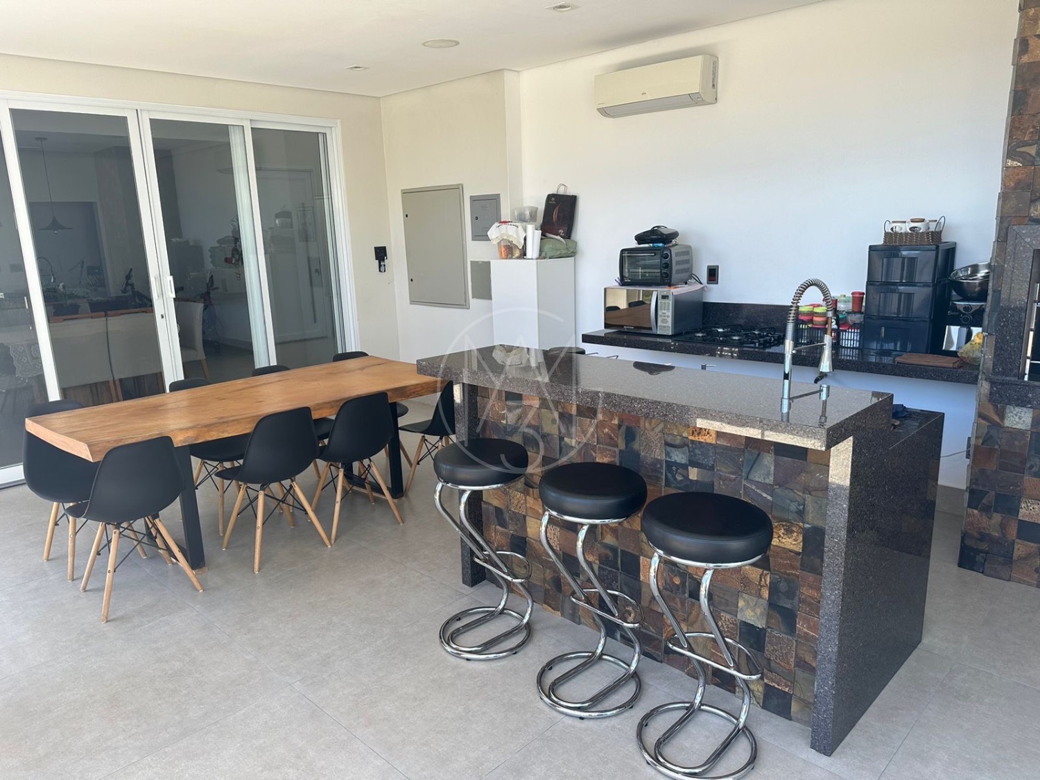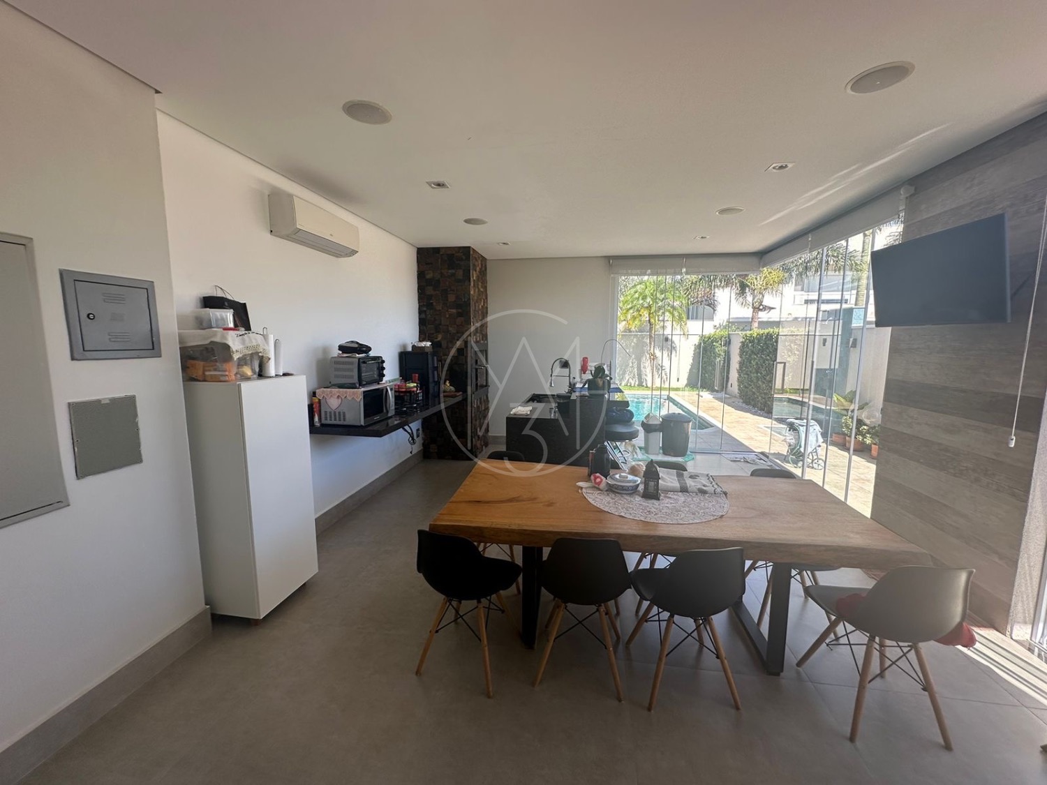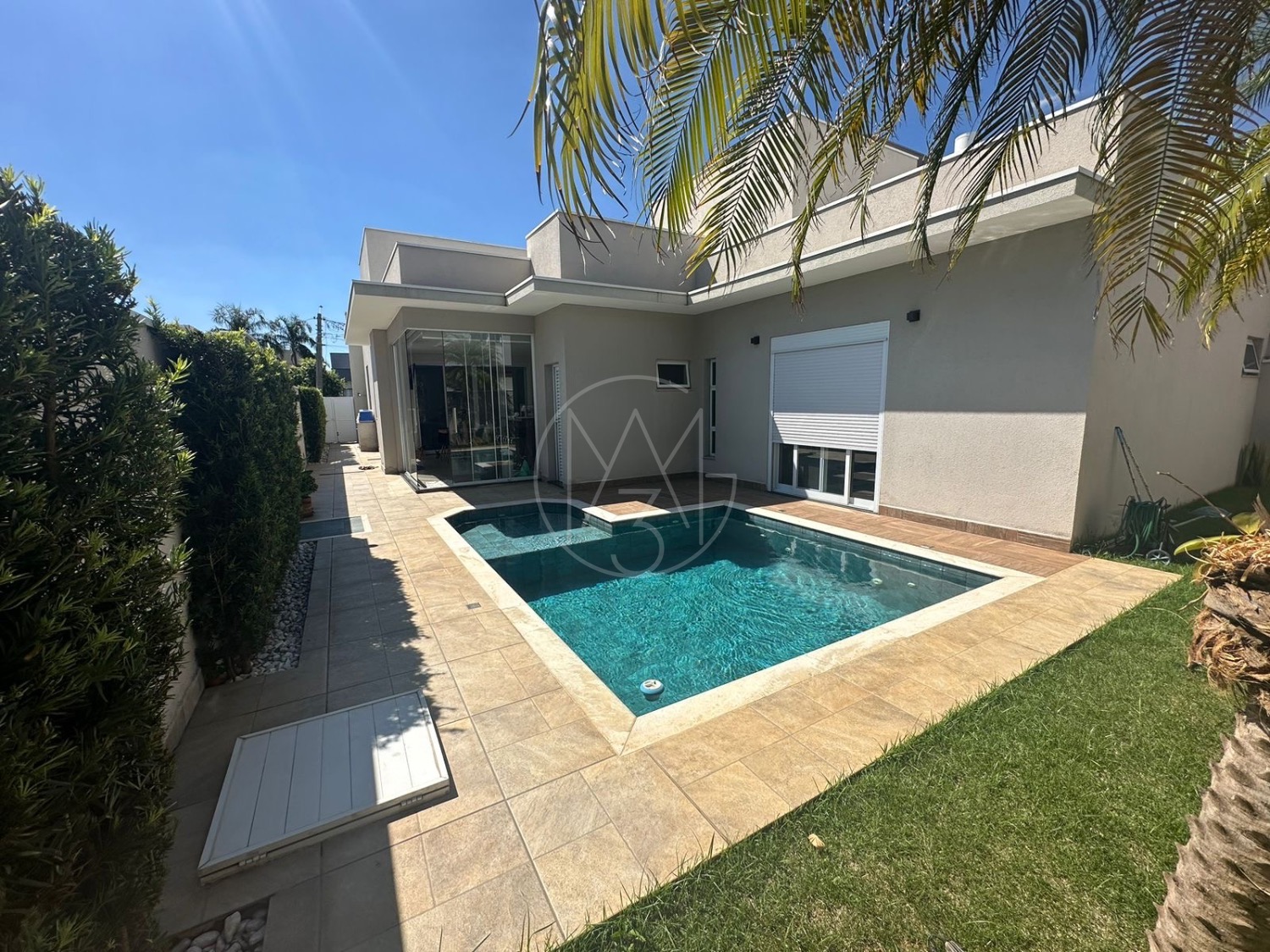 Casa térrea com 3 suítes, escritório, sala para dois ambientes com pé direito duplo, cozinha americana e área gourmet com churrasqueira e piscina, terreno maior com 385m e 224m de construção. Diferenciais do imóvel energia Fotovoltaica, persiana elétricas, totalmente climatizada, Gourmet com blindex.