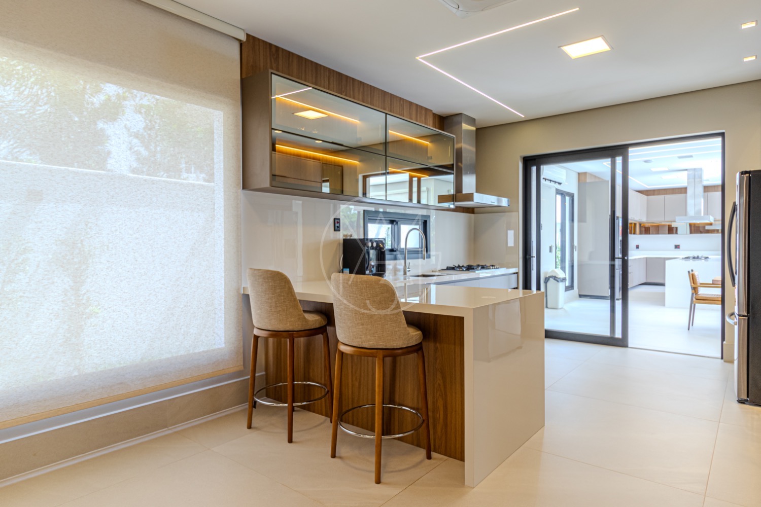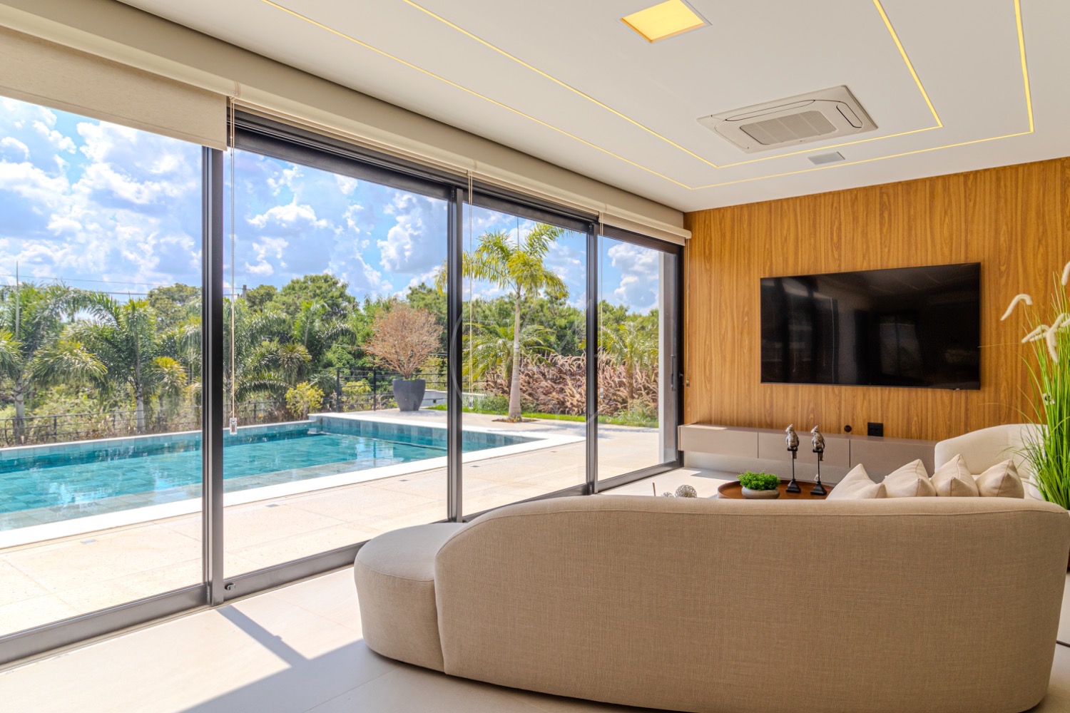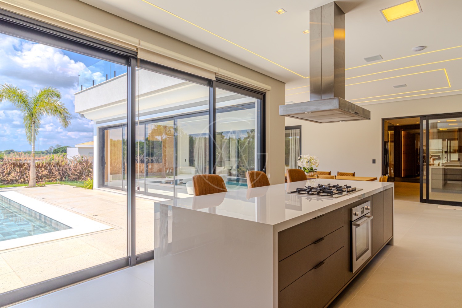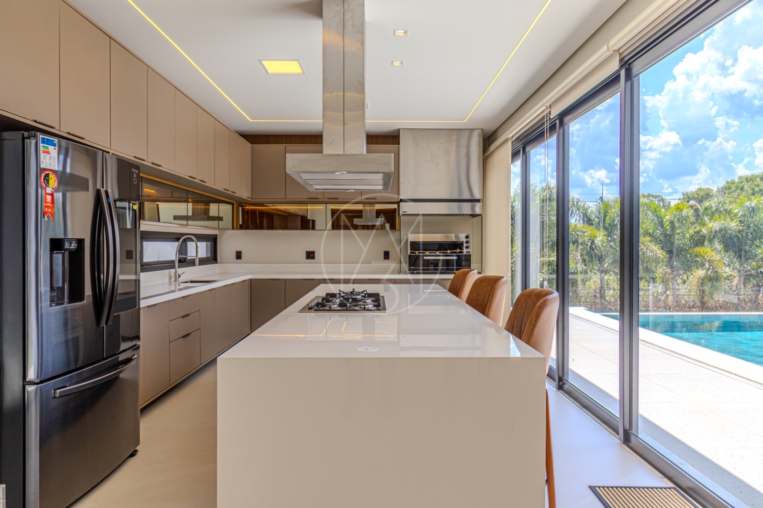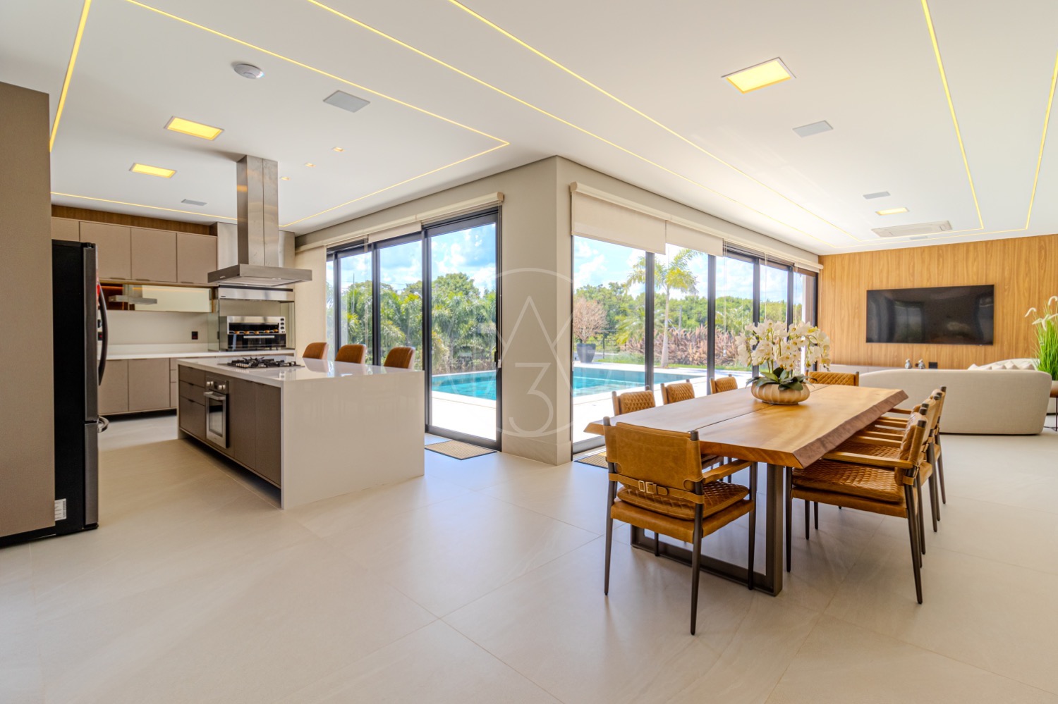 A cozinha americana integra-se de forma prática à despensa, lavanderia e área de serviço, garantindo organização e fluidez no dia a dia. A área externa é um verdadeiro convite ao lazer, com varanda equipada com churrasqueira, ofurô e uma piscina perfeita para aproveitar momentos ao ar livre, além de um amplo quintal que amplia as possibilidades de convivência.