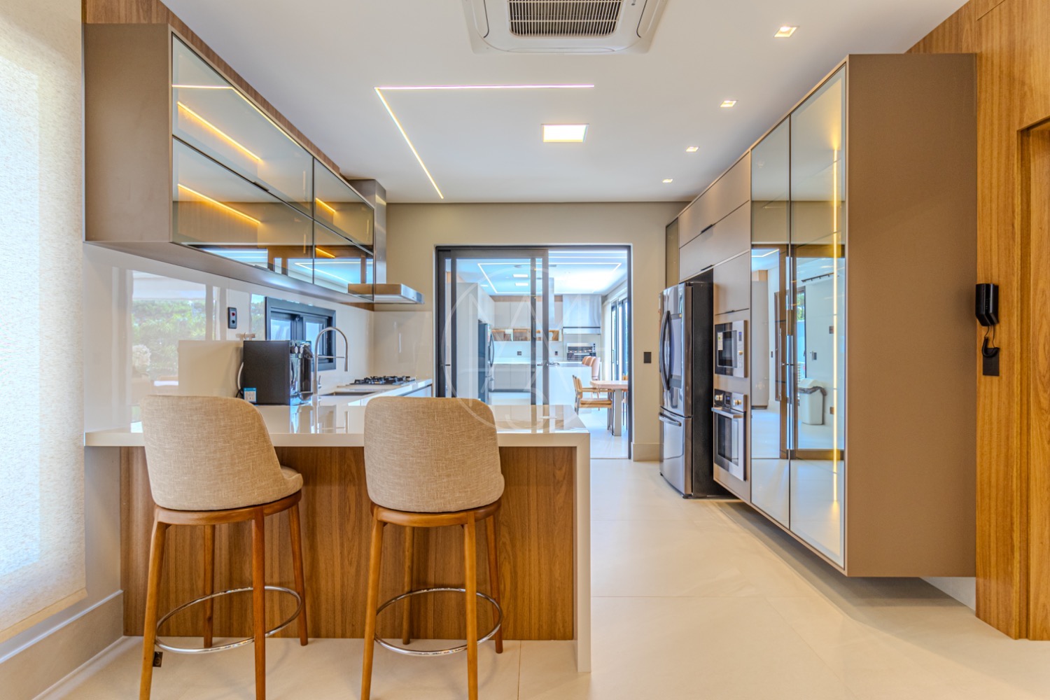 O imóvel oferece ainda aquecimento de água a gás, ar-condicionado, elevador e um espaço destinado a home theater ou cinema, elevando o nível de conforto e funcionalidade. Os acabamentos combinam pisos em porcelanato e vinílico, armários planejados em todos os ambientes e a casa é vendida totalmente mobiliada, conforme apresentada nas fotos.