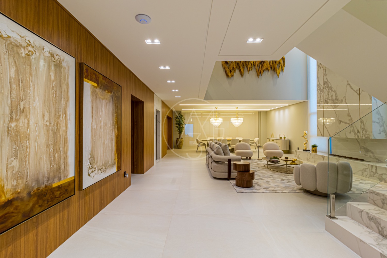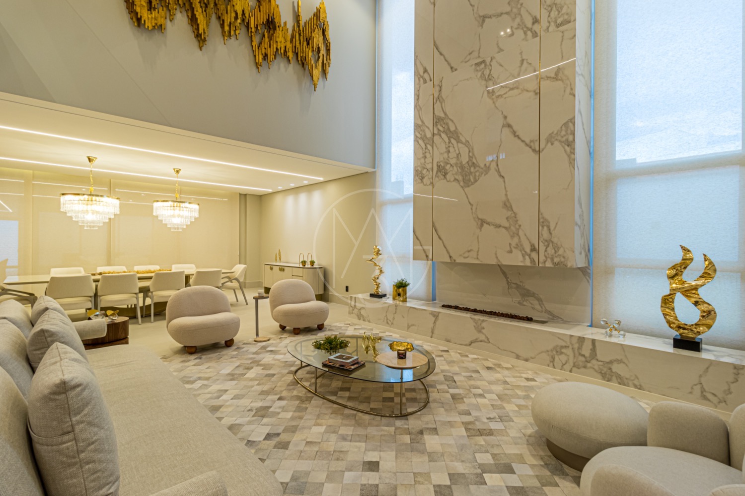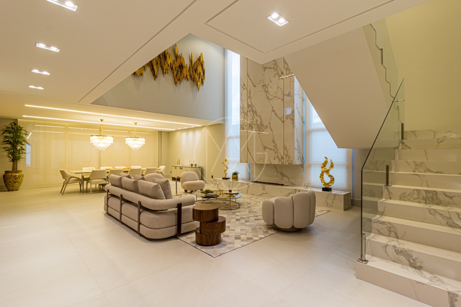 Living espaçoso para até 03 ambientes, cozinha americana moderna, 04 suítes elegantes com closet, suíte master com 100m², home cinema, escritório e mais.