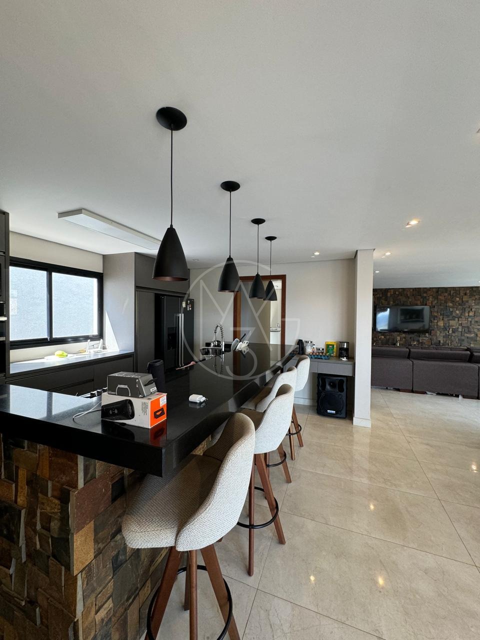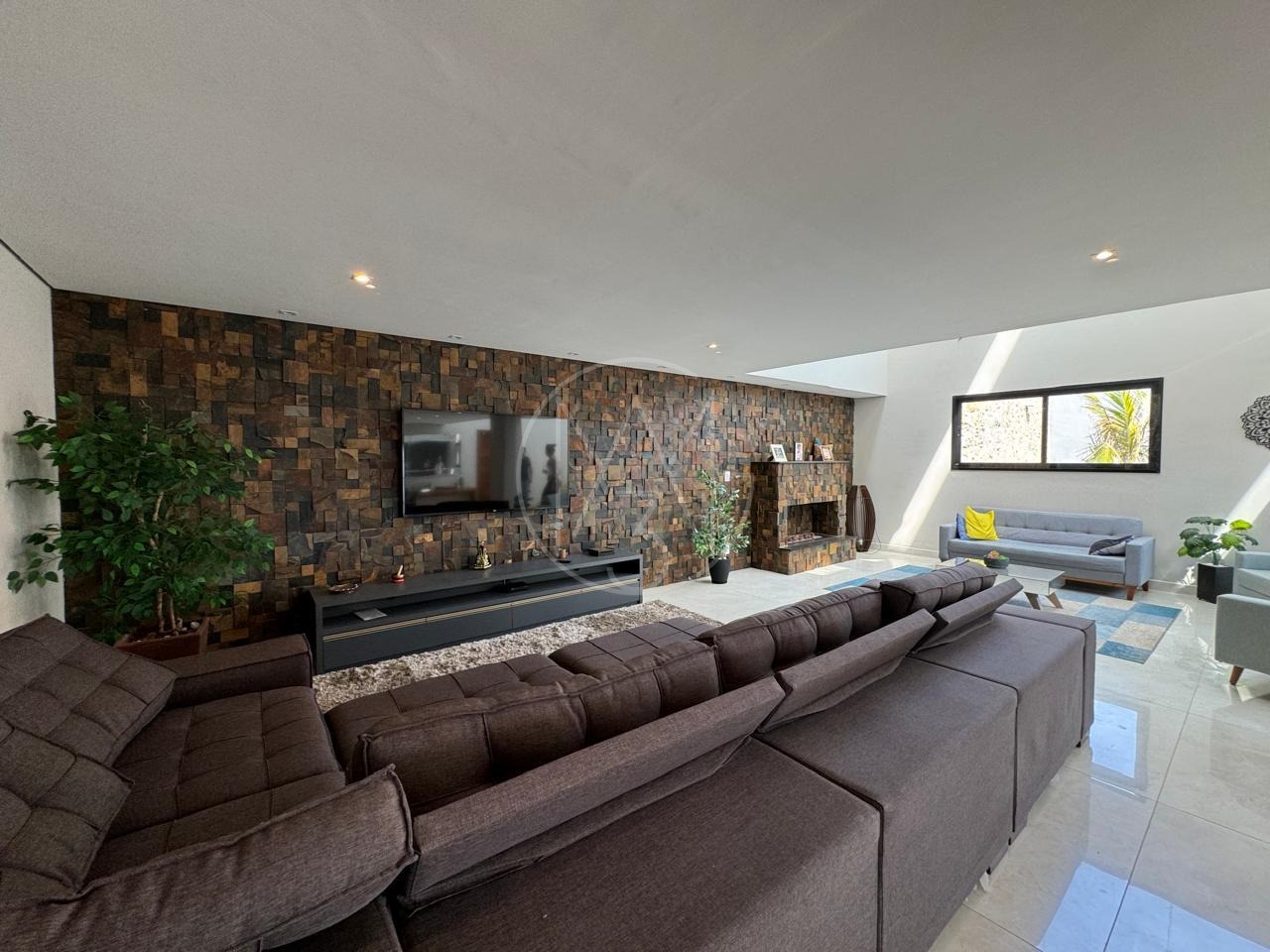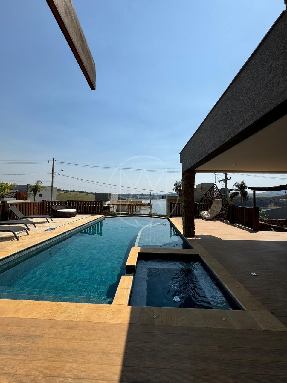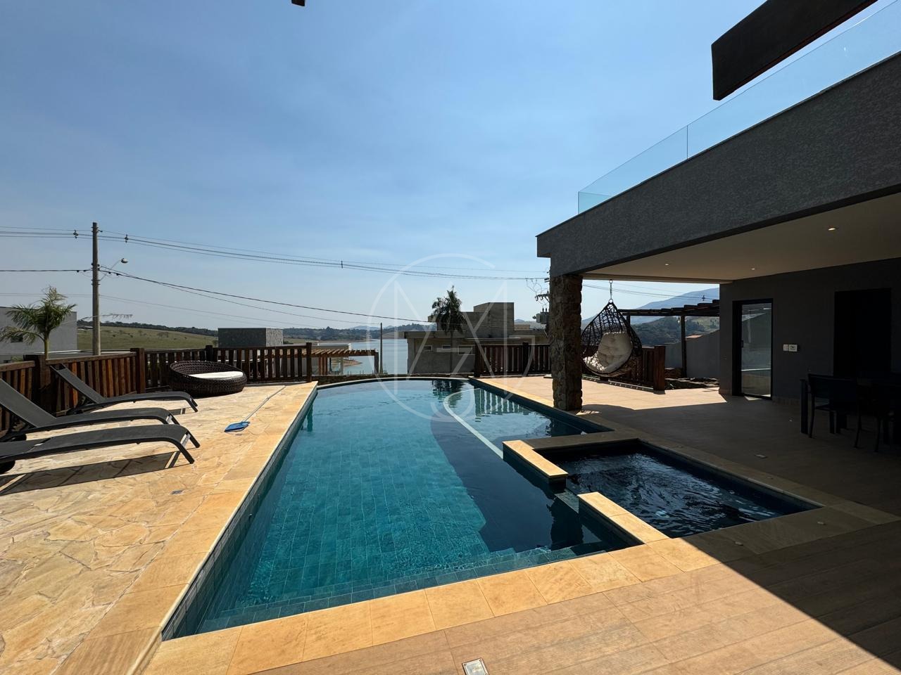 São 5 suítes, master com hidro, piscina aquecida com cascata, sauna, forno de pizza, cozinha completa, sala de estar e jantar.