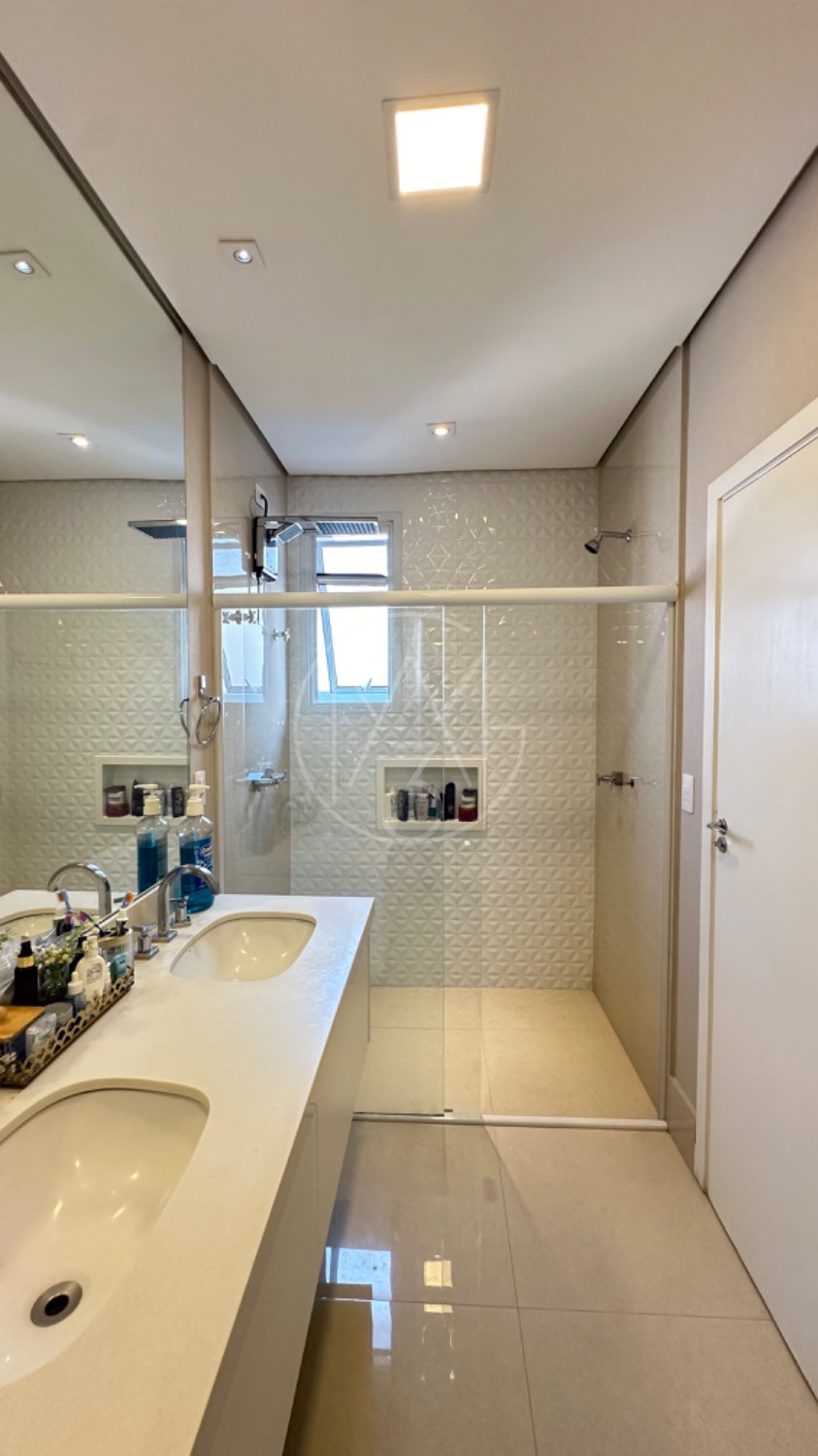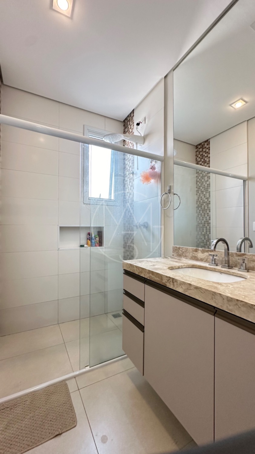 No piso superior, são 3 amplas suítes, sendo a master com um espaçoso closet e banheiro com duas pias e dois chuveiros.
